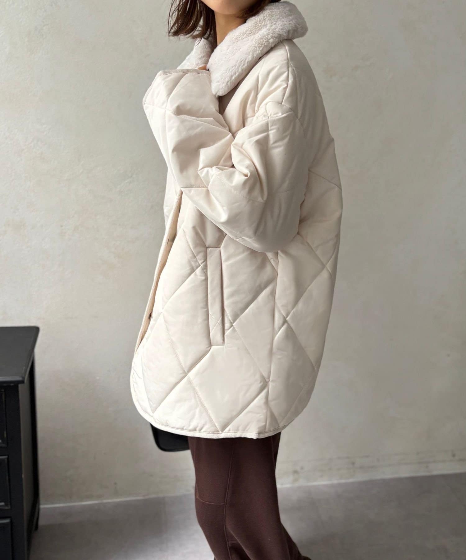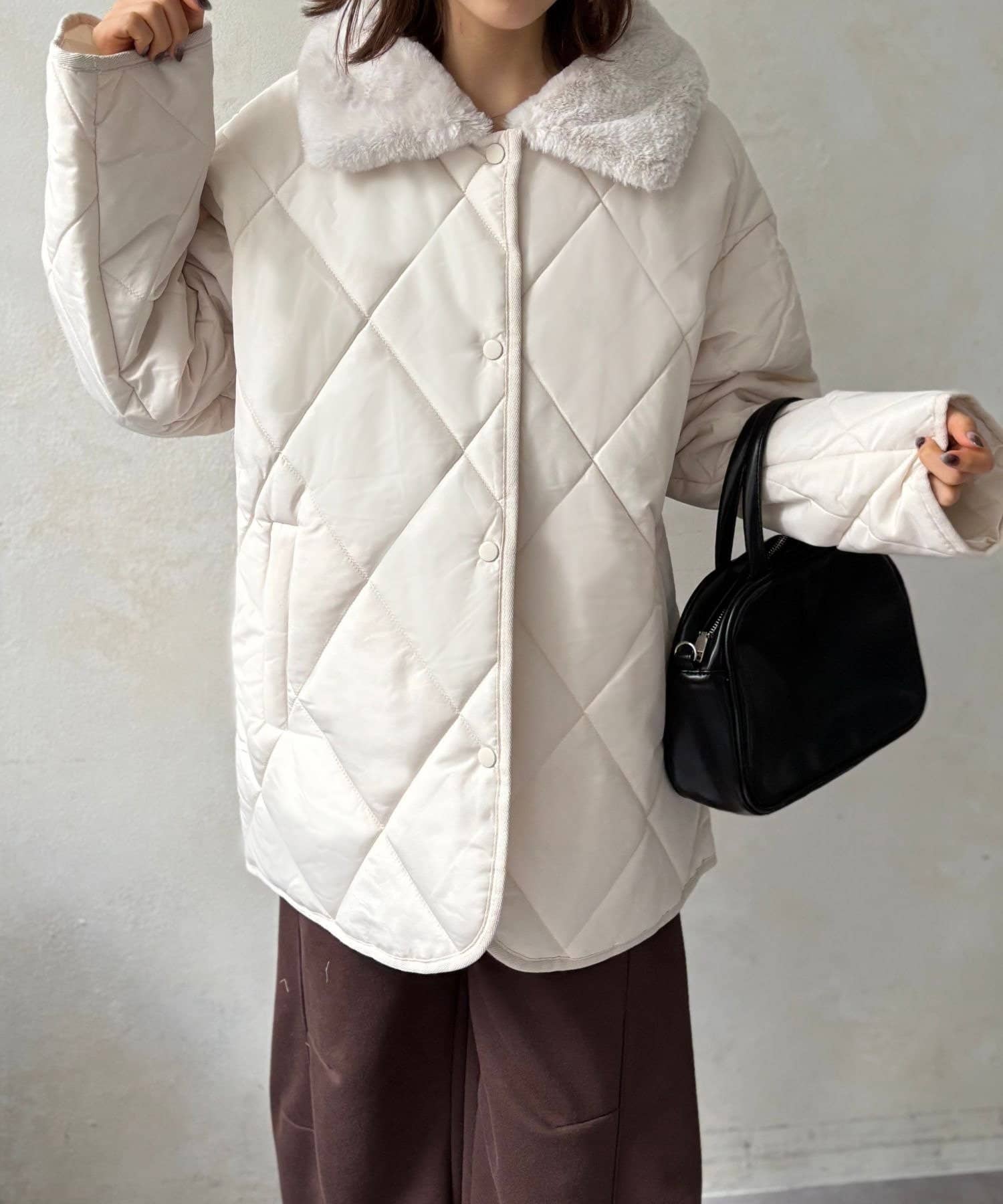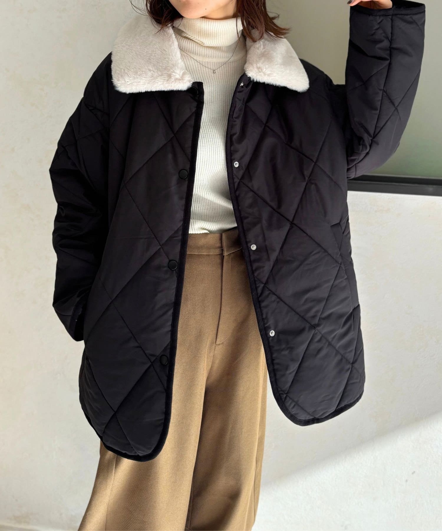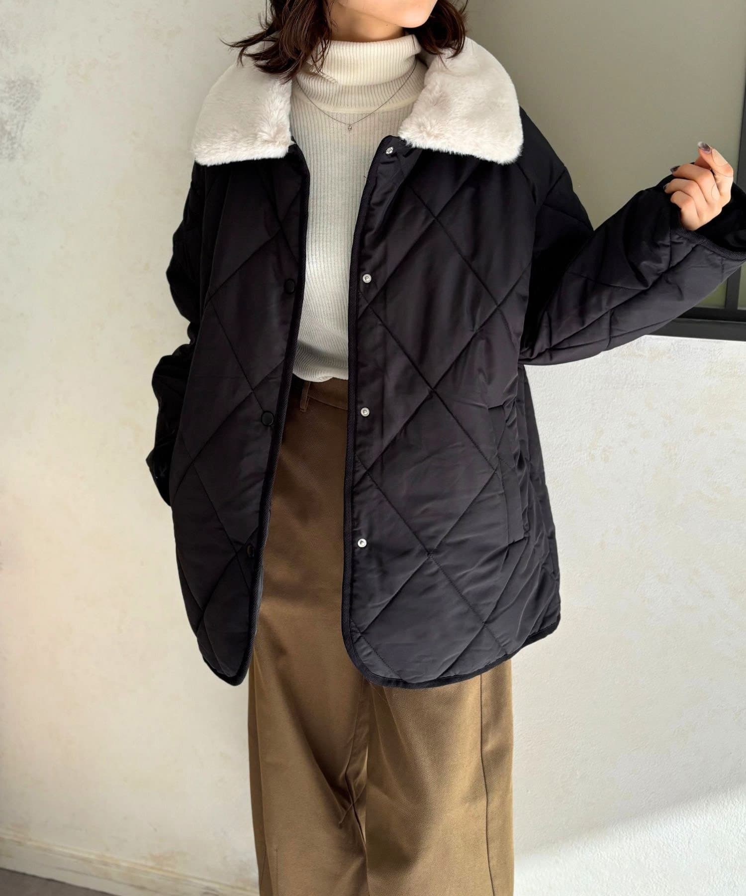 上品なキルティングと、ふわふわのファー襟が大人可愛いを叶える、エリファーキルトジャケット