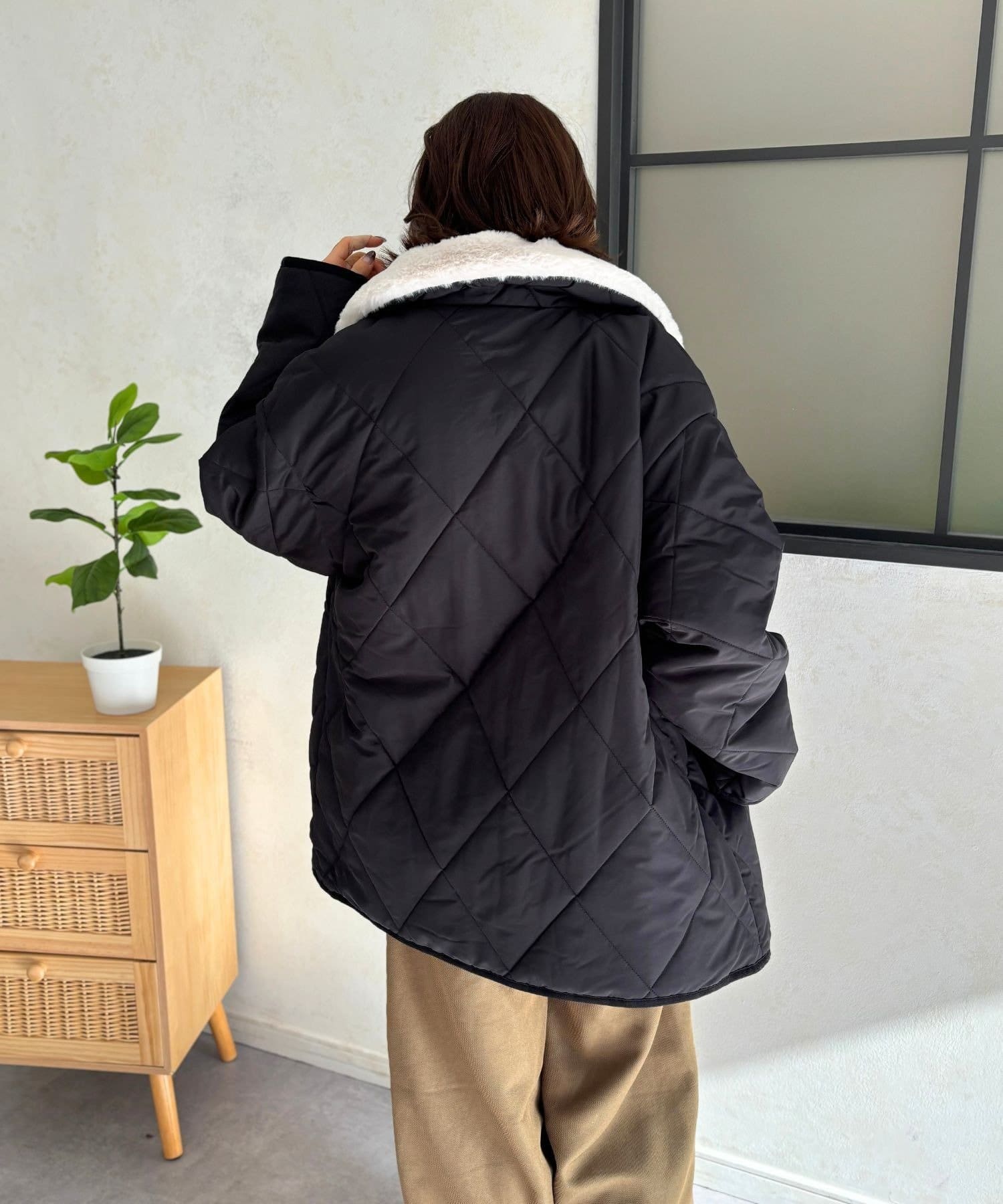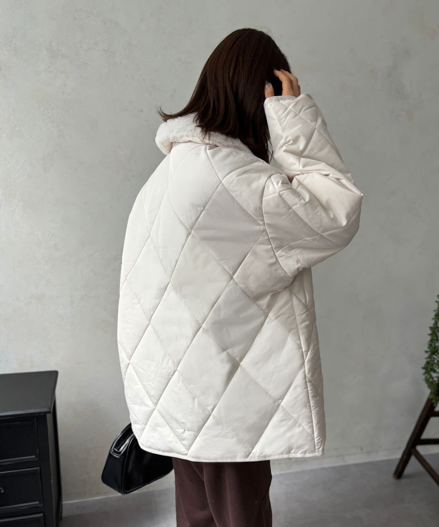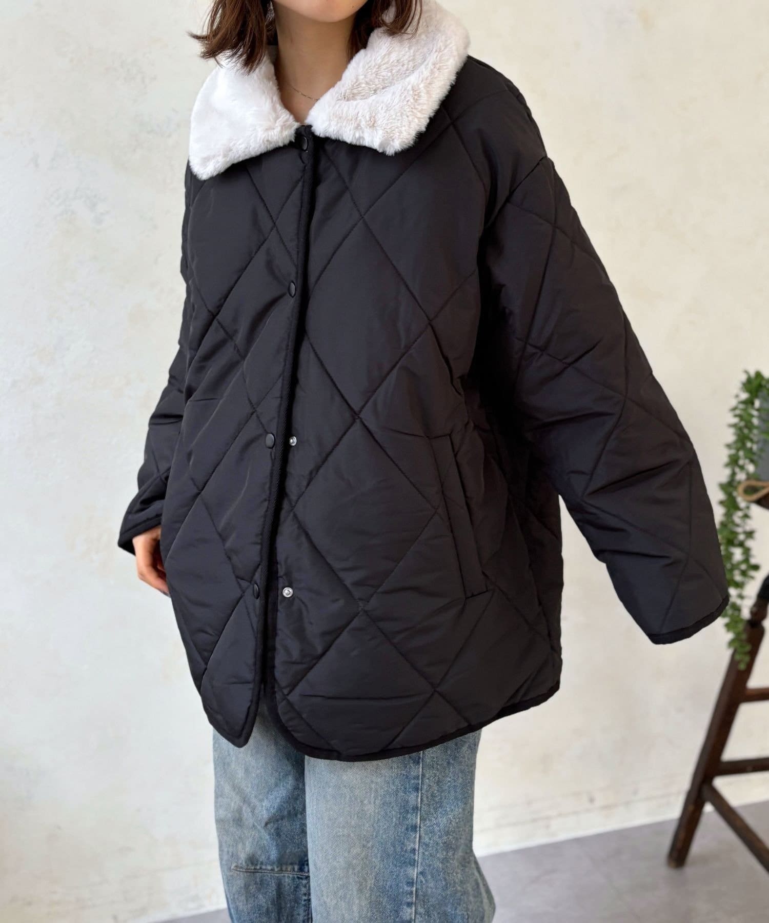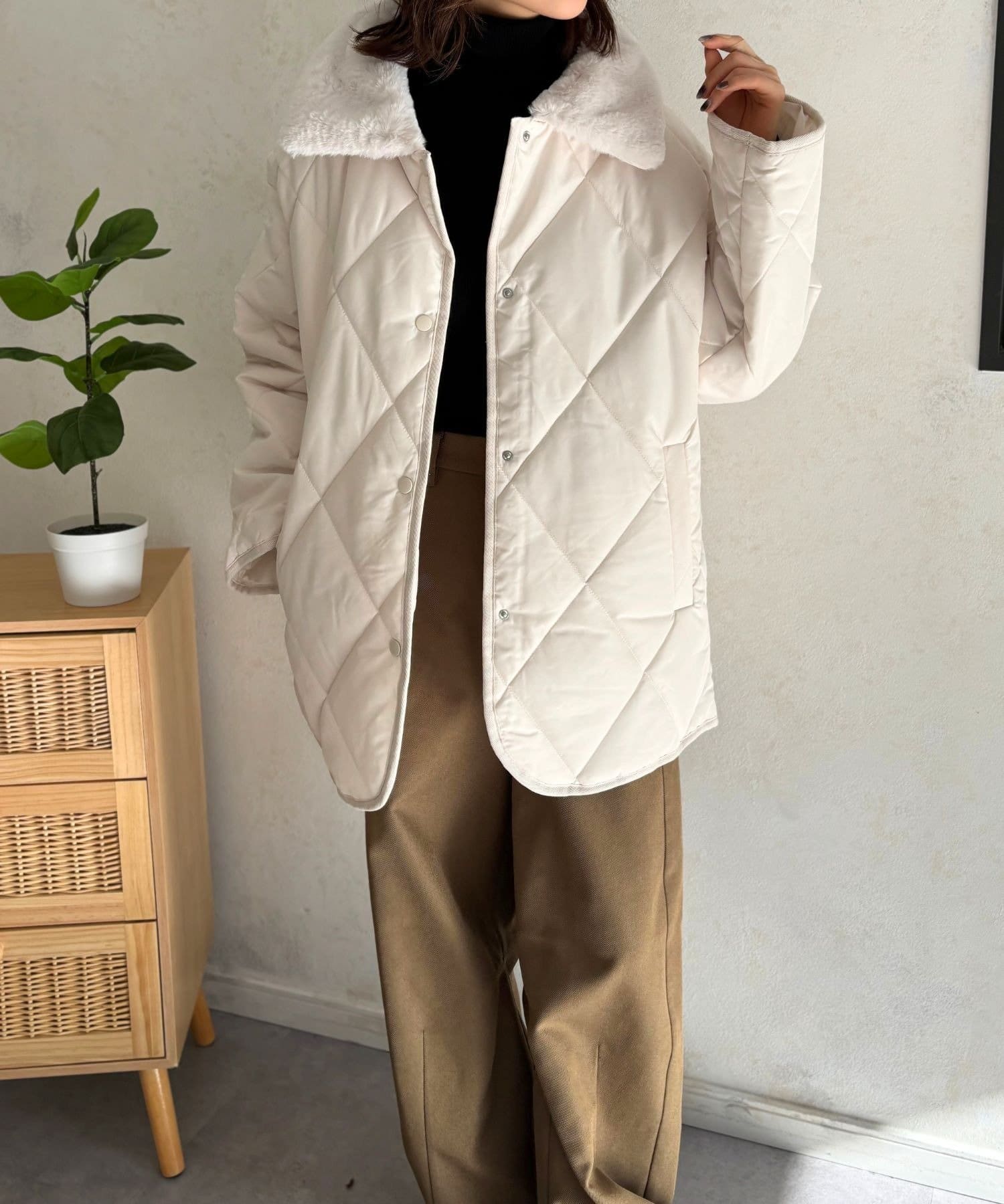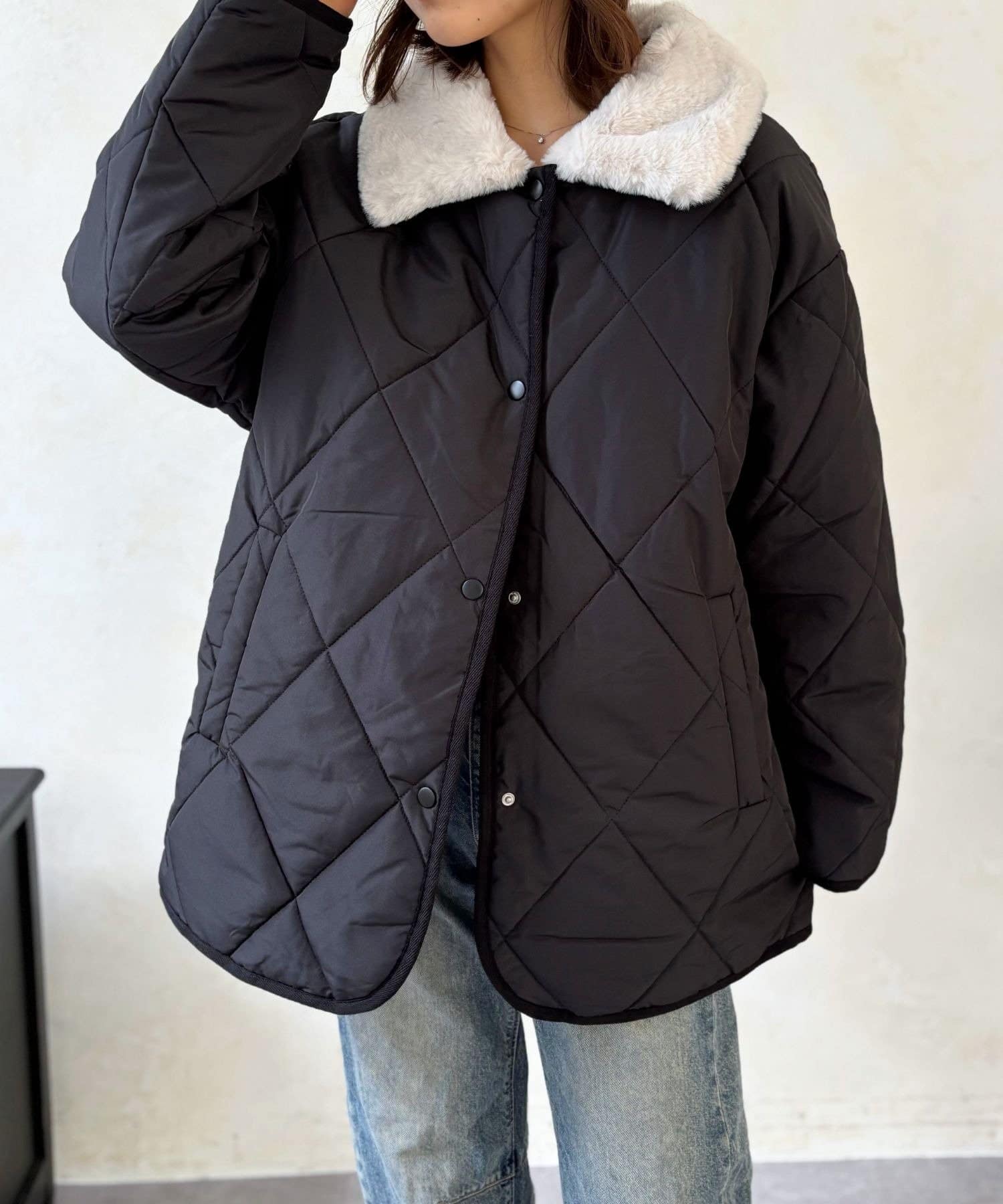 上品なキルティングと、ふわふわのファー襟が大人可愛いを叶える、エリファーキルトジャケット