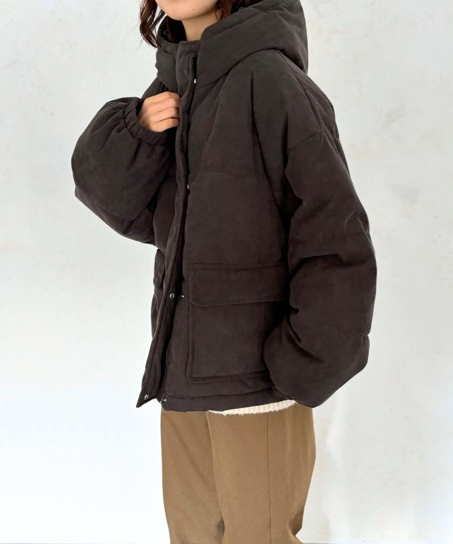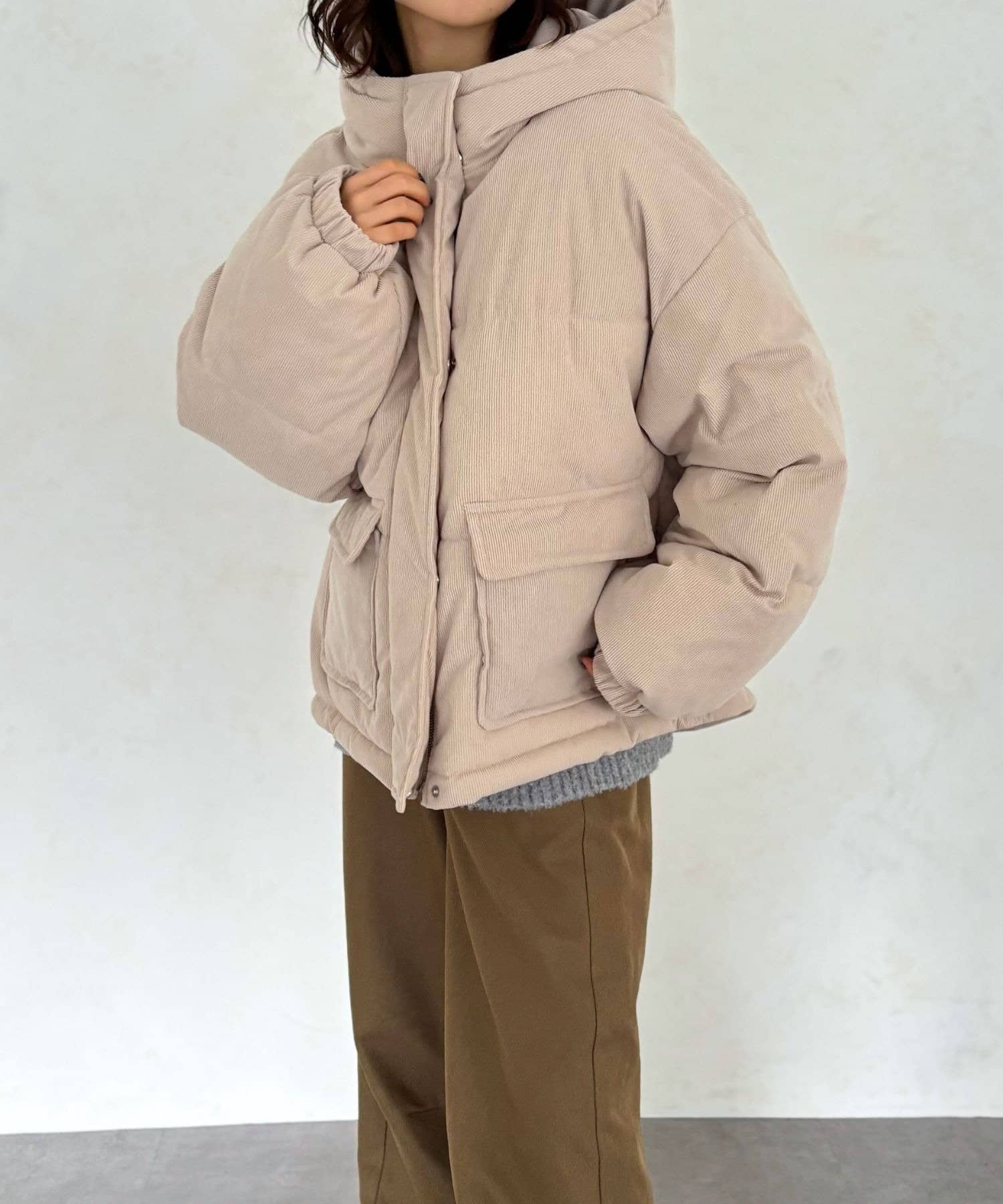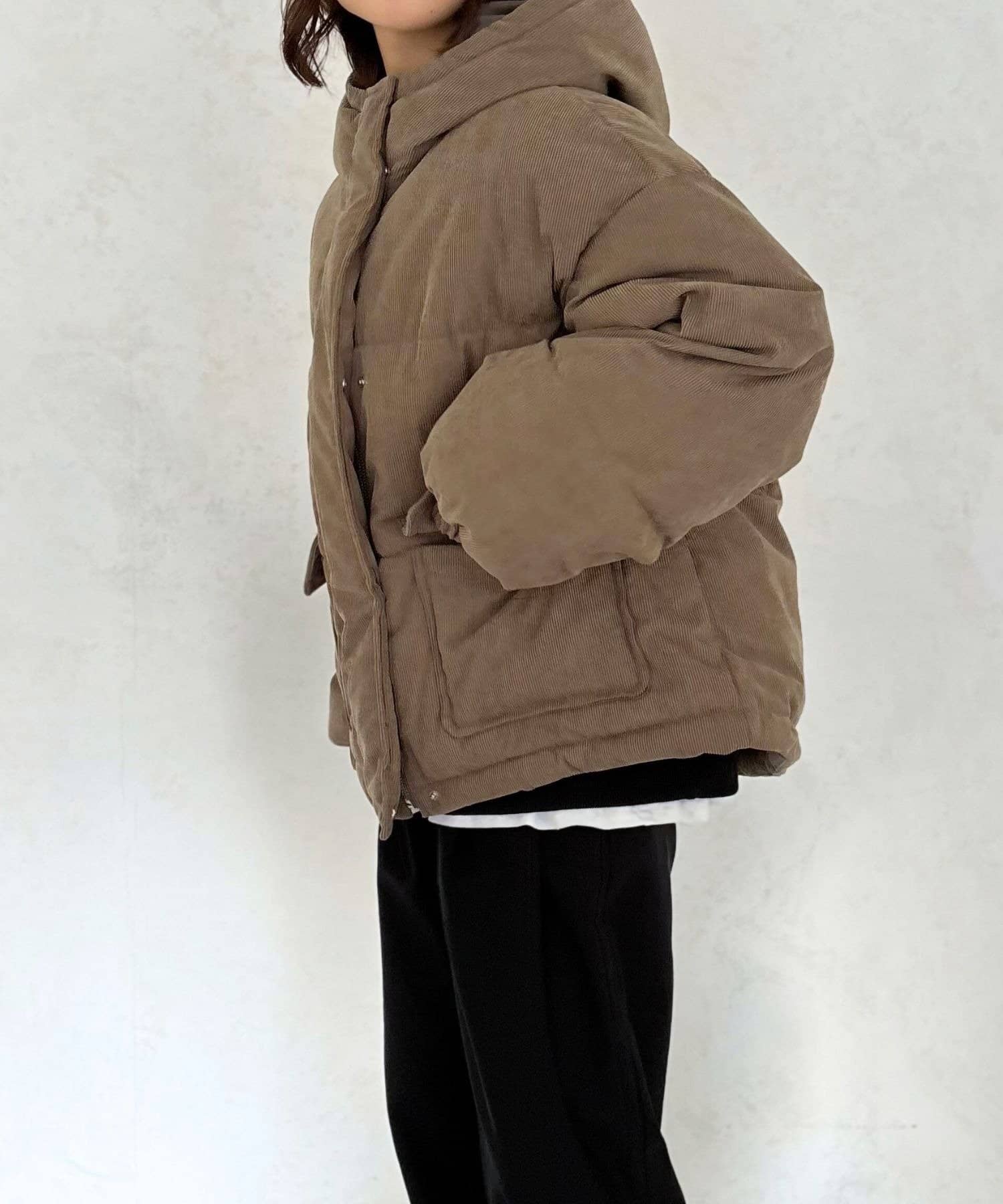 秋冬コーデに欠かせない、コーデュロイ中綿フードジャケット