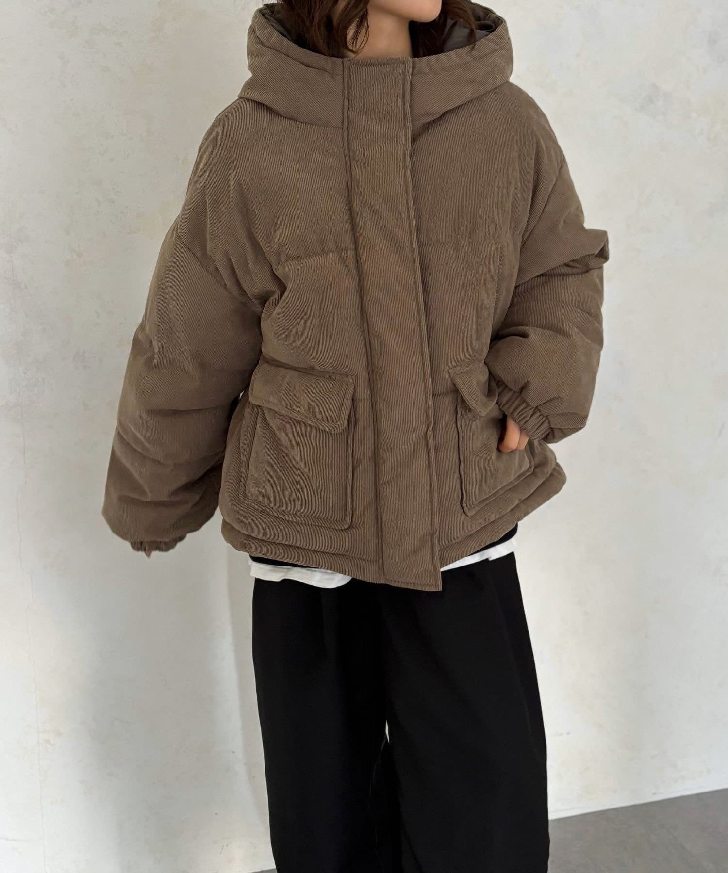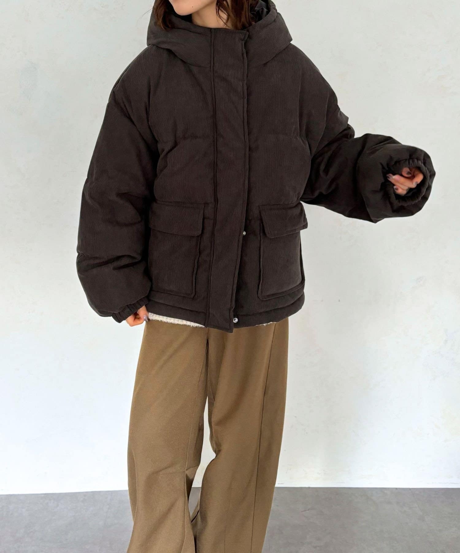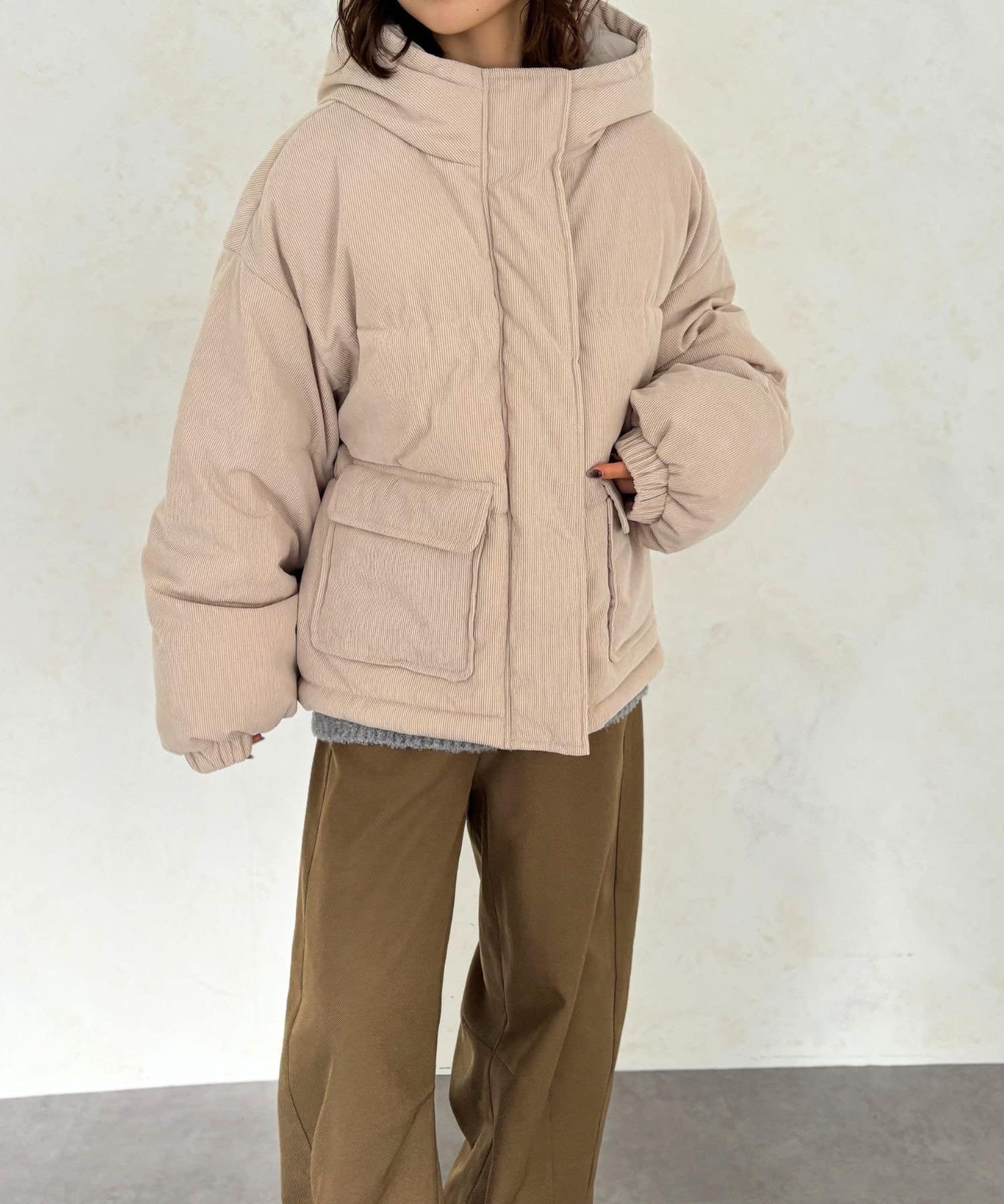秋冬コーデに欠かせない、コーデュロイ中綿フードジャケット