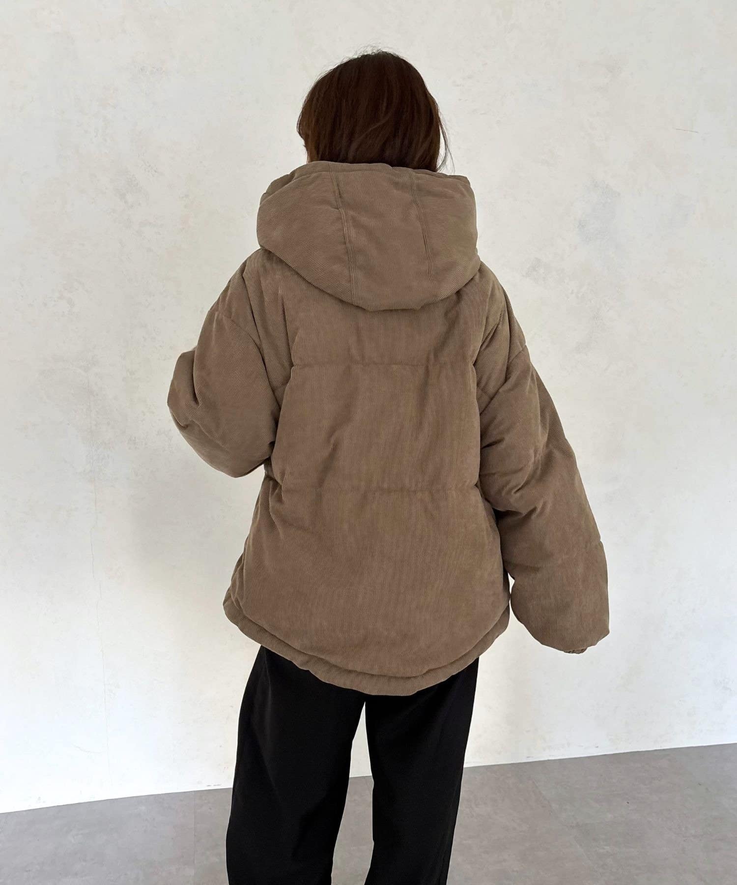 【大人可愛い】コーデュロイ中綿フードジャケット