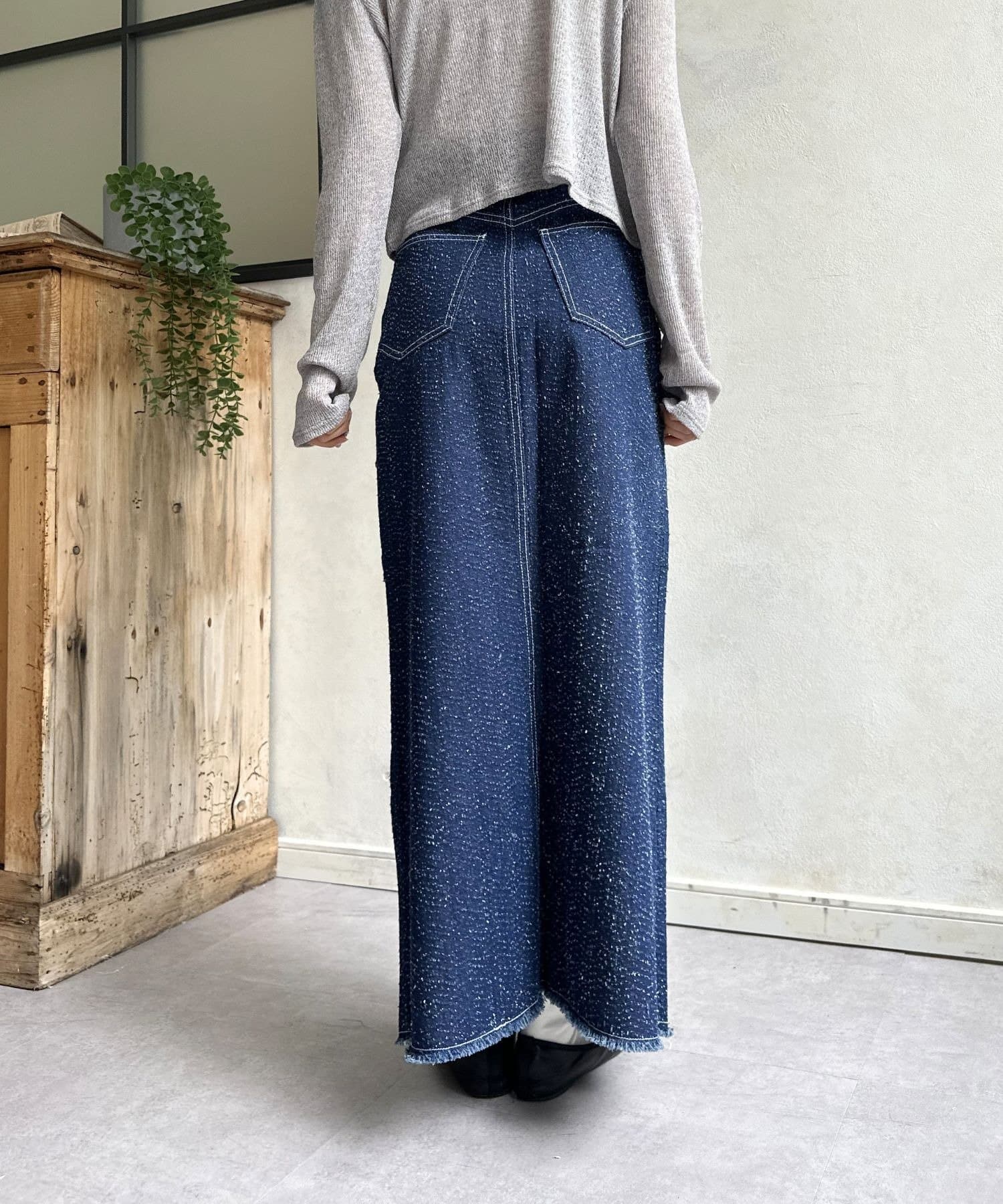 ロング丈でも重たく感じさせない、柔らかなデニム生地を使用しているため、動きやすさも履き心地も抜群。