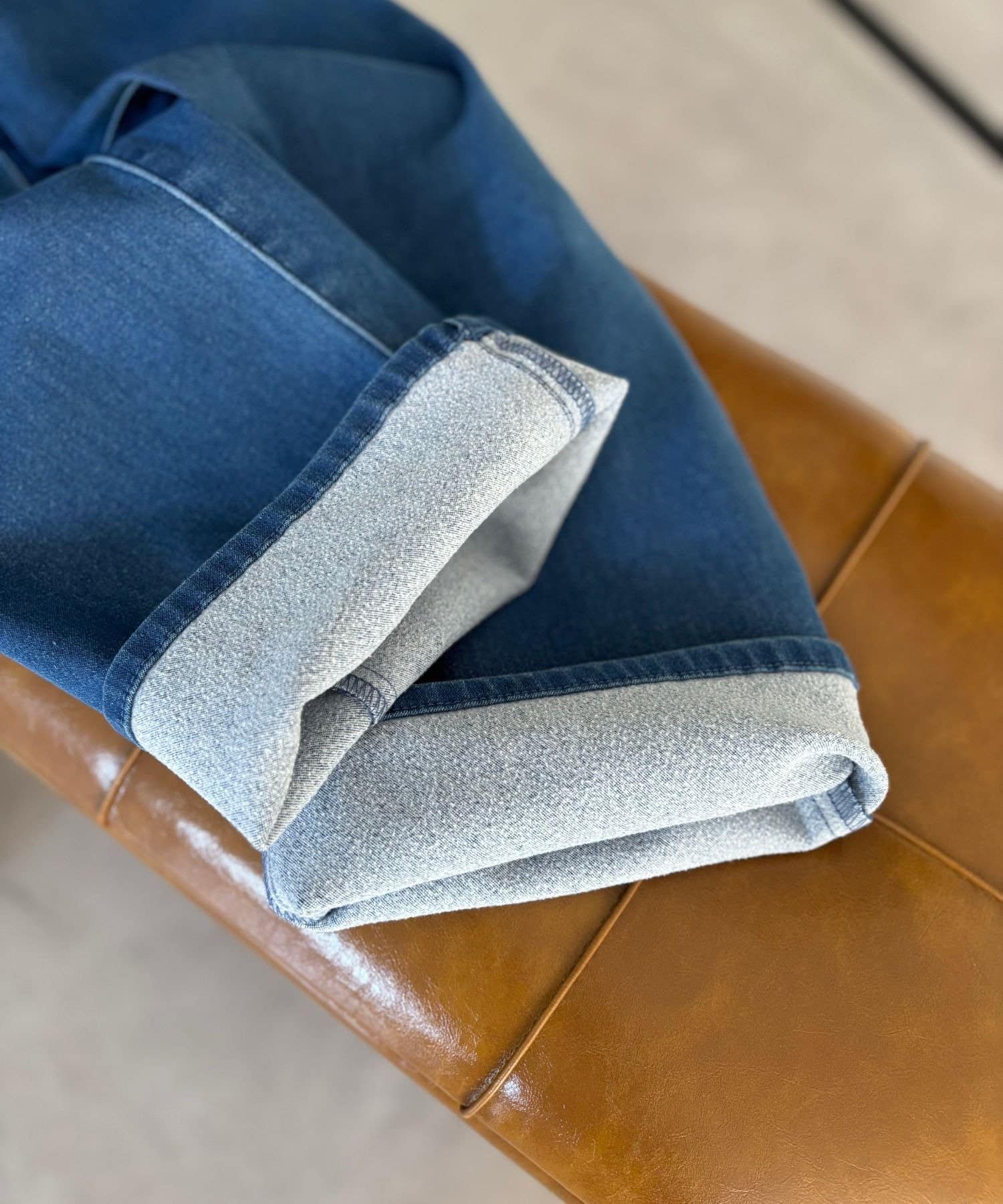 程よい色落ち感がお洒落な裏起毛ストレッチタイトストレート