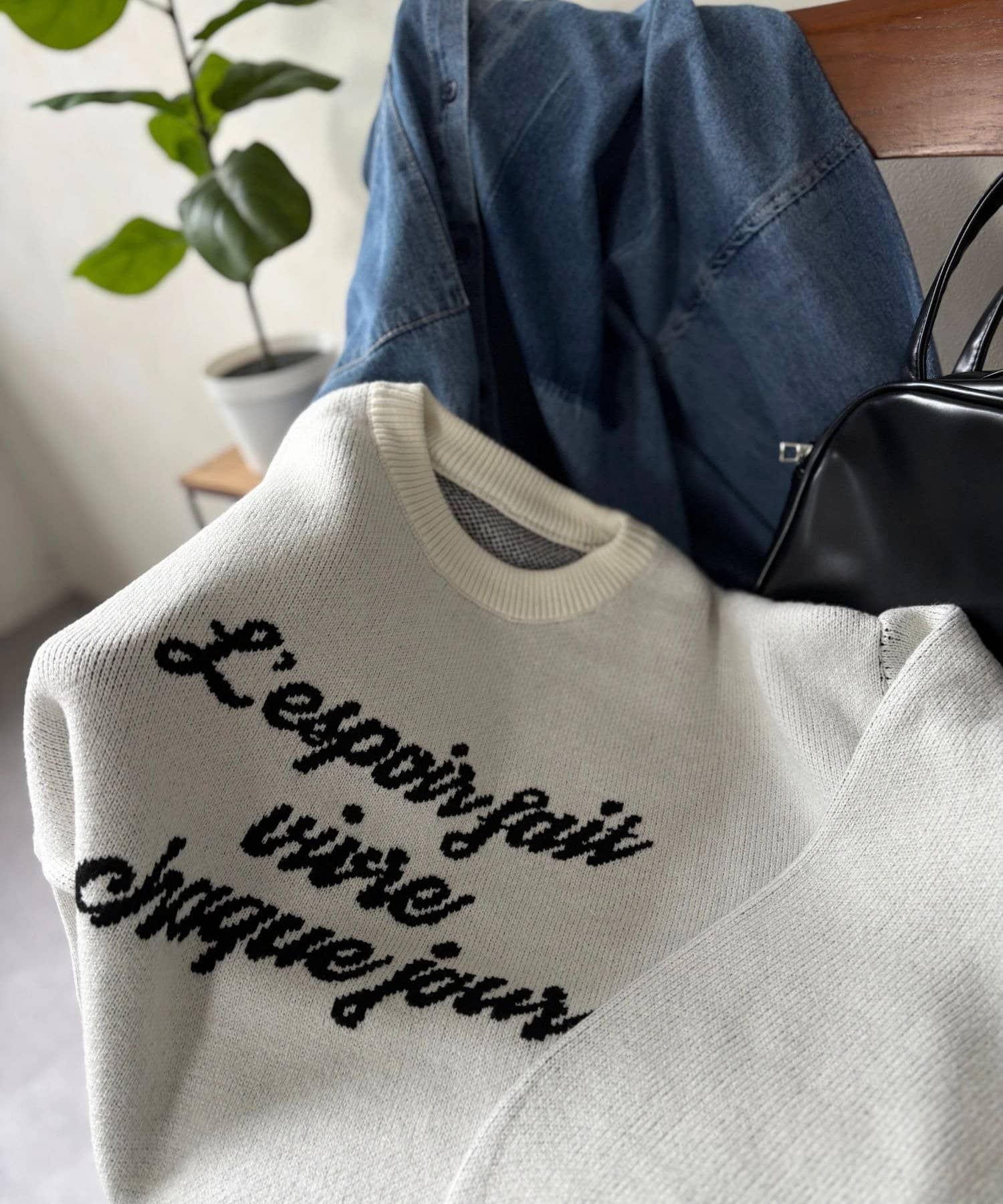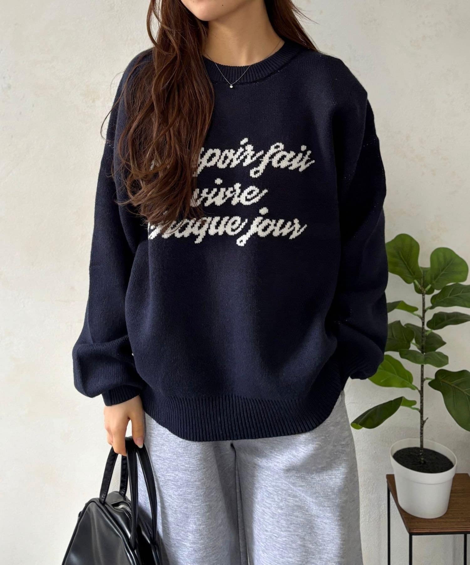 こなれ感たっぷり◎一枚で着映えるロゴジャガードニット
