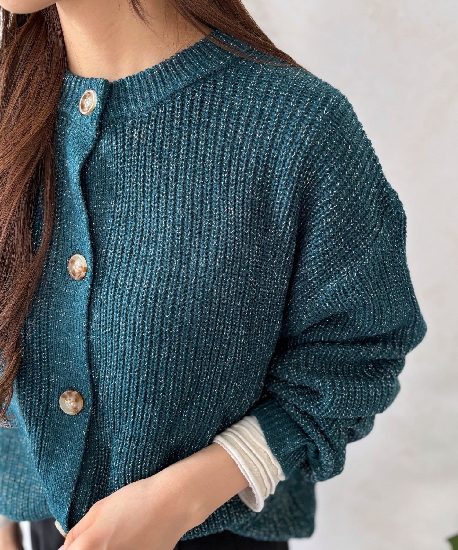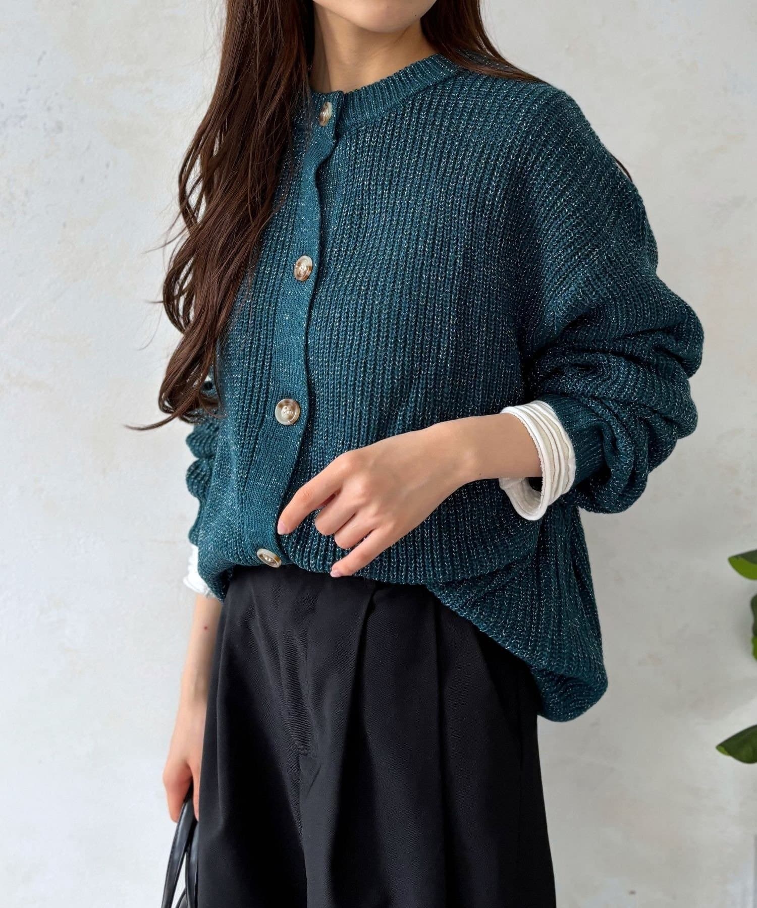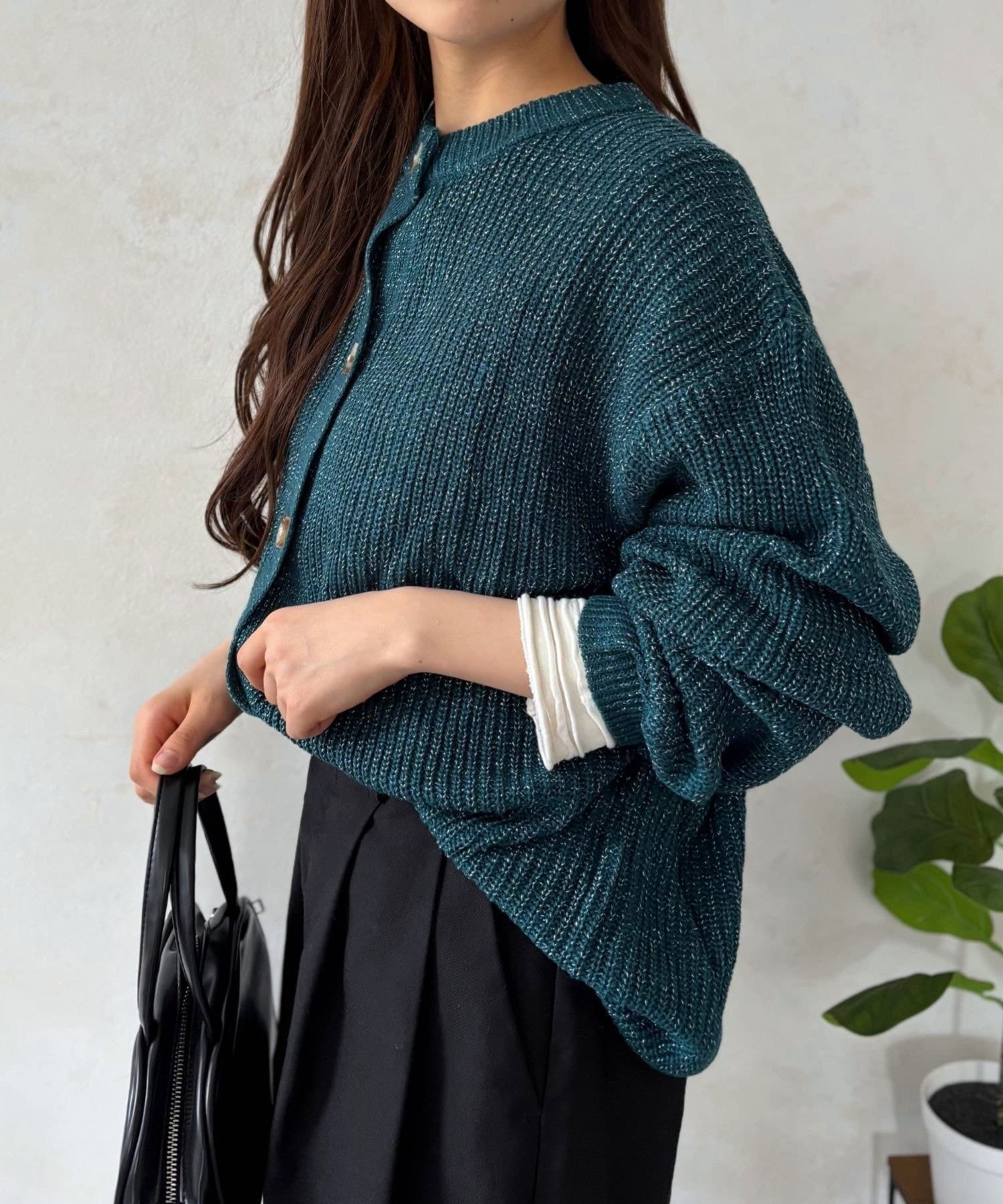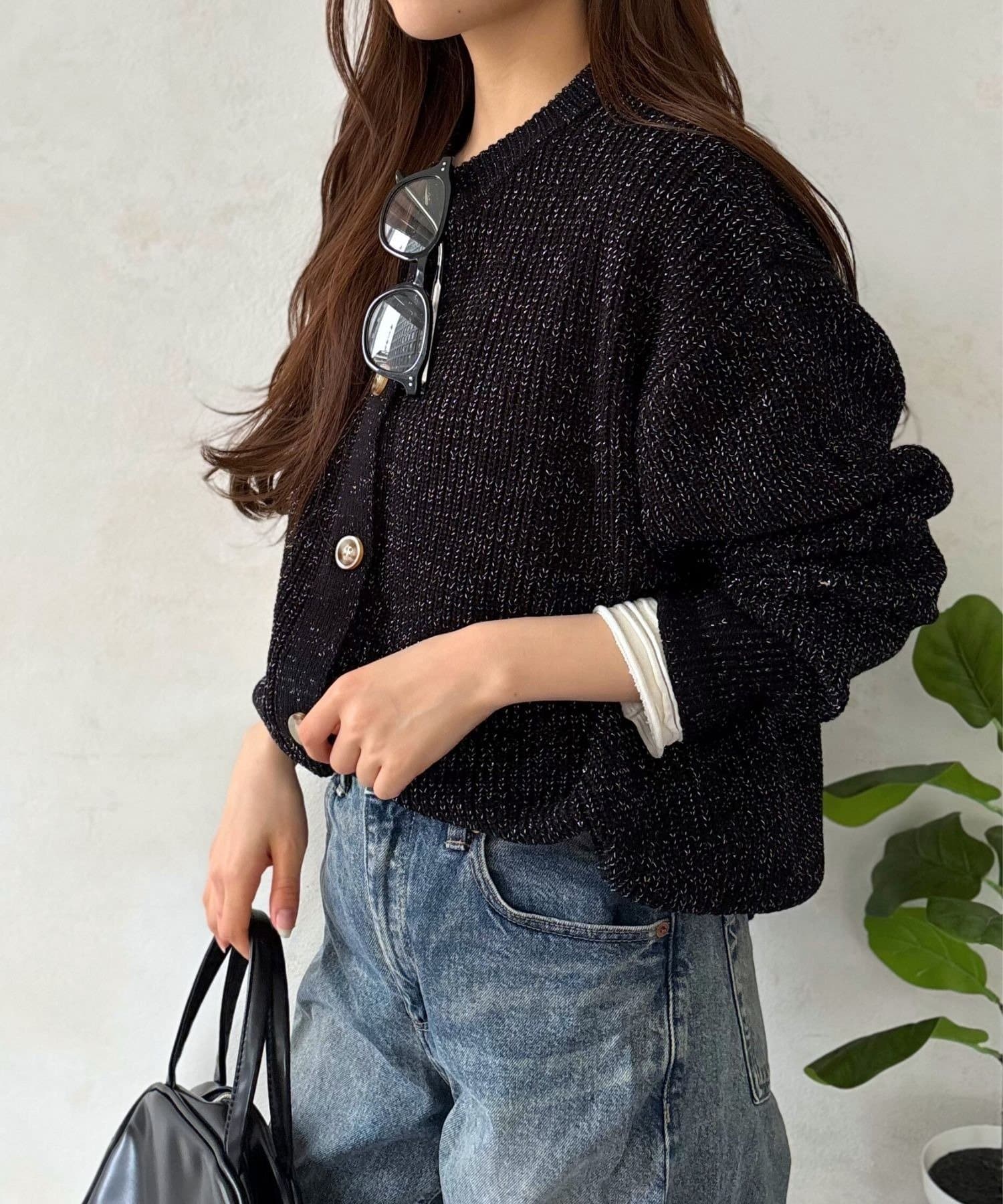 ざっくりニットカーディガンで、旬の大人カジュアルを叶える!ラメニットカーデ