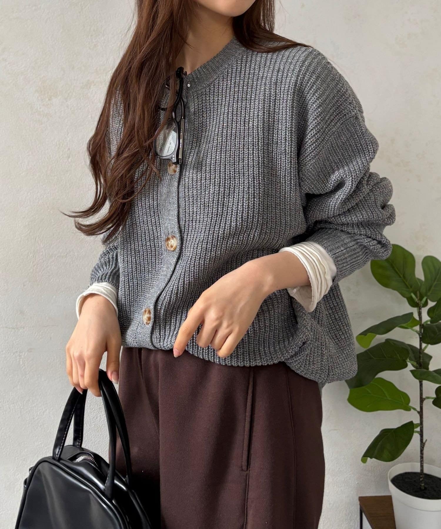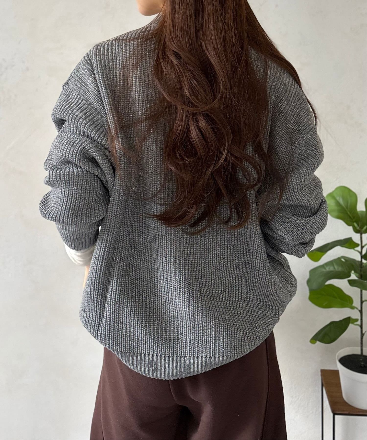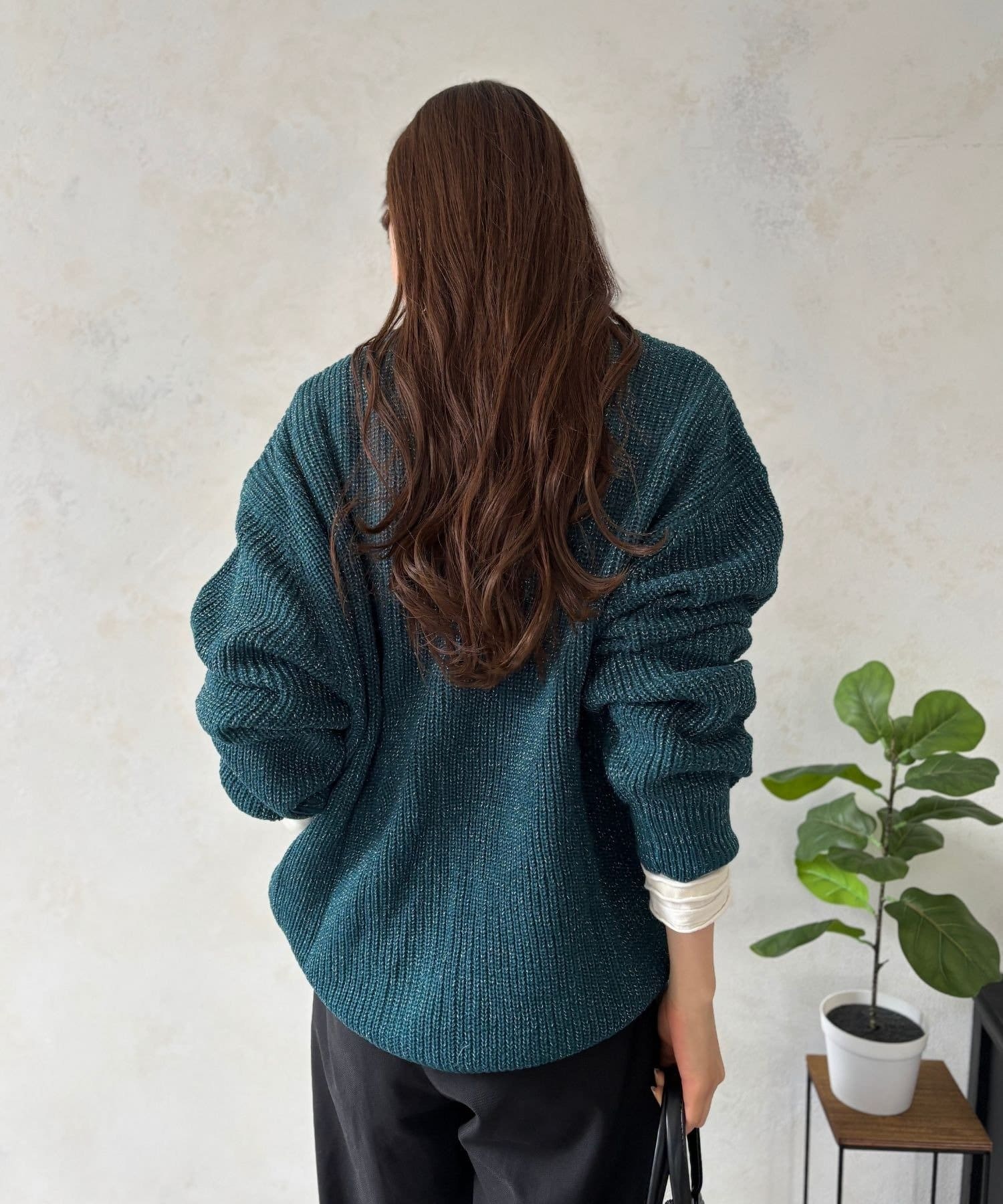 ざっくりニットカーディガンで、旬の大人カジュアルを叶える!ラメニットカーデ