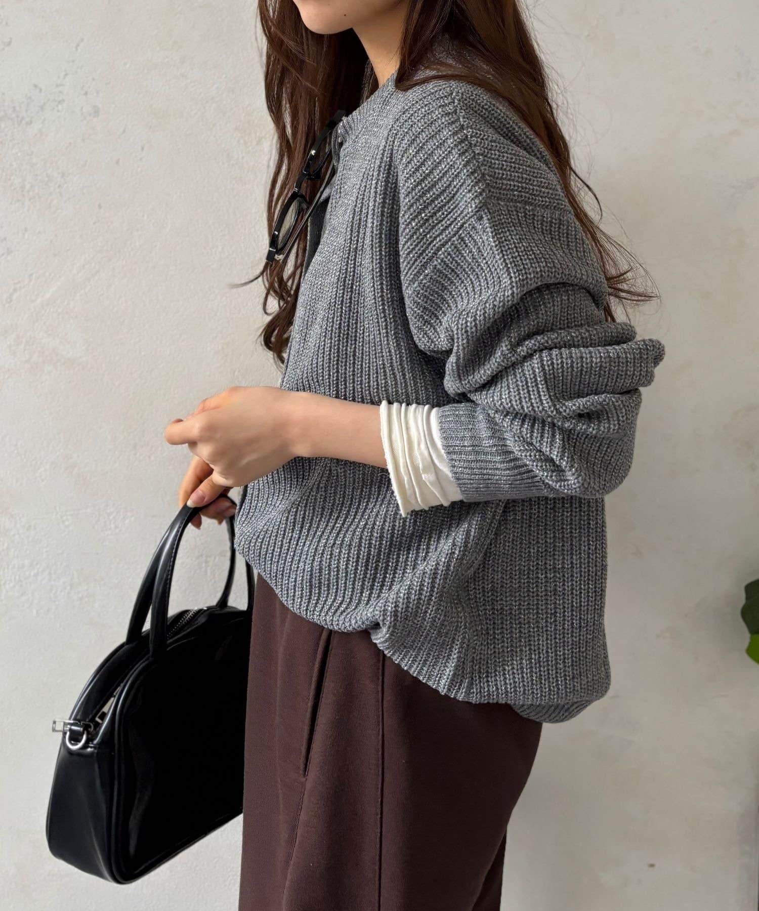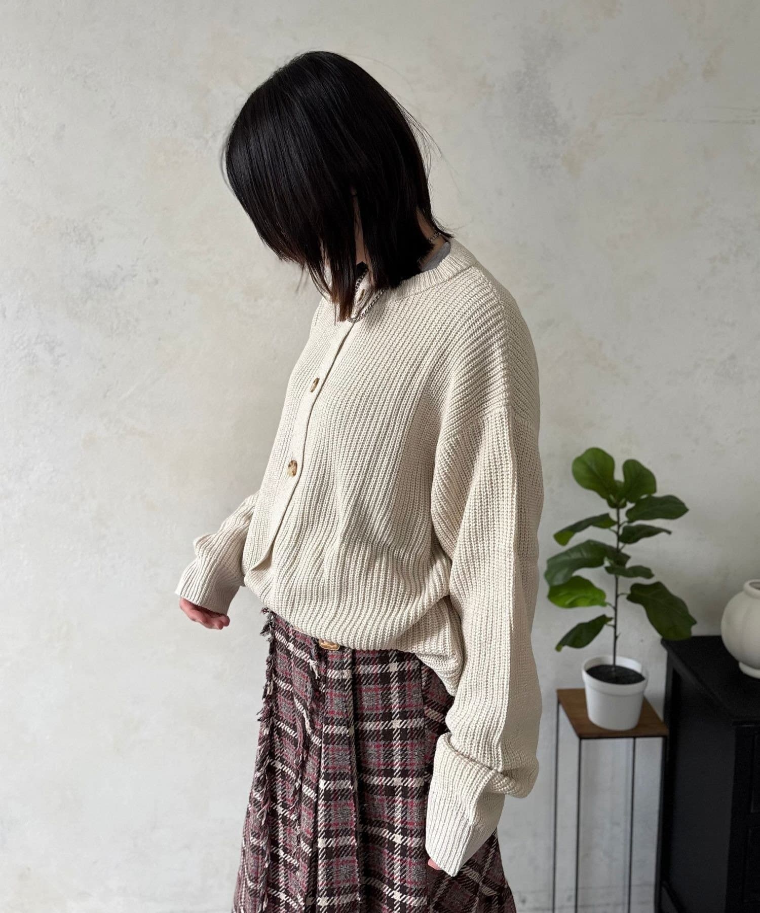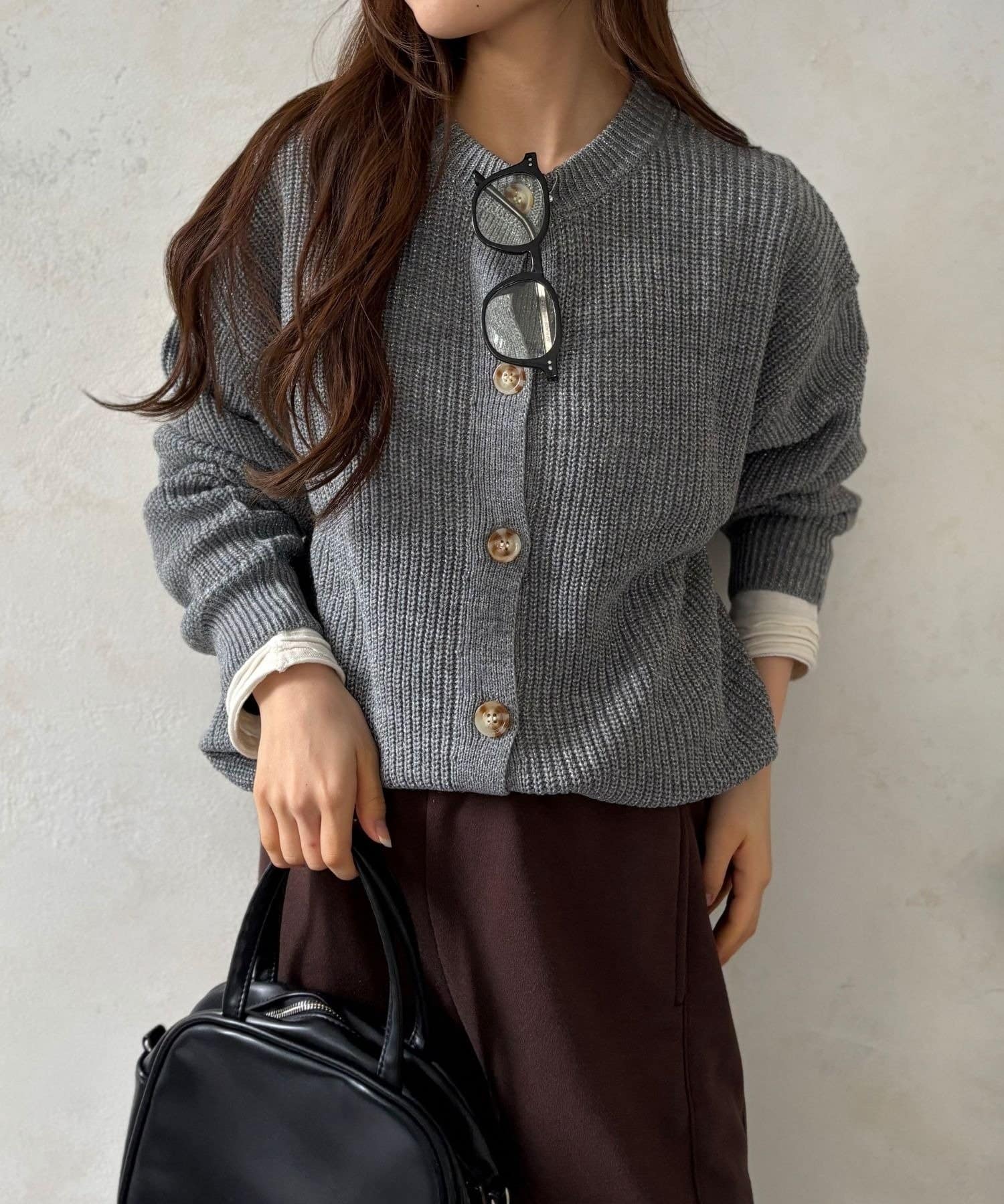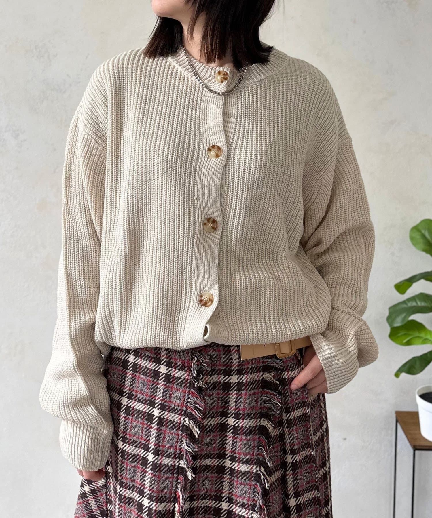 ざっくりニットカーディガンで、旬の大人カジュアルを叶える!ラメニットカーデ
