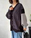 ざっくり感がたまらない、体系カバーが叶う切替ハンドステッチカーデ