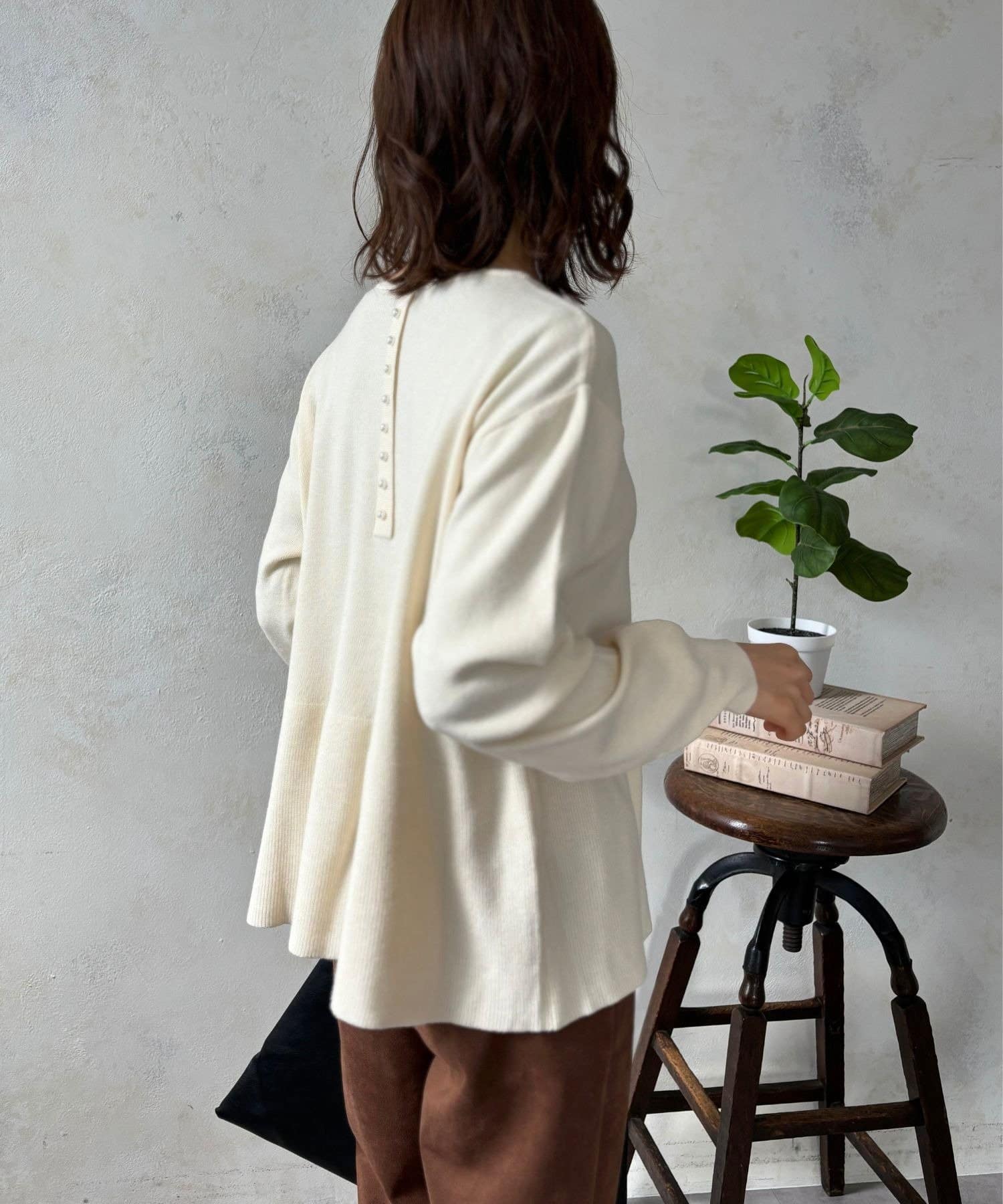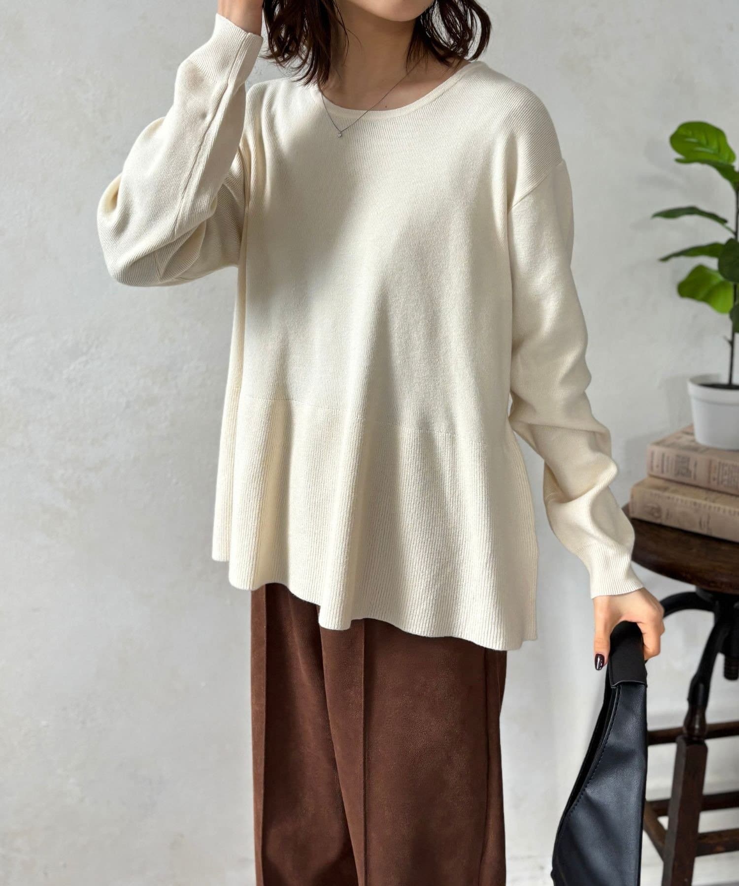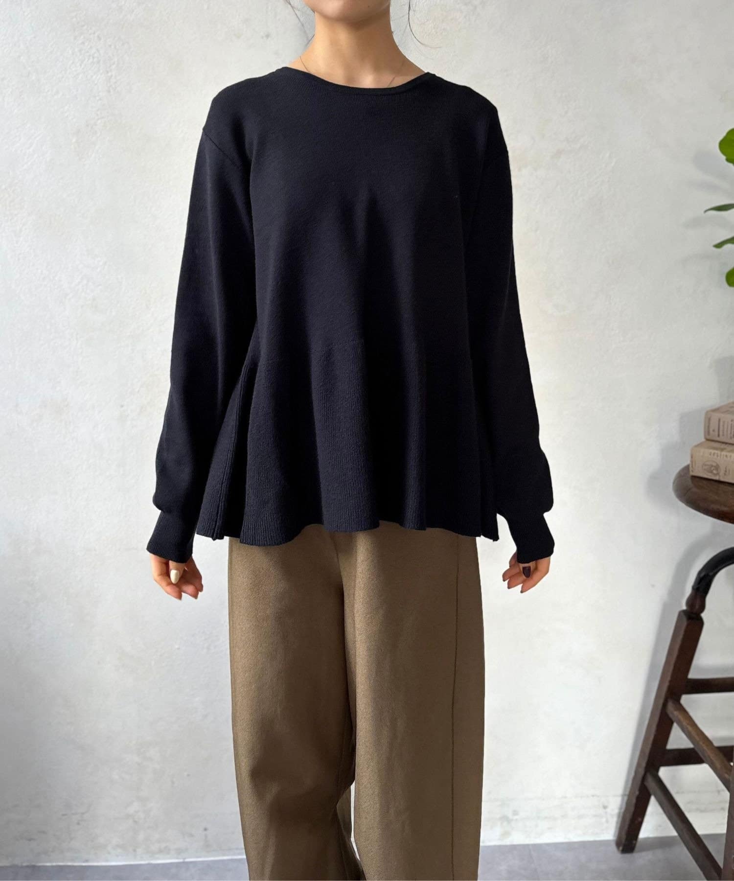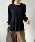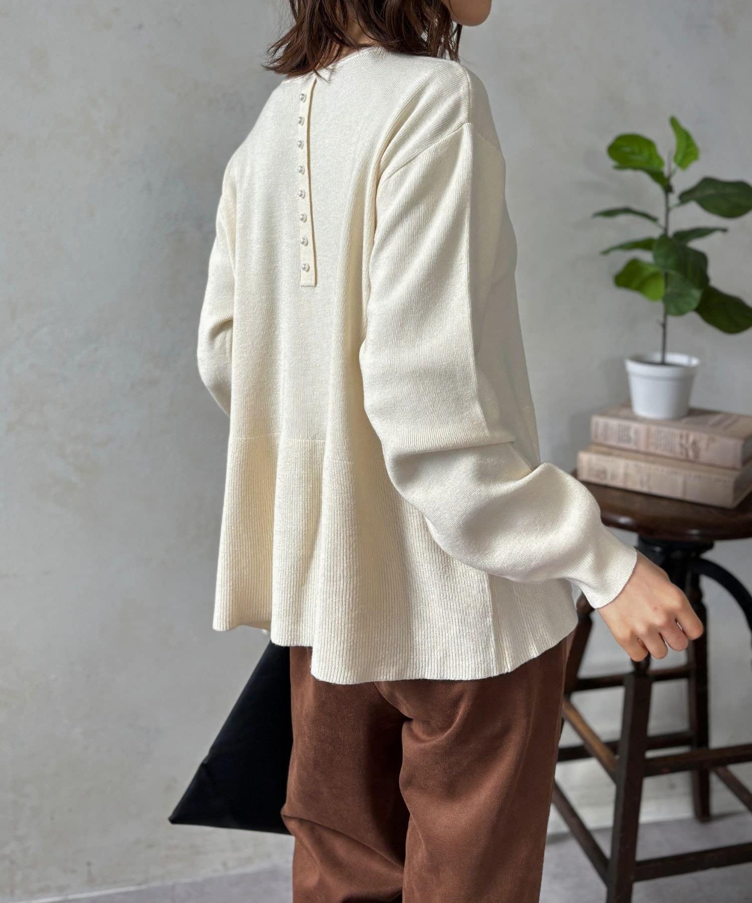 【伸縮性◎/大人女性に】バックパールペプラムニット