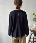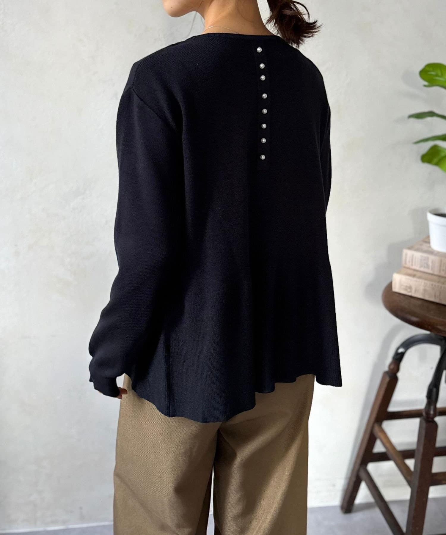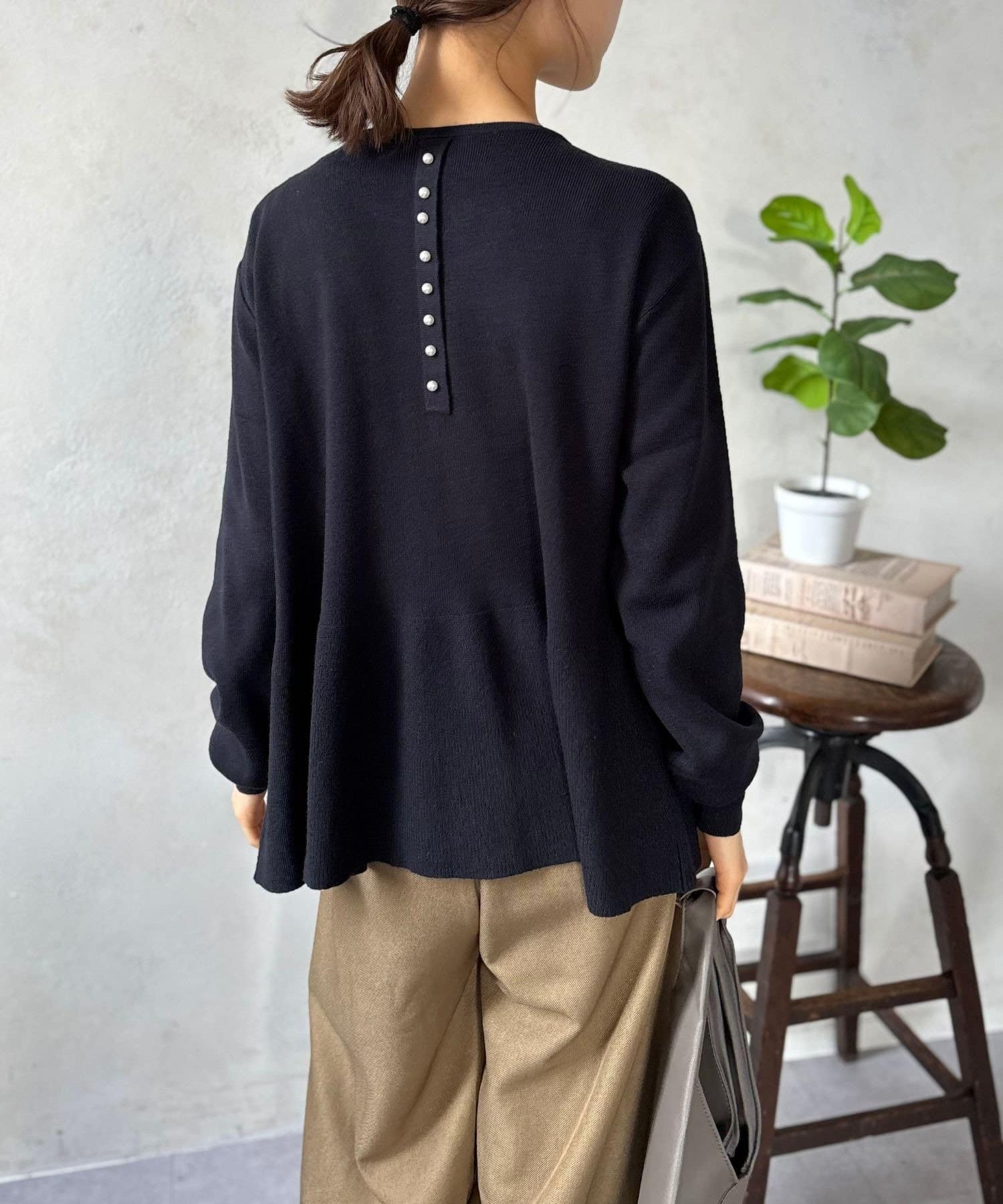 後ろにあしらわれたパールが、シンプルなニットに華やかさをプラス。