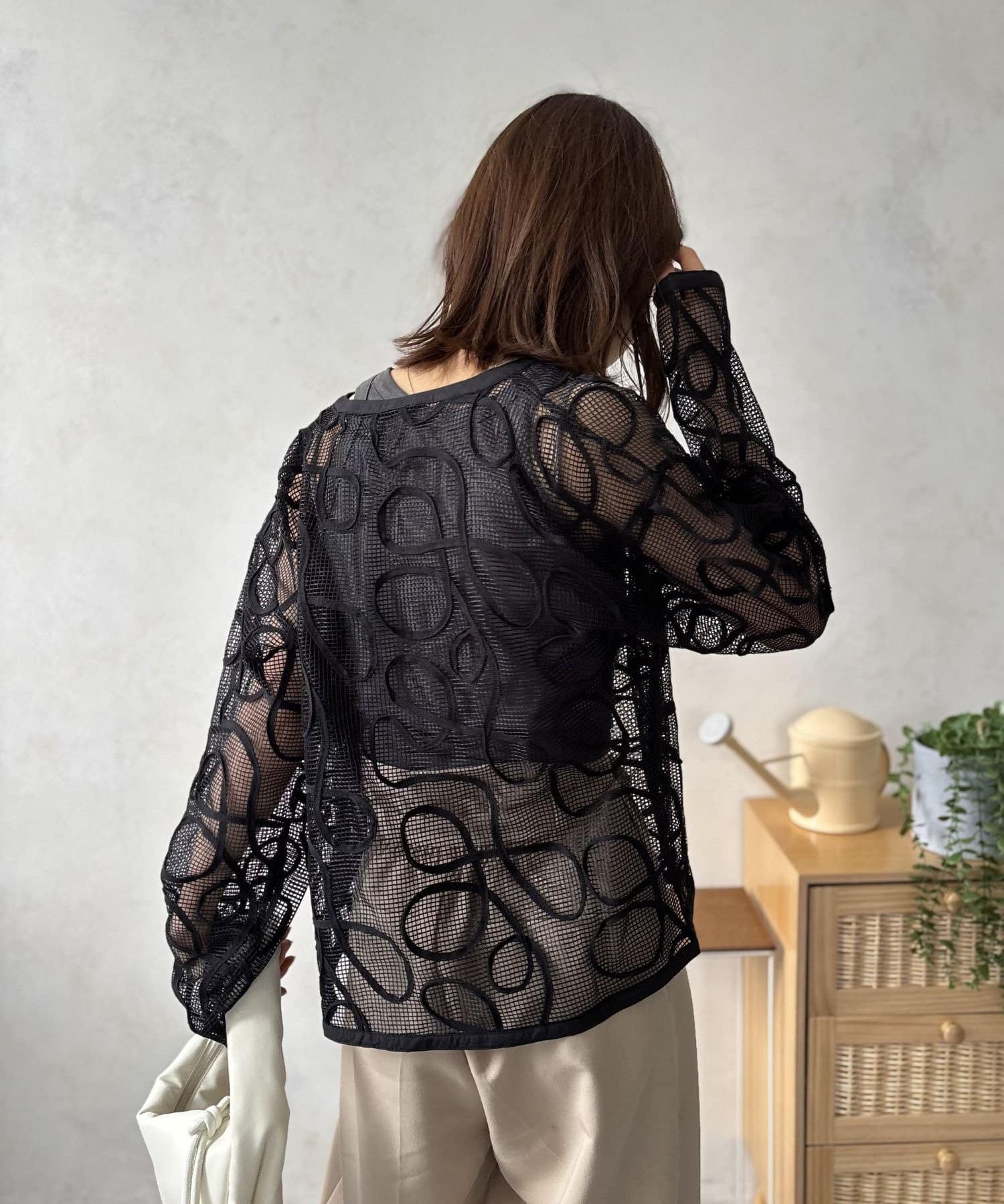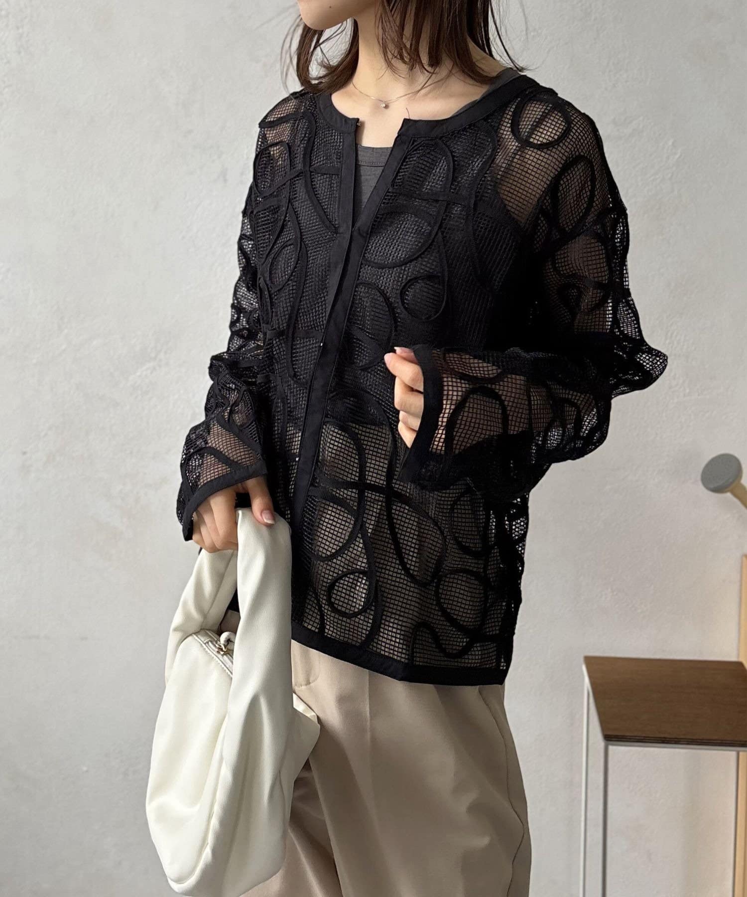 オケージョンにも普段着にも!着回し力抜群のコード刺繍メッシュカーディガン