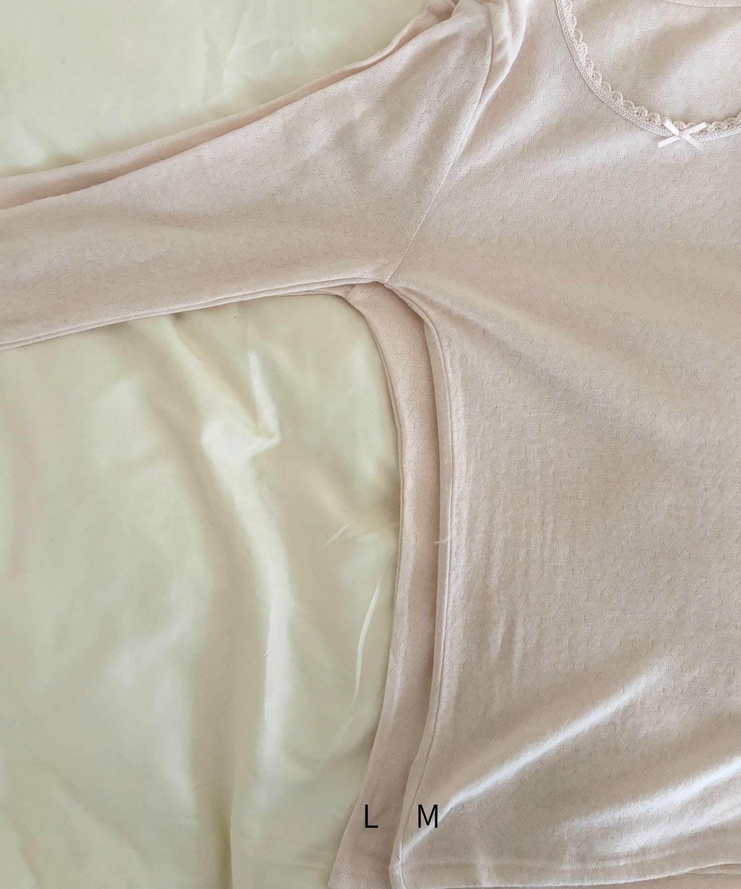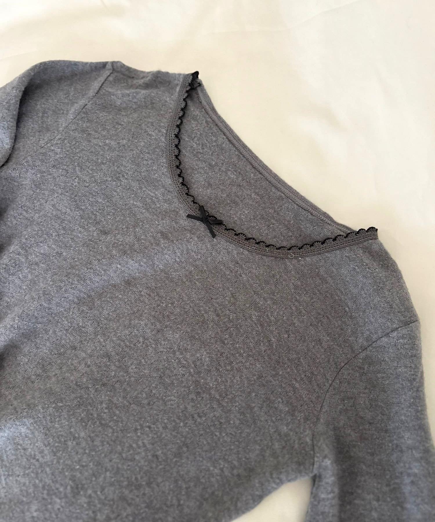 ネックラインには繊細なレースを施し、上品な可愛らしさをプラス。