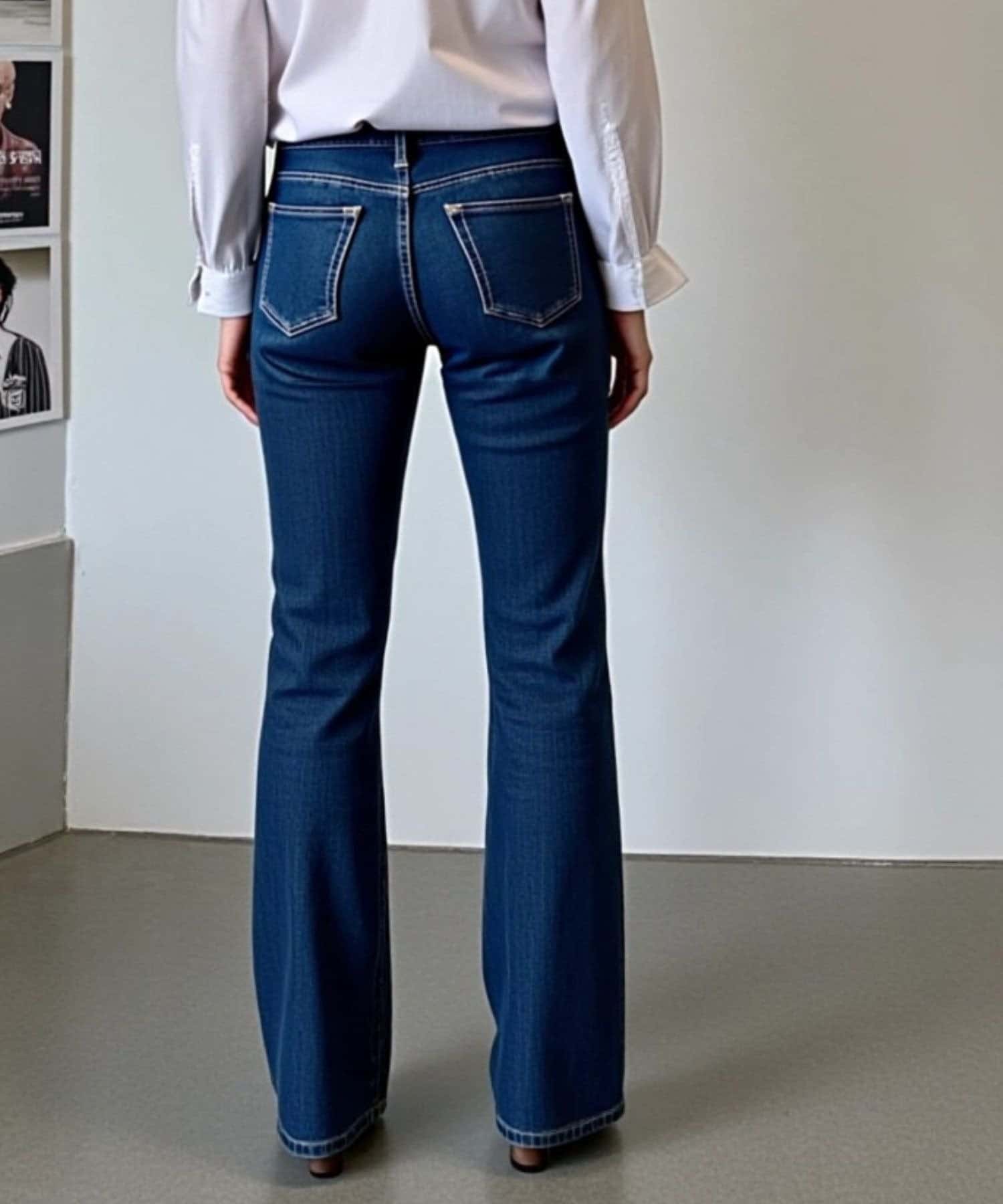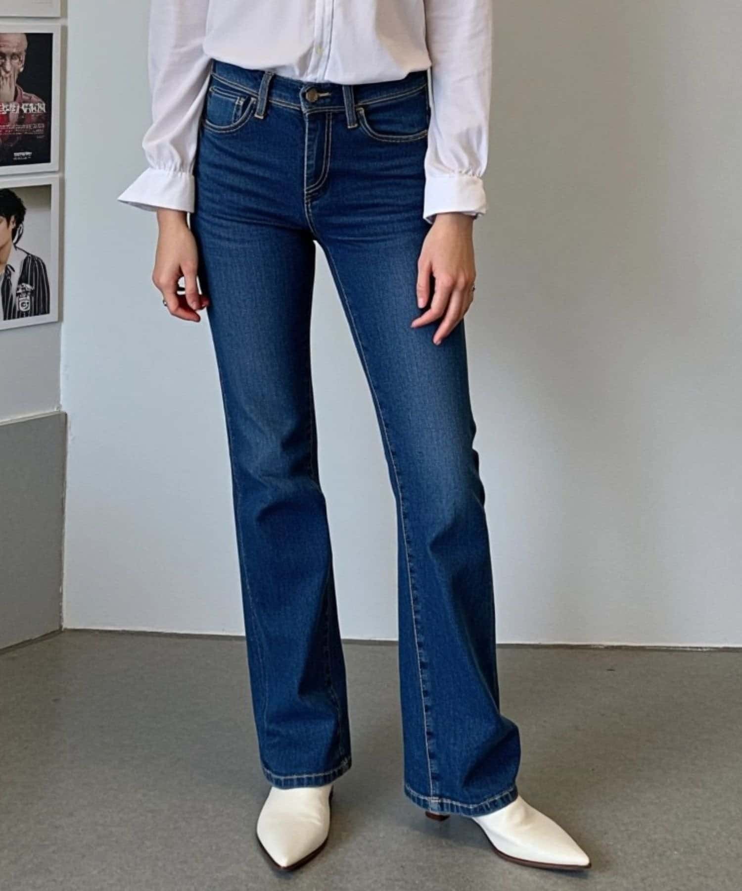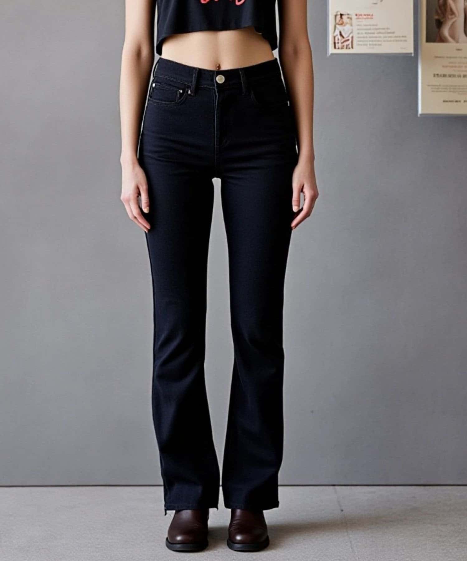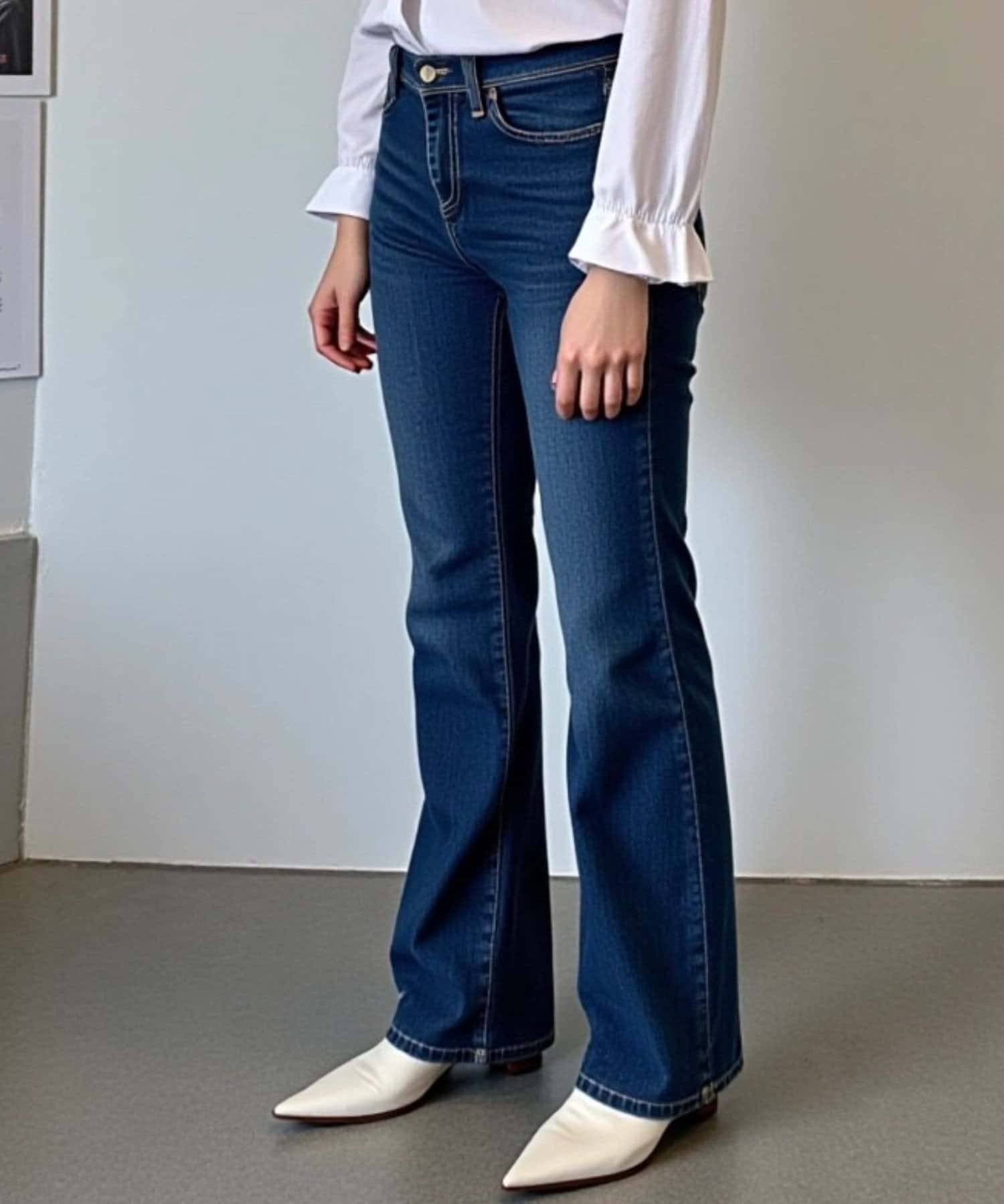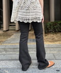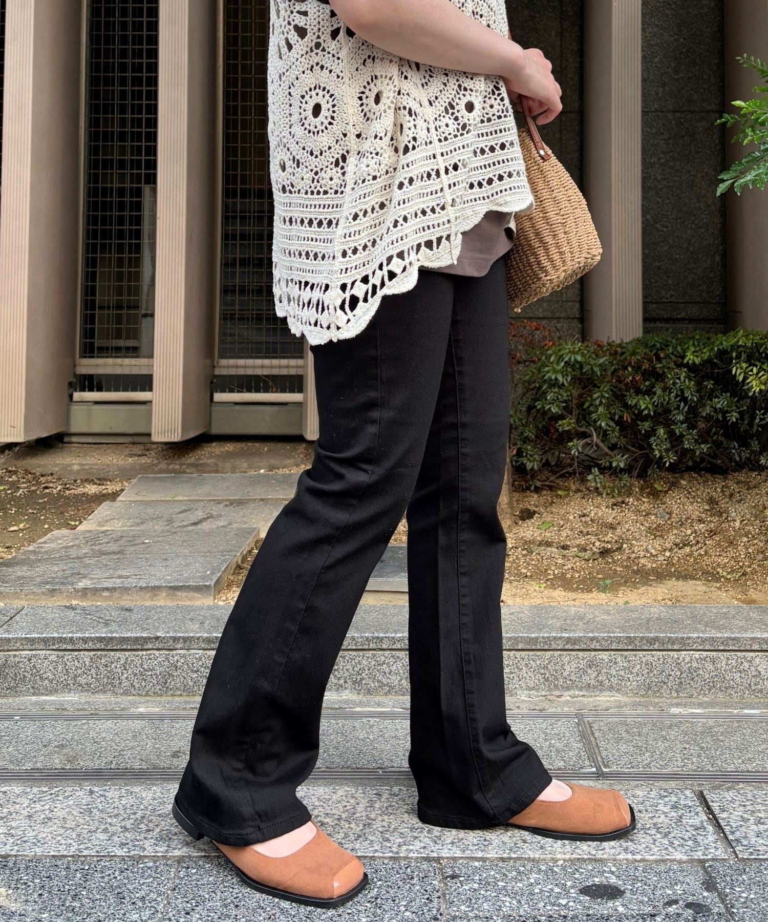 *   美脚シルエット: ひざ下から緩やかに広がるブーツカットデザインが、気になる太ももをカバーしつつ、脚を長く、そして細く見せてくれます。