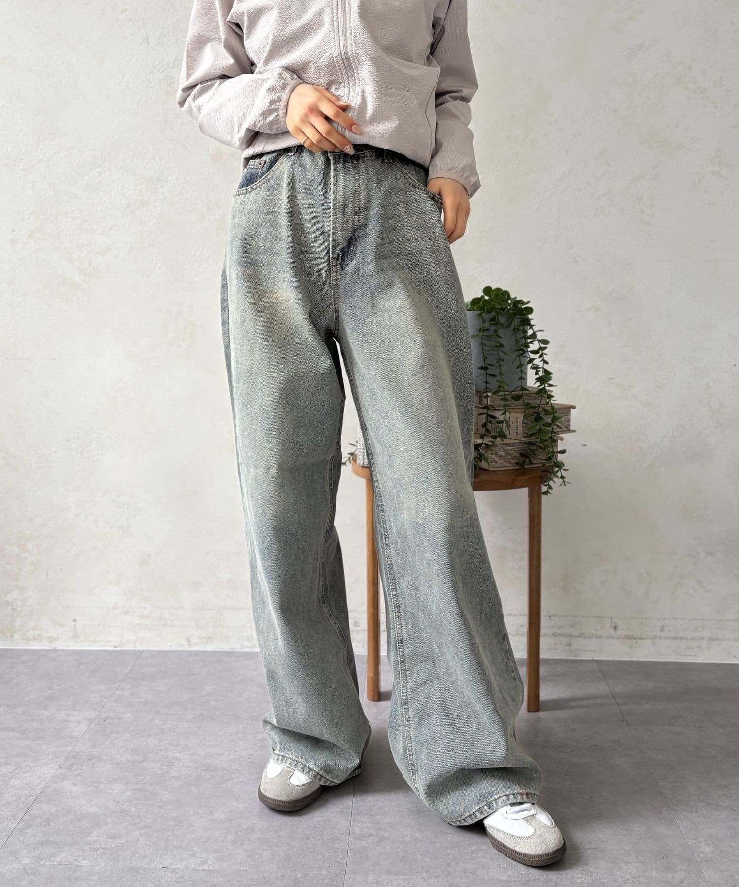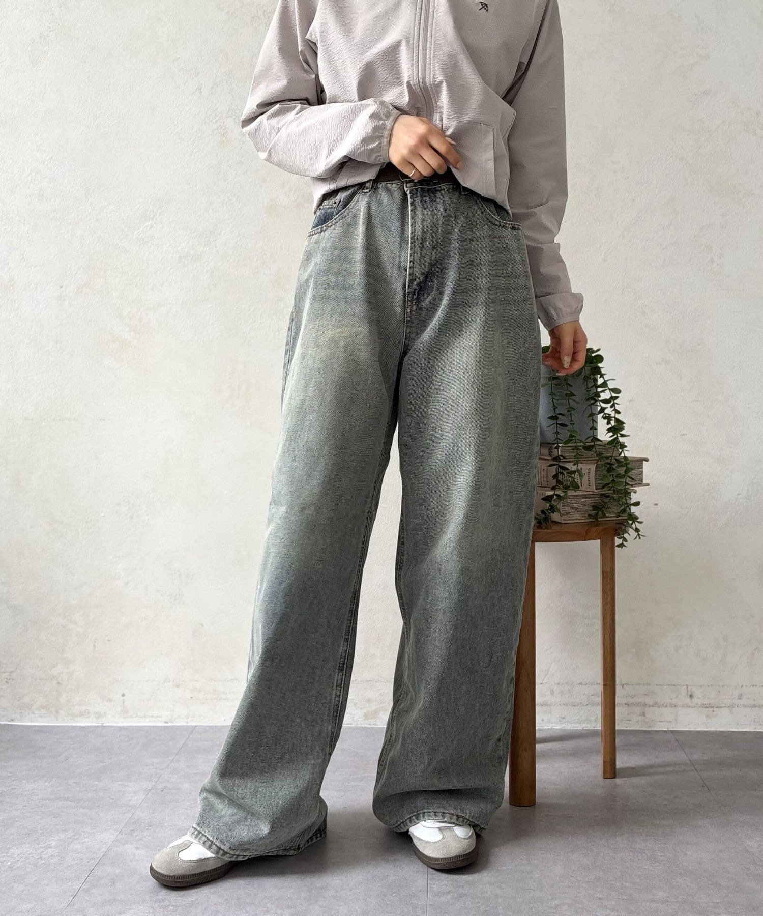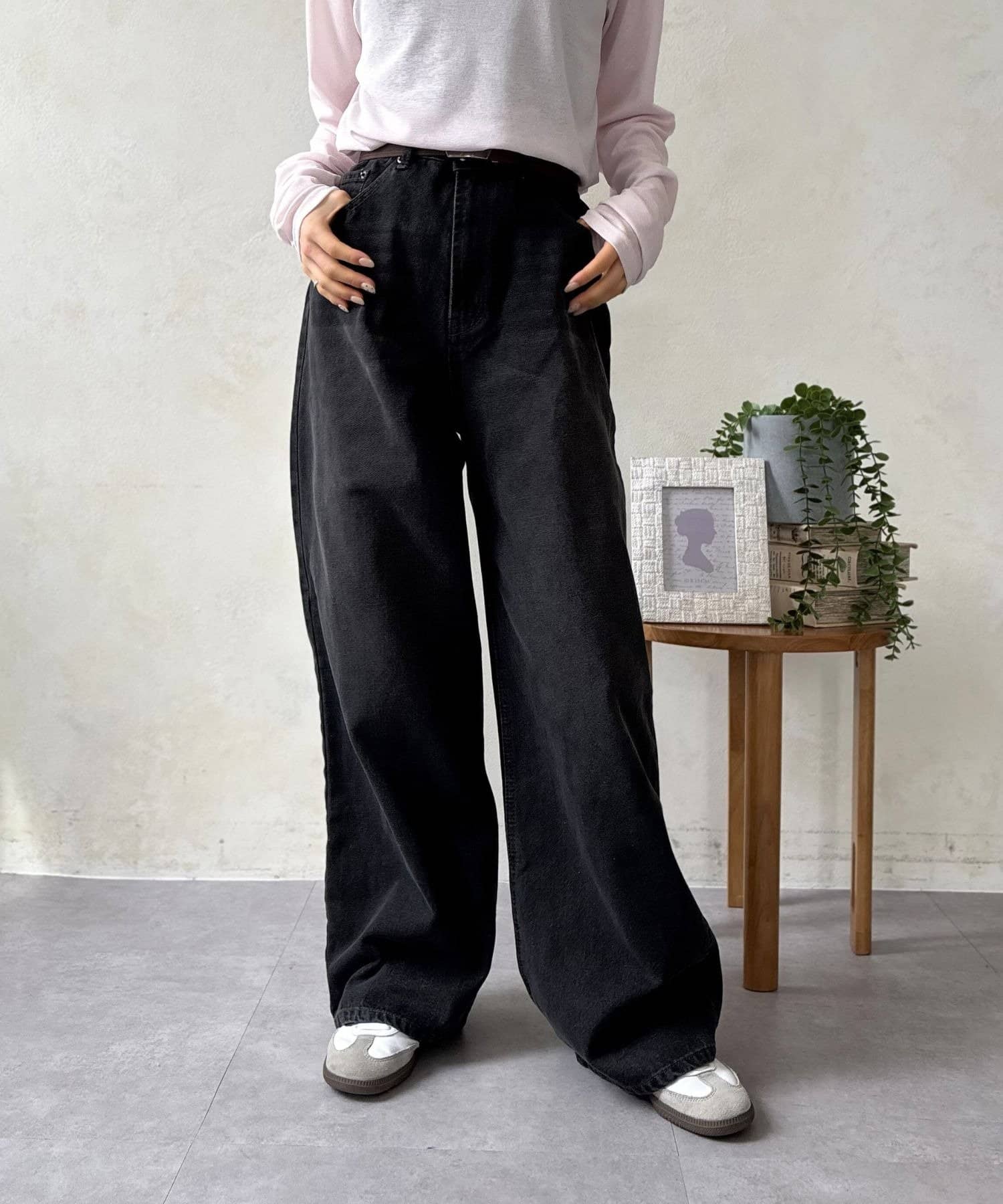 このデニムの最大のポイントは、なんといってもこの大胆なまでのワイドシルエット。ストンとまっすぐ落ちるラインが、気になるヒップや太もも、ふくらはぎまで、脚全体のラインをまるっとカバーしてくれます。