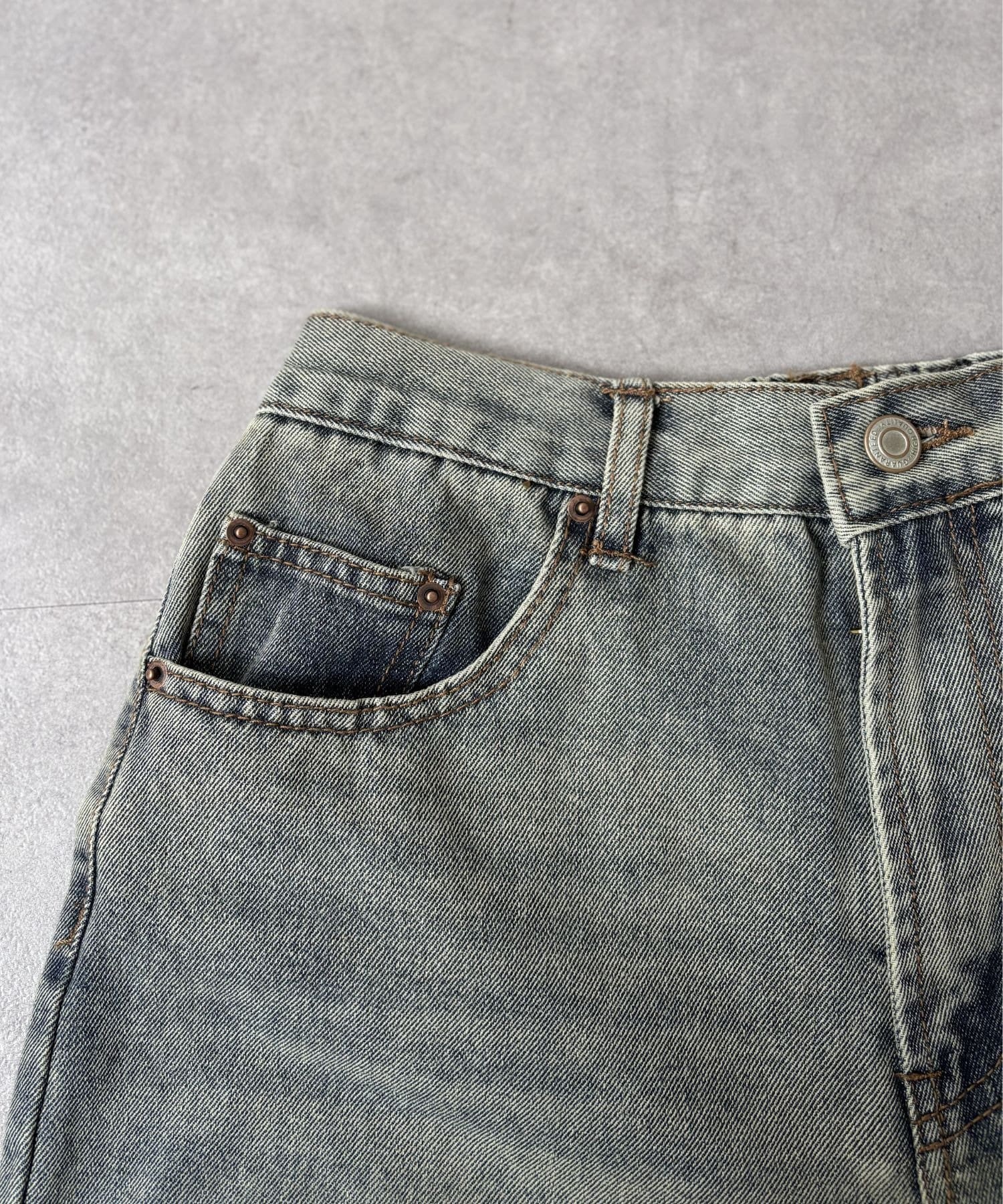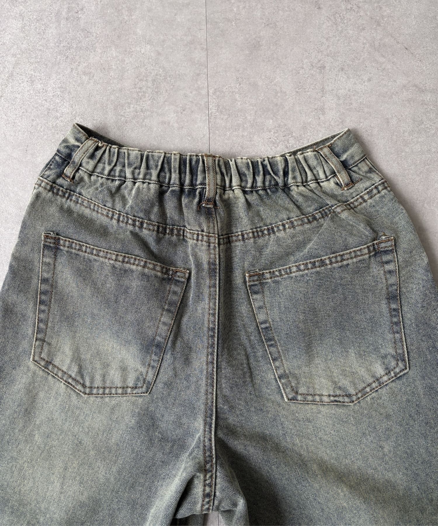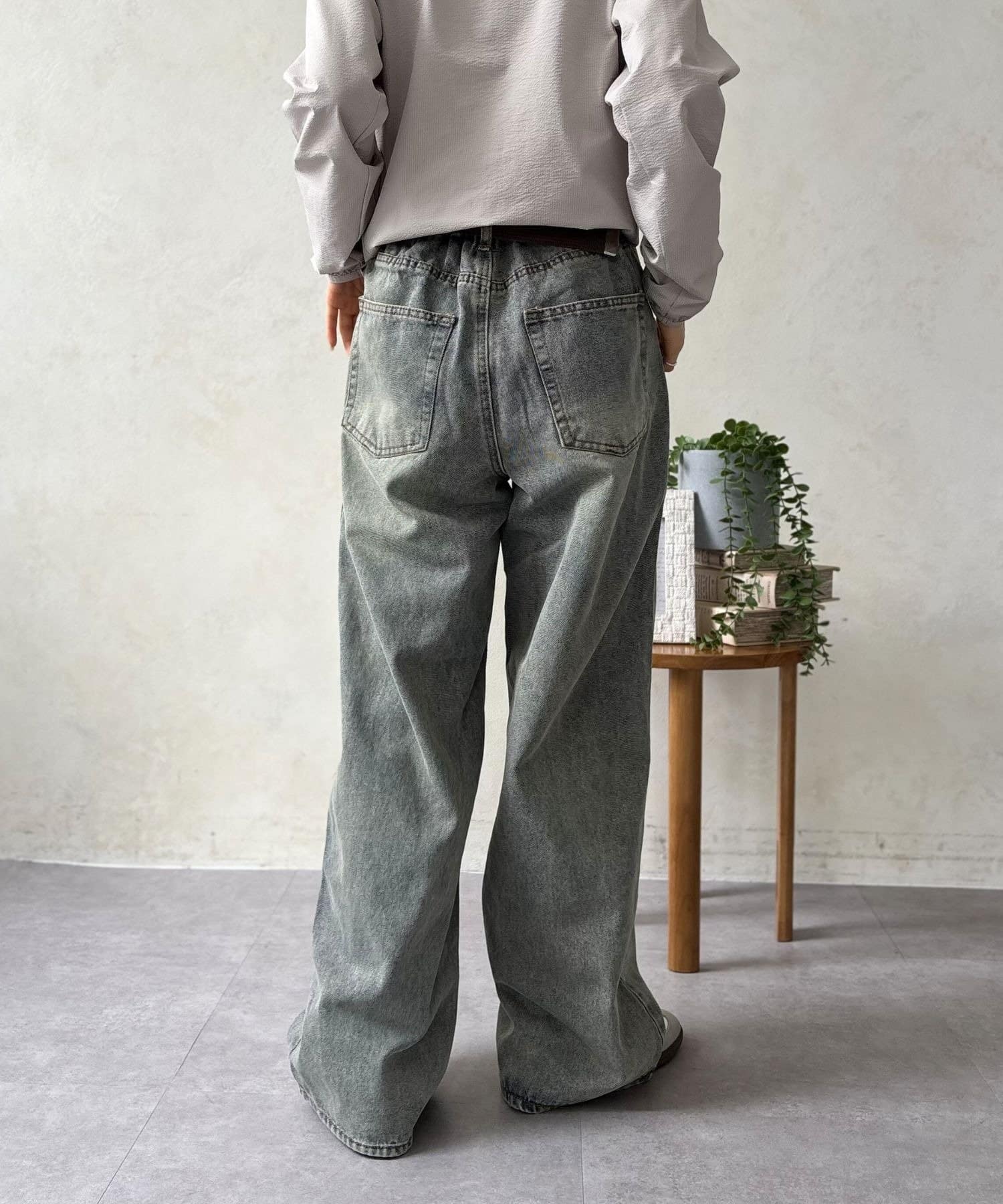 このデニムの最大のポイントは、なんといってもこの大胆なまでのワイドシルエット。ストンとまっすぐ落ちるラインが、気になるヒップや太もも、ふくらはぎまで、脚全体のラインをまるっとカバーしてくれます。