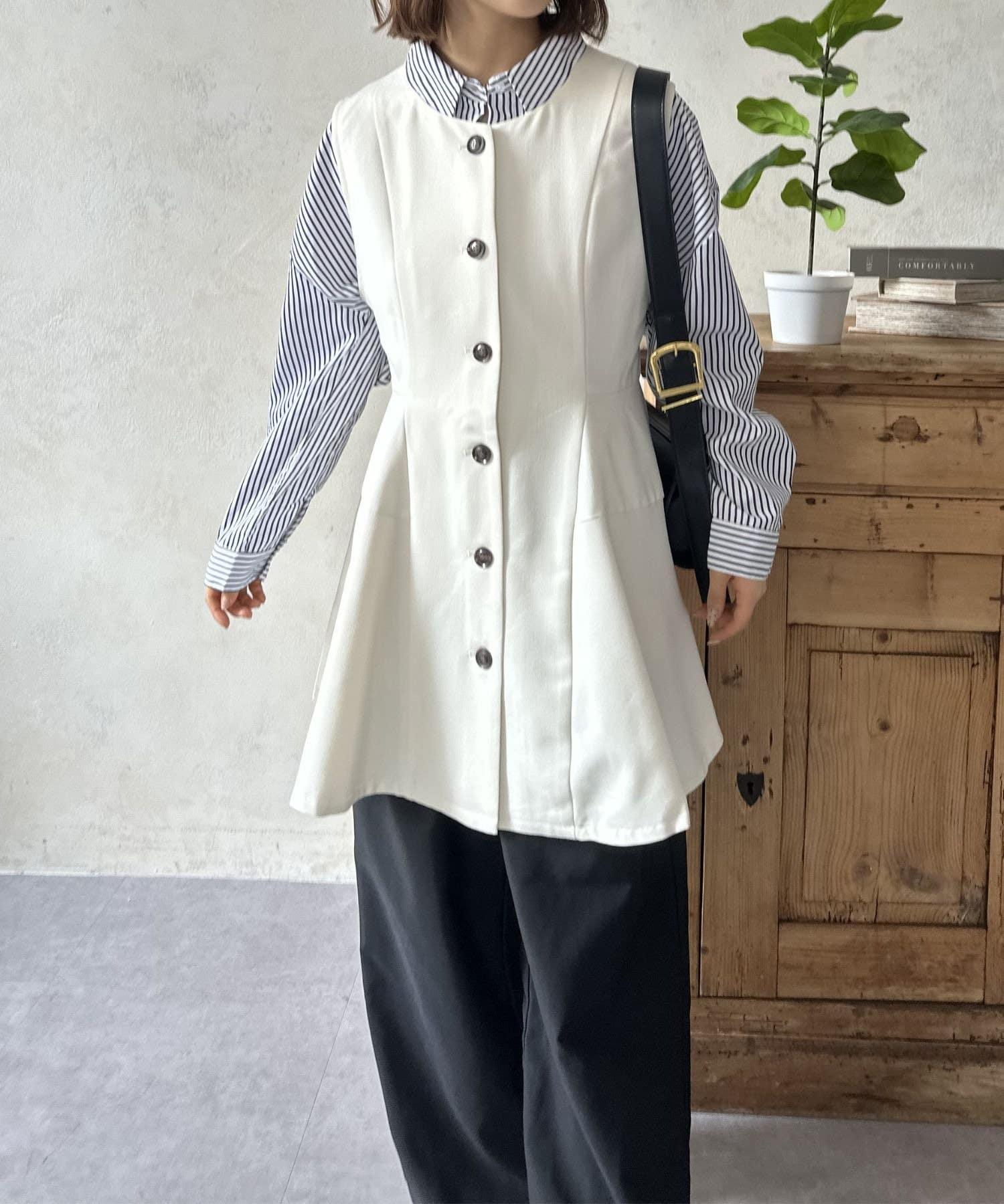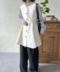 甘くなりがちなフリルデザインも、凛としたストライプ柄とハリのあるシャツ生地なので、大人の女性にもぴったりです。