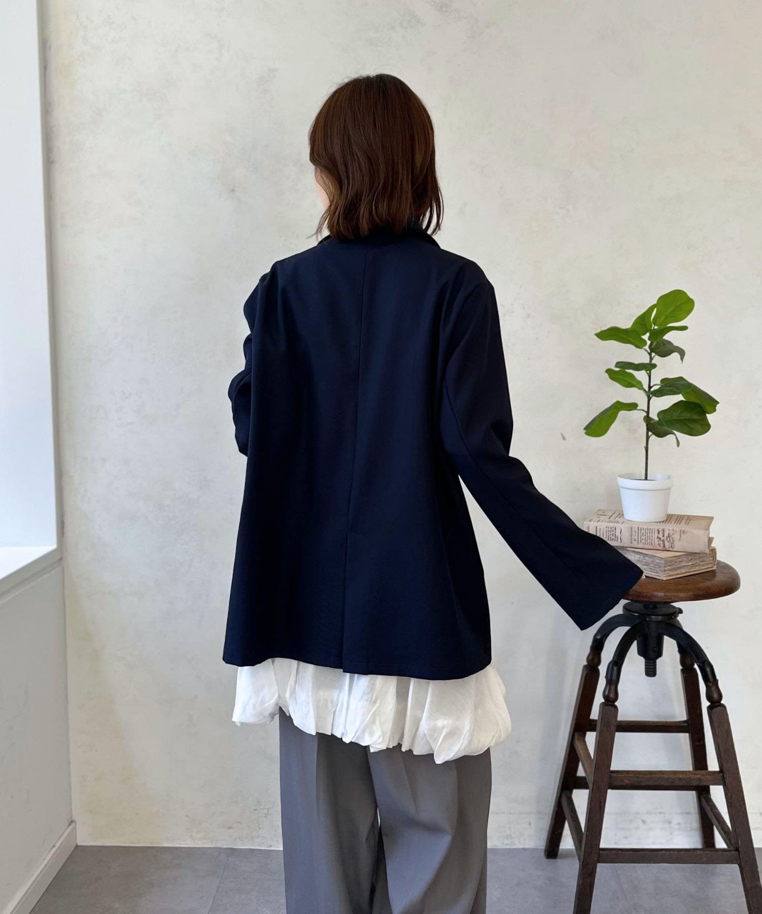 同素材パンツ【21O1061202A0005/TRワイドパンツ】【21O1061202A0006/TRコクーンパンツ】と合わせたセットアップスタイルなら、一瞬で洗練されたフォーマルコーデが完成。
