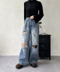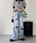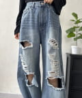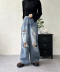 【スタイルアップ】ダメージワイドパンツ