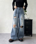 【スタイルアップ】ダメージワイドパンツ