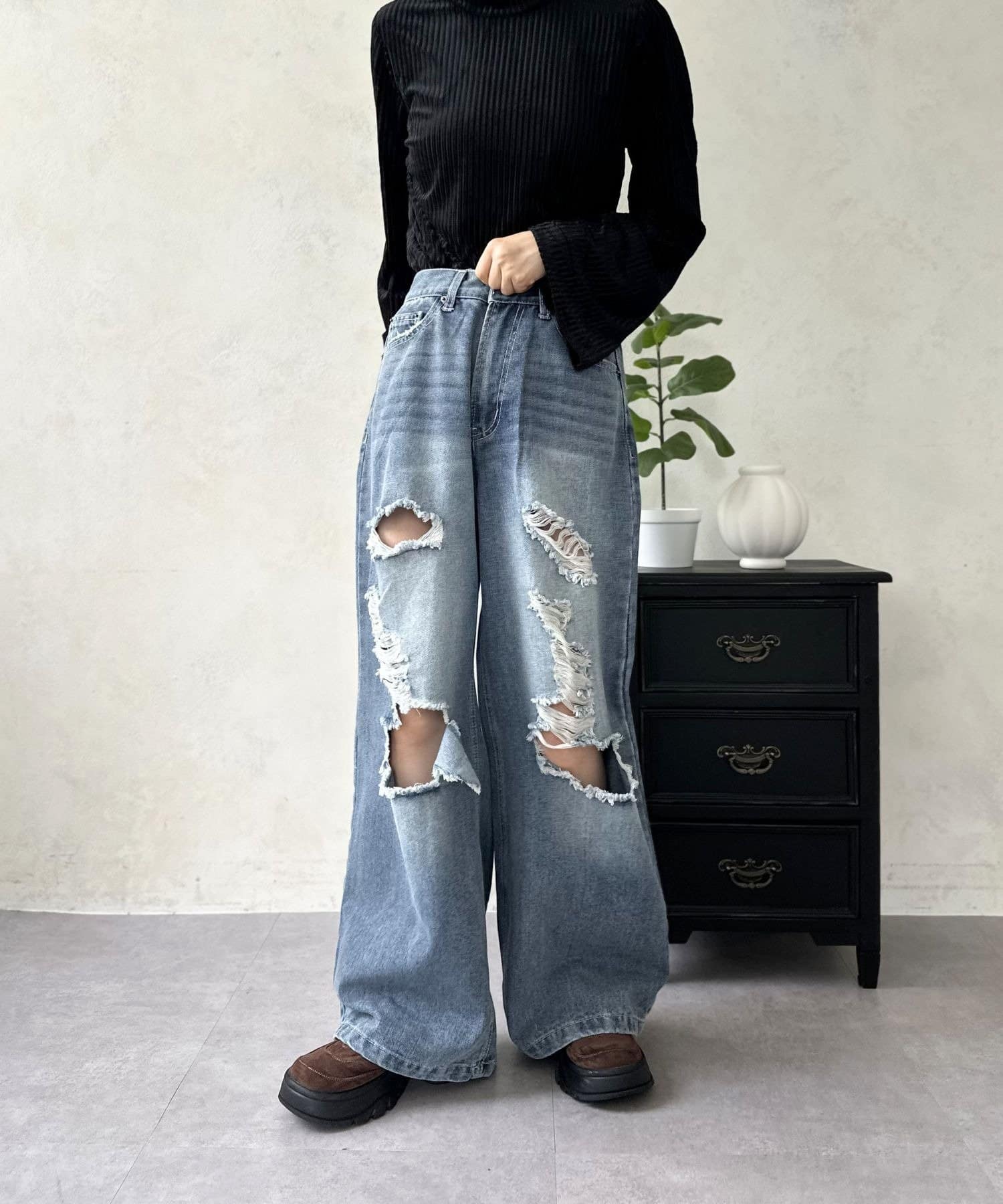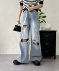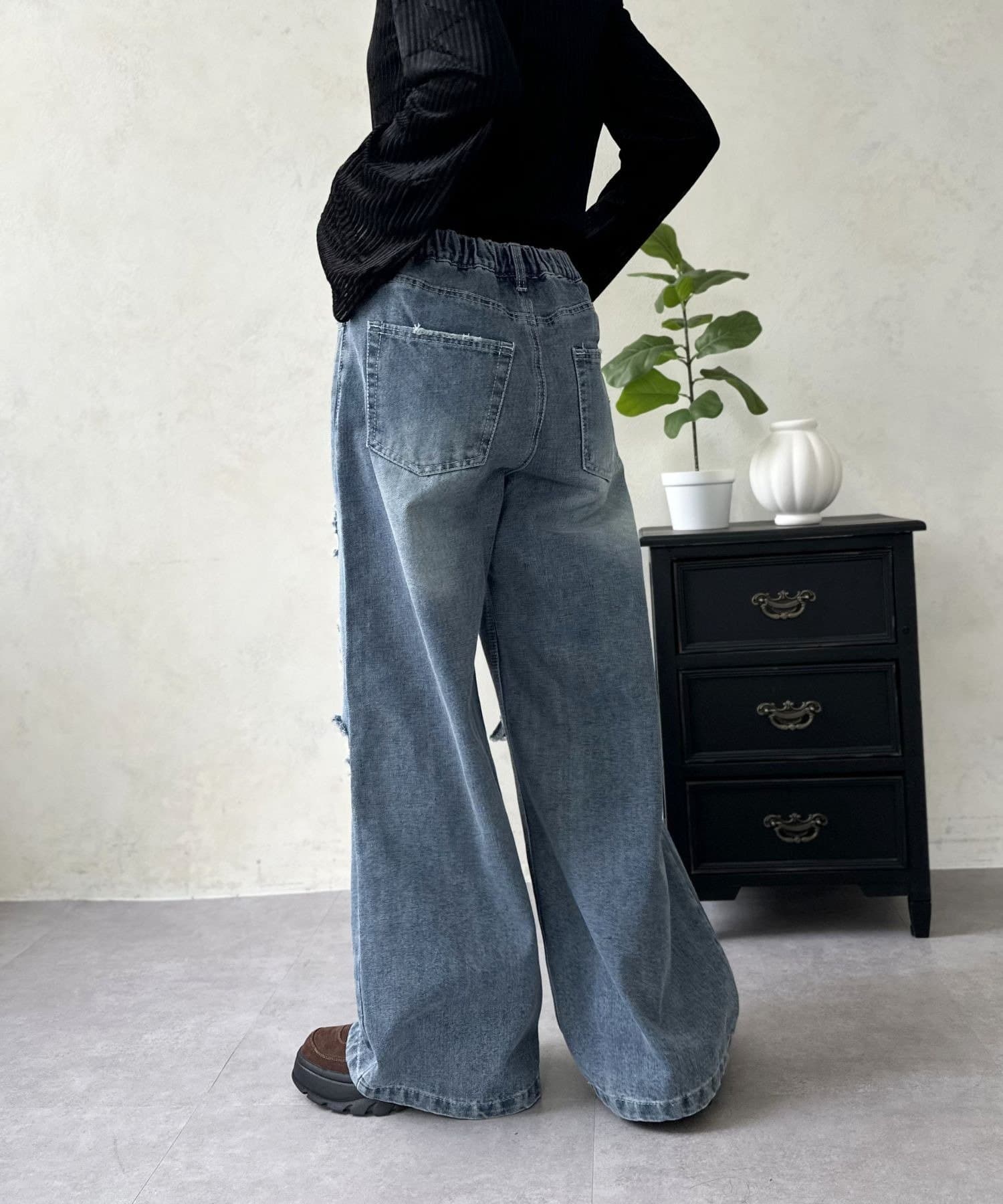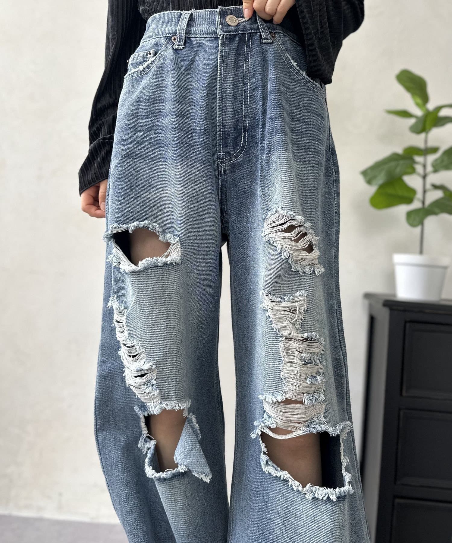 履くだけでスタイルアップ!トレンド感あふれる、ダメージワイドパンツ