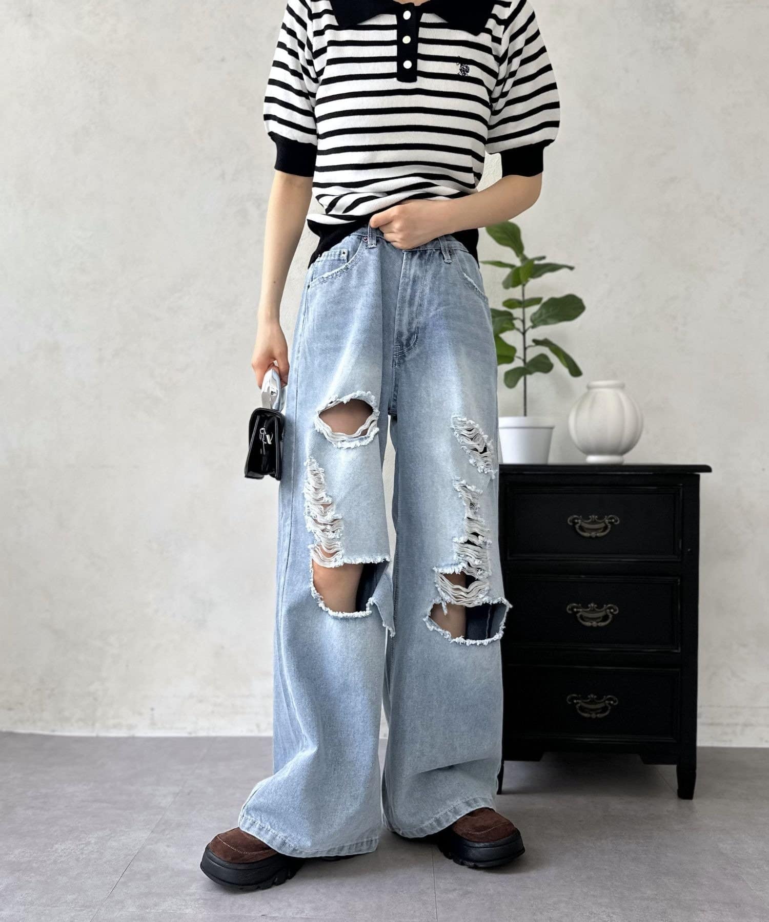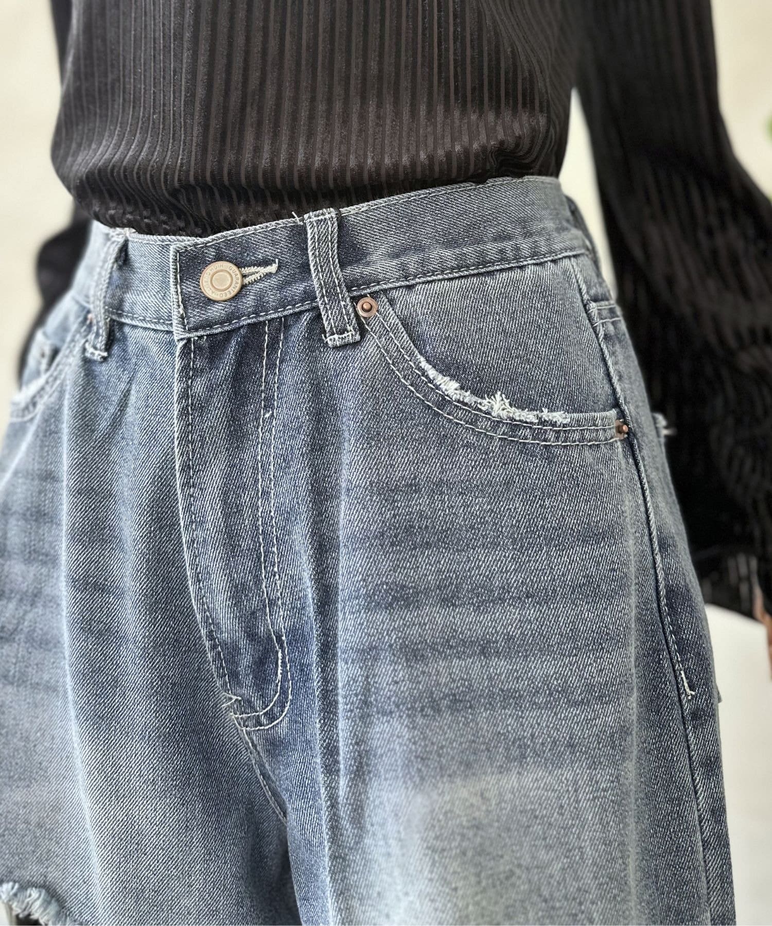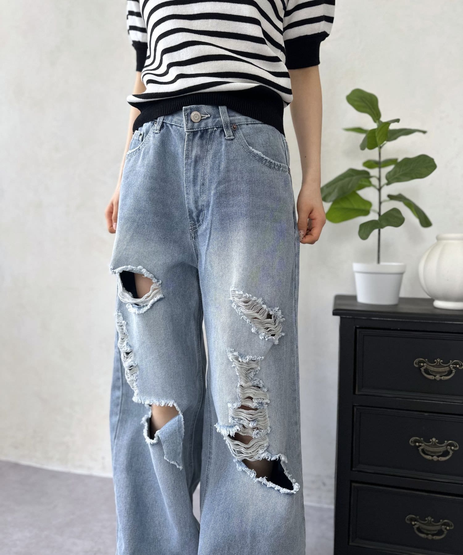 履くだけでスタイルアップ!トレンド感あふれる、ダメージワイドパンツ