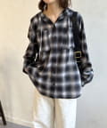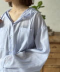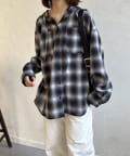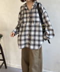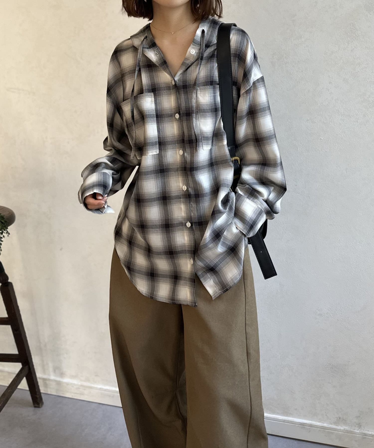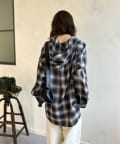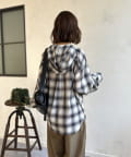 【シアー素材】フードチェックロングシャツ