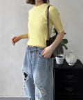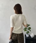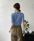 詰まりすぎないクルーネックは、顔周りをシャープに見せ、ネックレスなどのアクセサリーとの相性も抜群です。
