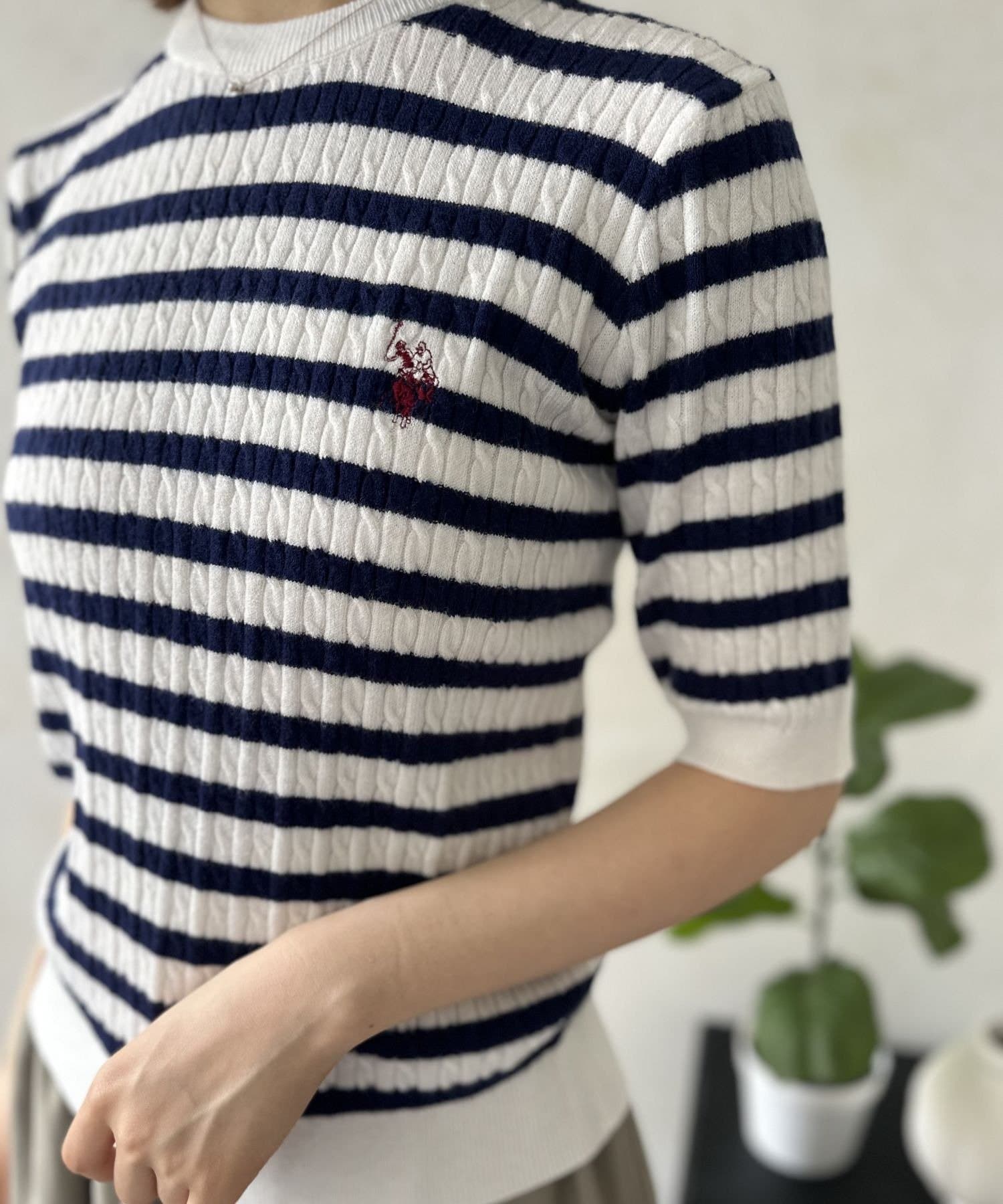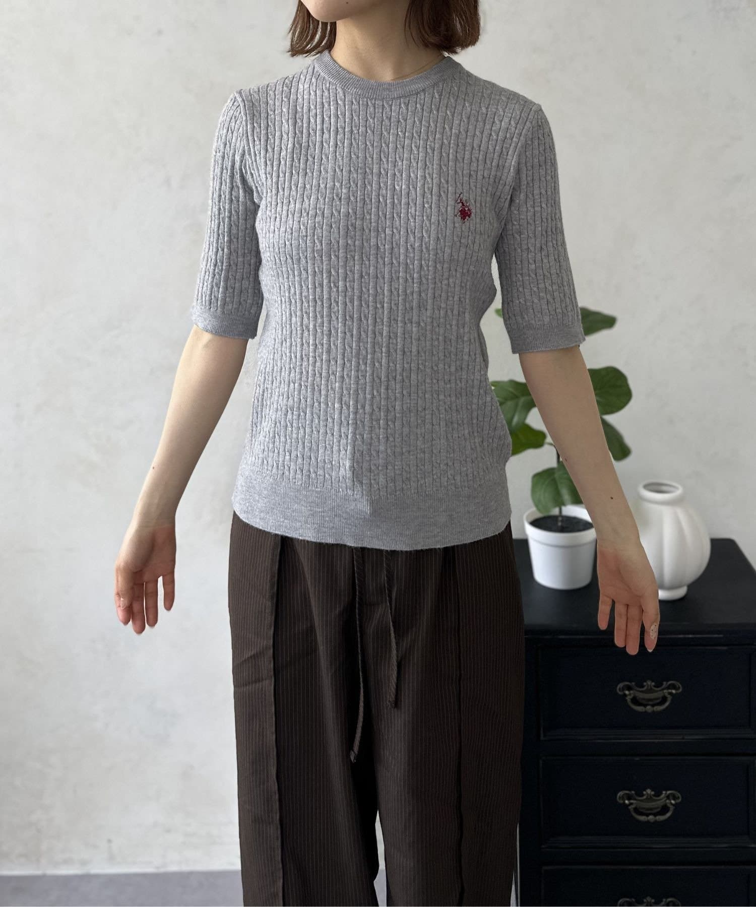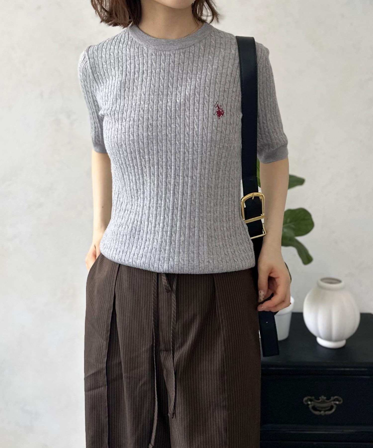 【U.S.POLO ASSN.】半袖ケーブルニット