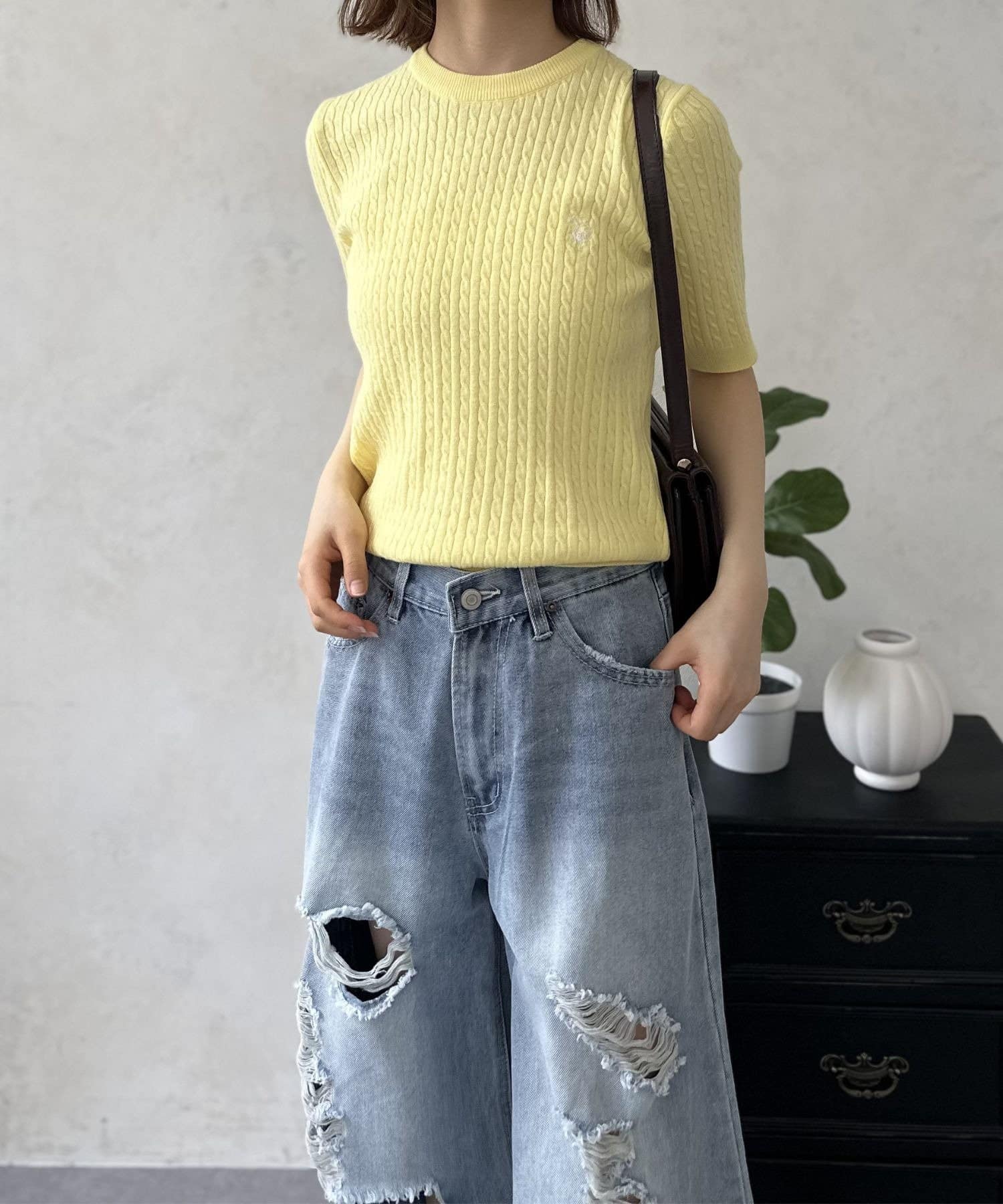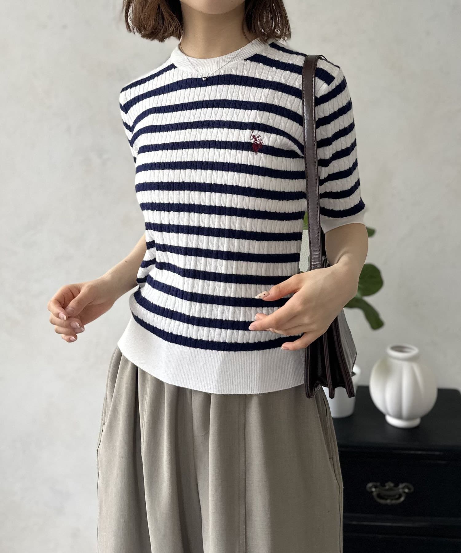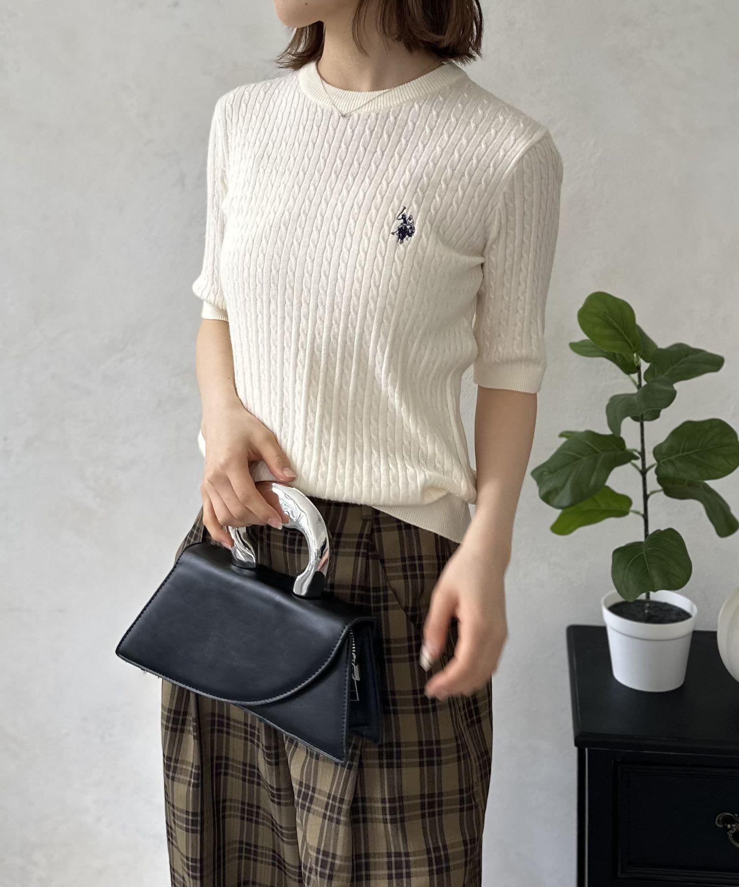 【U.S.POLO ASSN.】半袖ケーブルニット