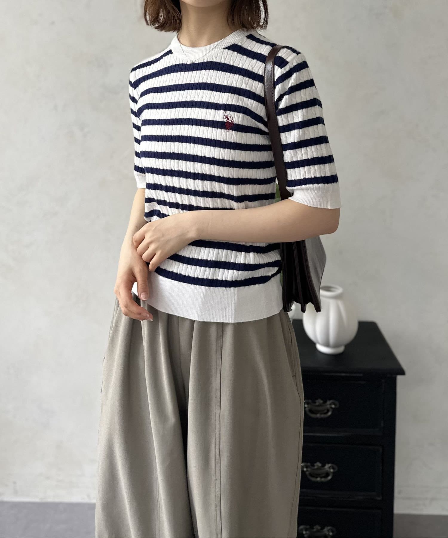 胸元には、ブランドのアイコンであるダブルホースマンのロゴ刺繍をワンポイントで配置。さりげないアクセントが、上質さとこなれ感をプラスしてくれます。