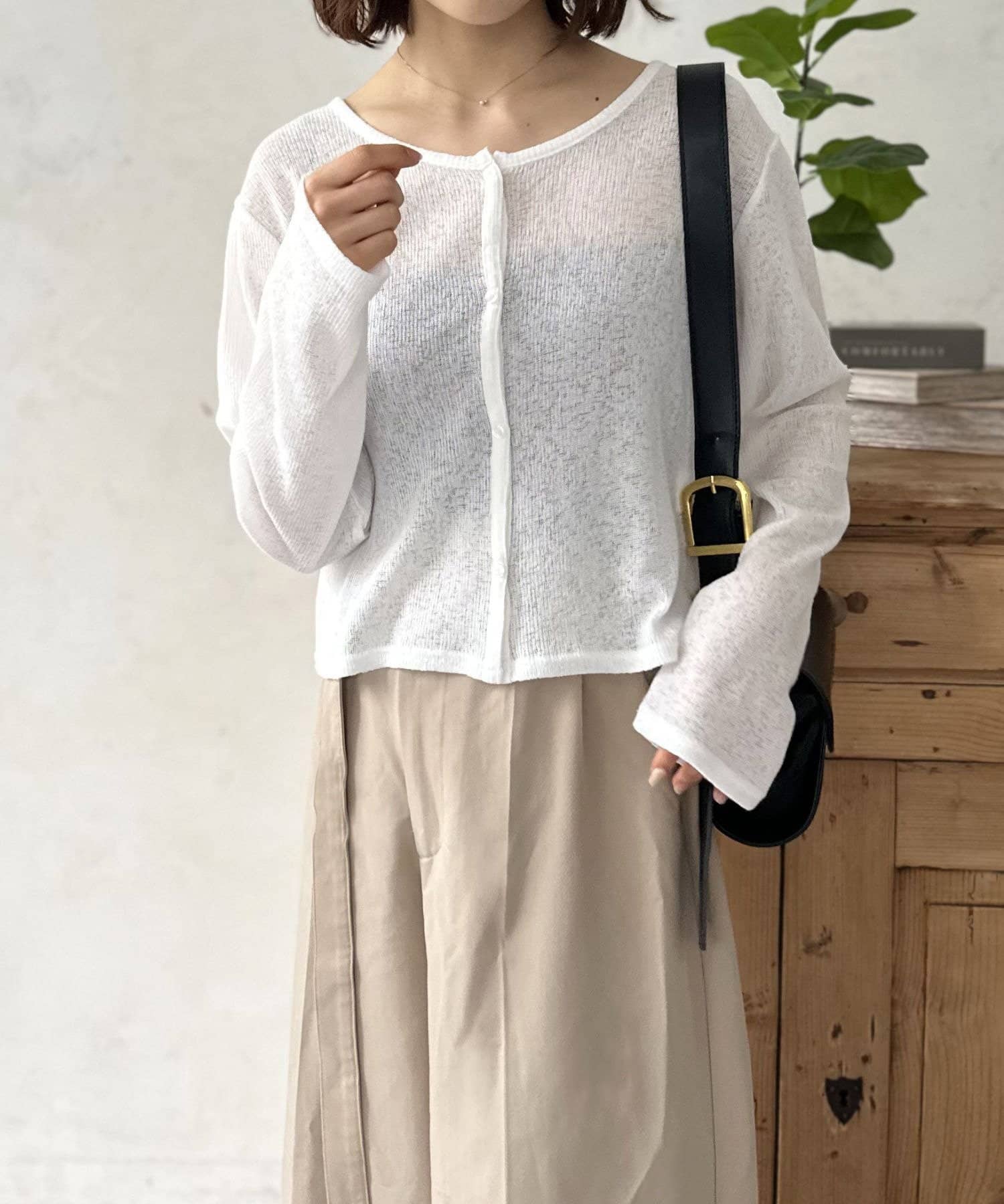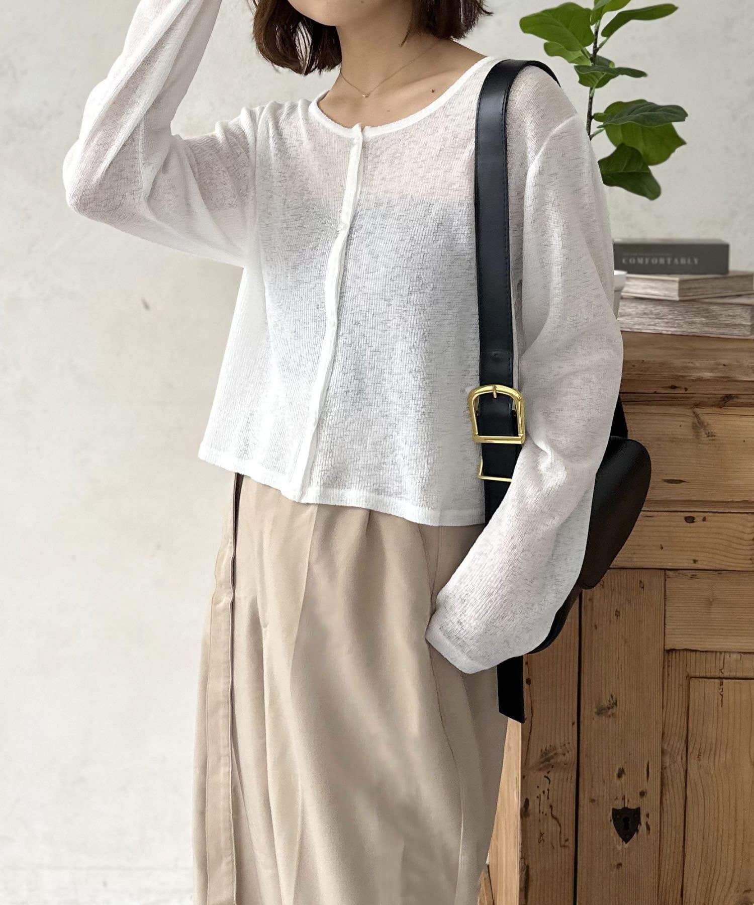 タイトなスカートや、キャミソールワンピースの上に軽く羽織るだけで、スタイルにメリハリが生まれ、こなれ感が一気にアップします。