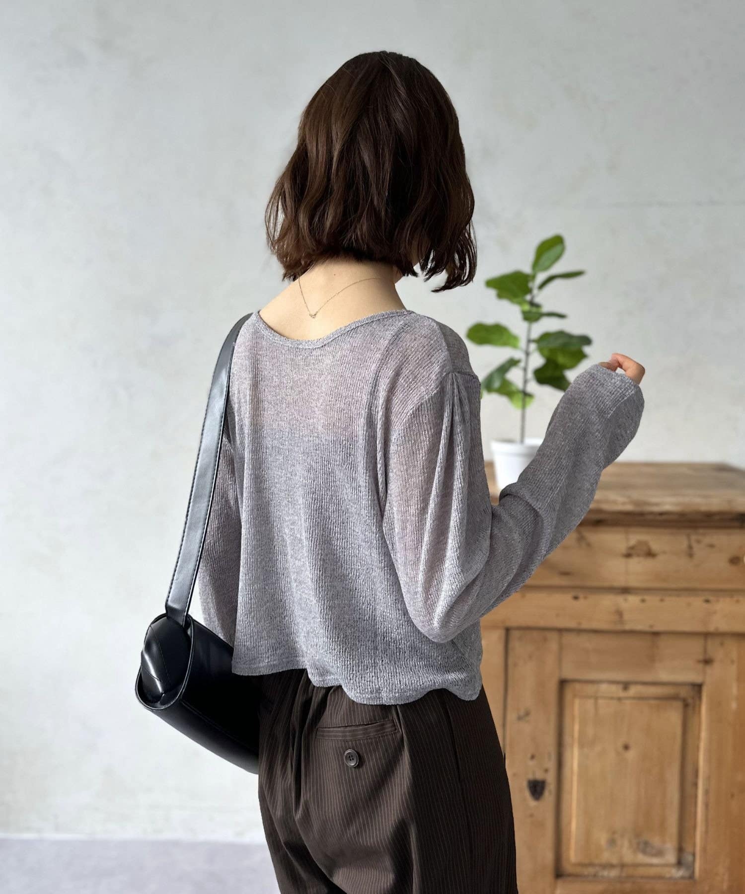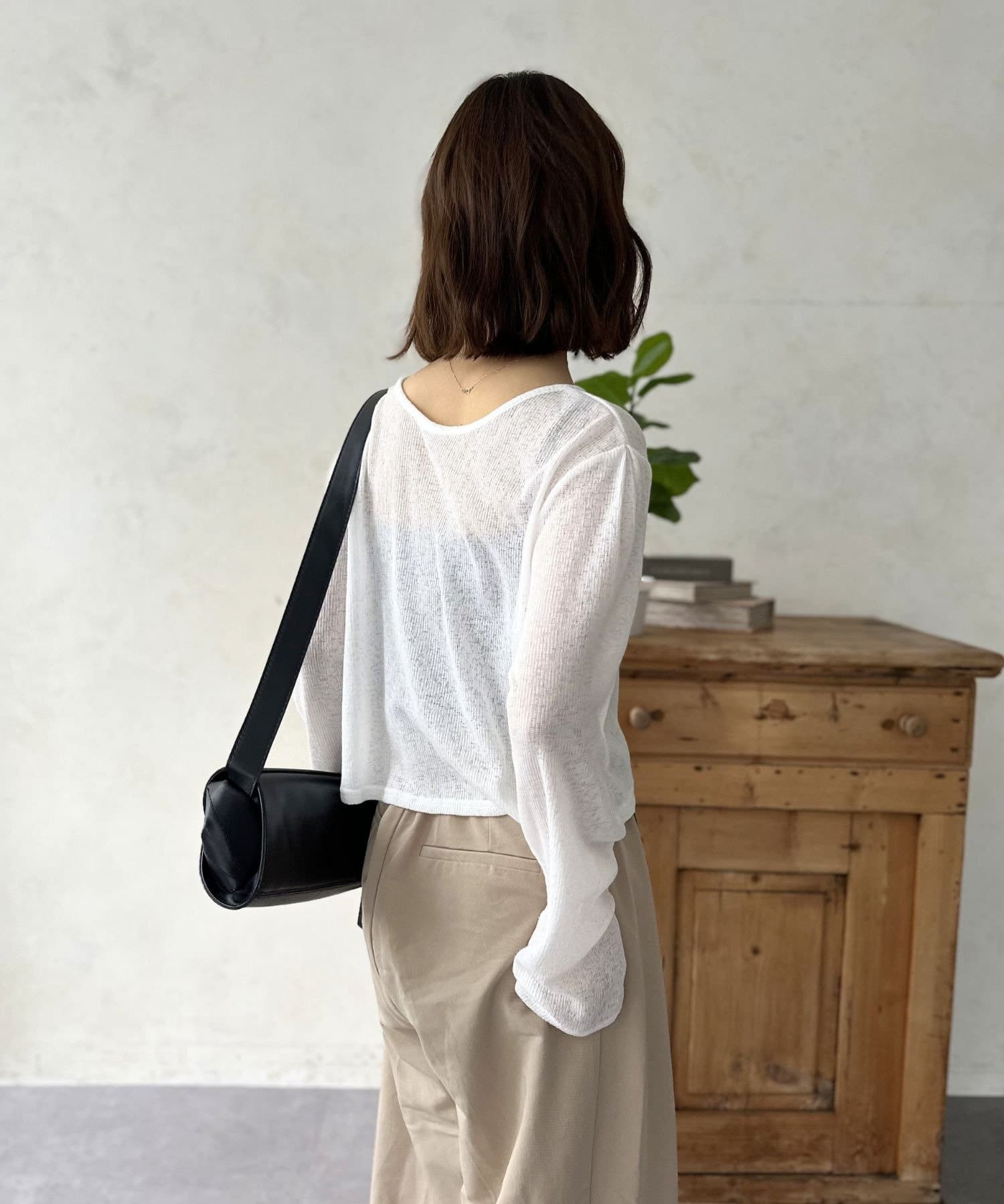 繊細な透け感のシアー素材は、品のある女性らしさを引き立てつつ、ヘルシーな肌見せを叶えます。