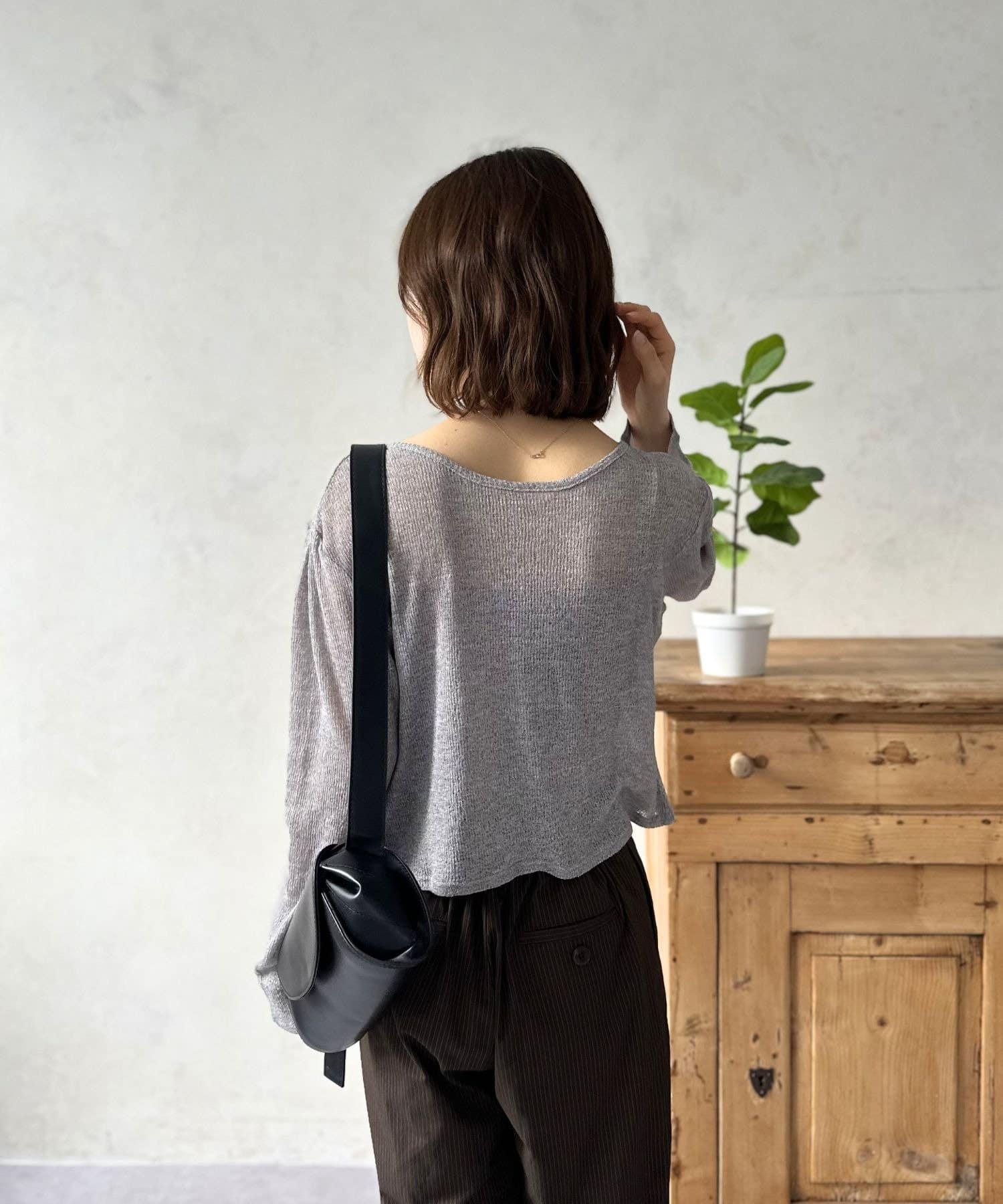 メランジ生地は、シンプルながらも高級感があり、カジュアルな着こなしも大人っぽく格上げしてくれます。
