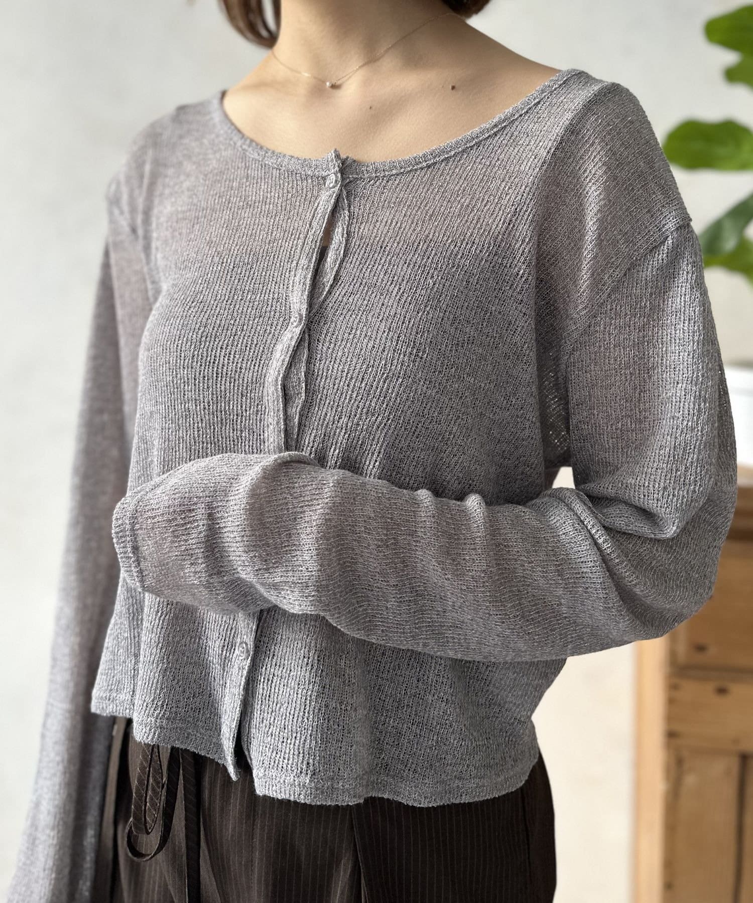フロントのボタンを全て留めれば一枚のプルオーバーとして、ボタンを開ければ軽やかなカーディガンとして着られる便利な2WAY仕様。