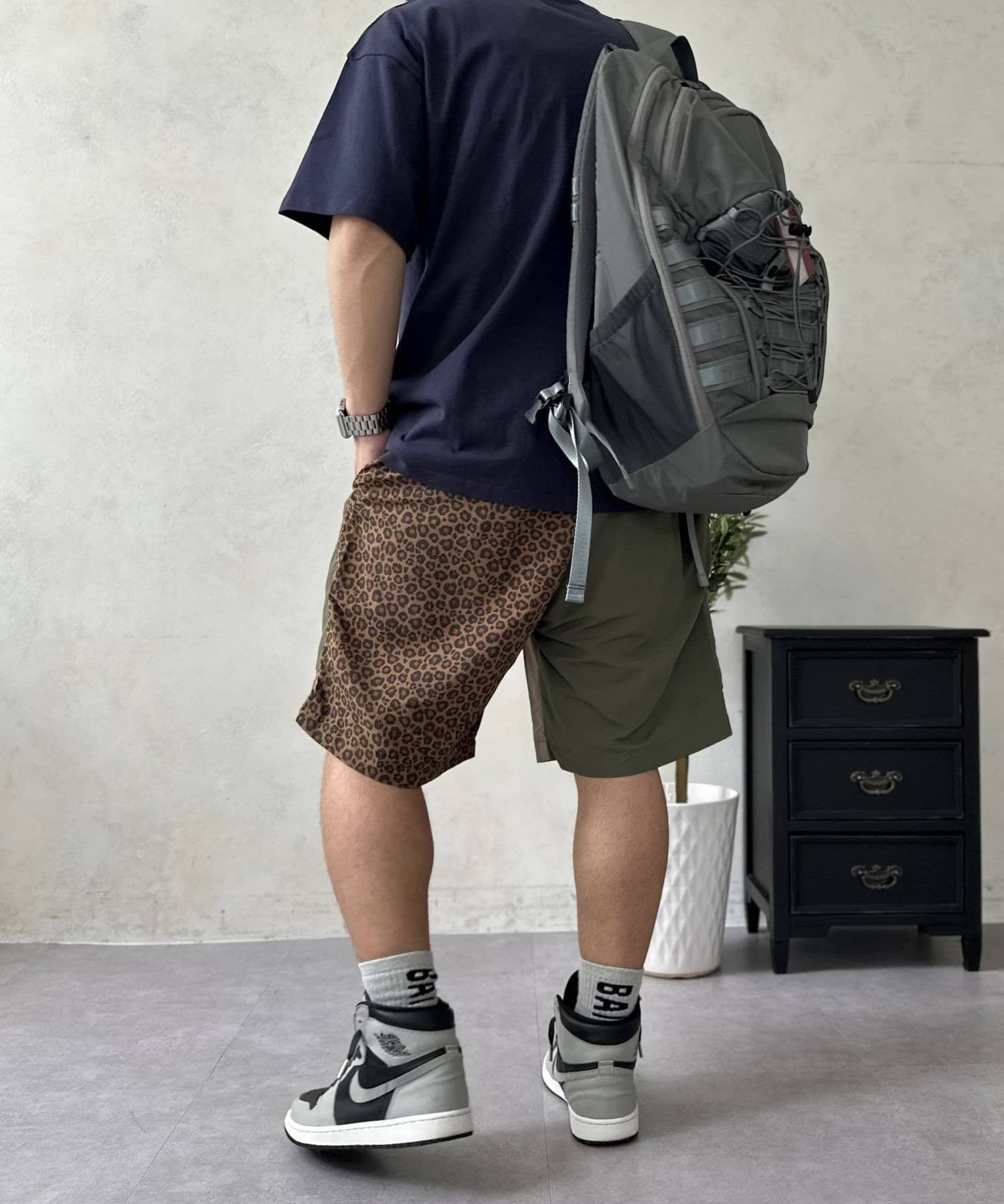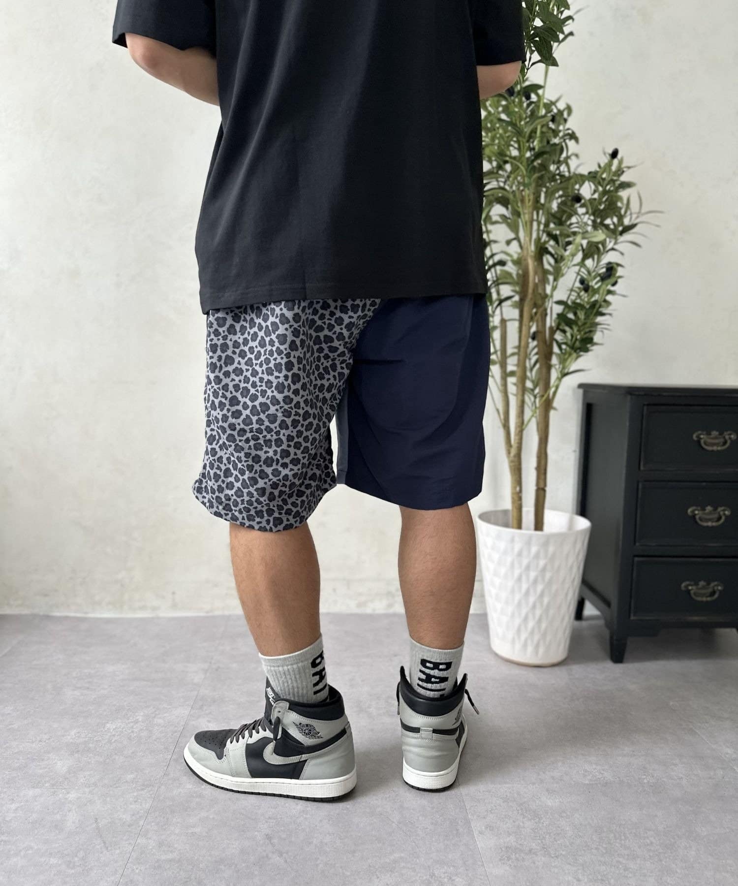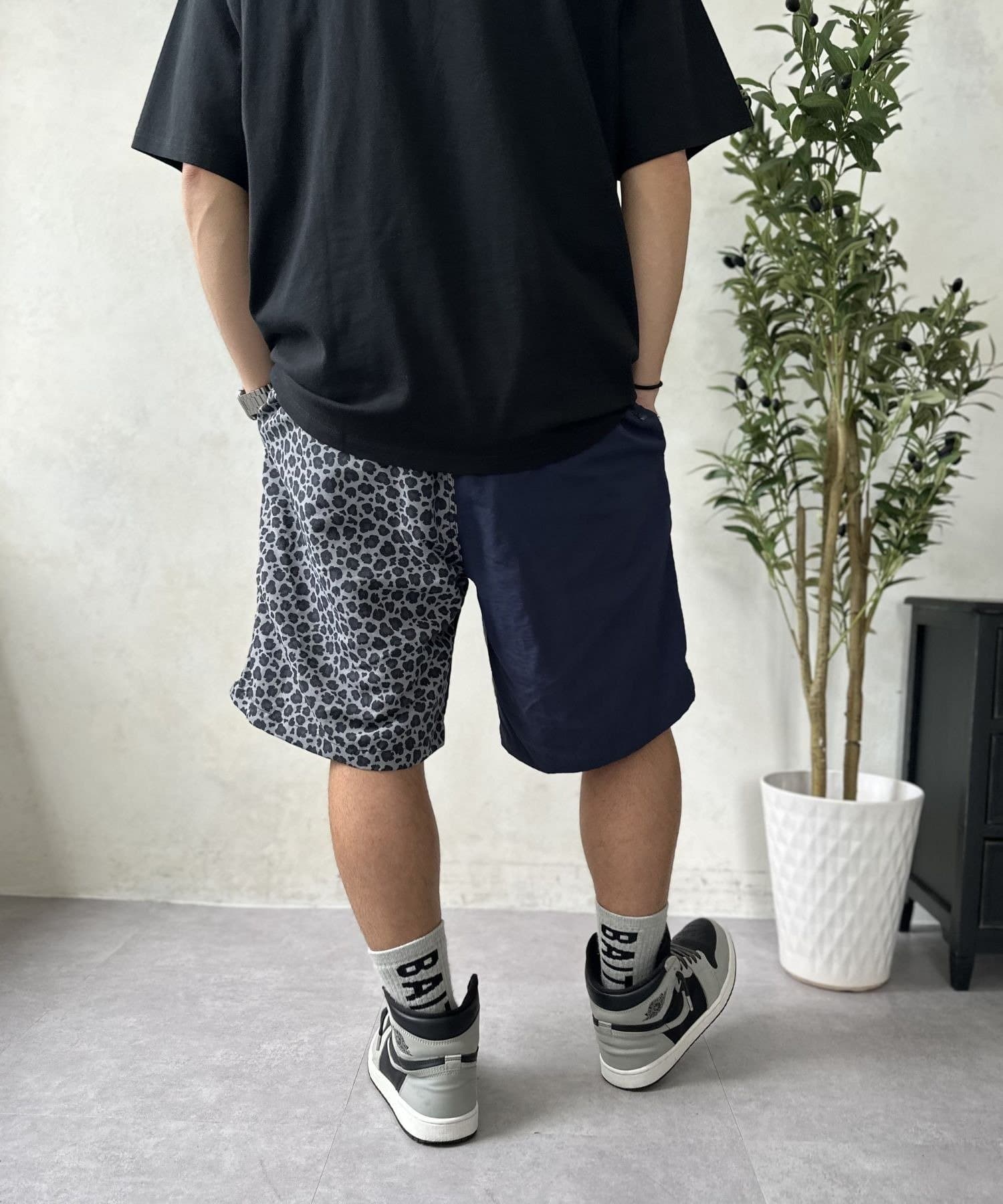 • 身長:167cm 着用サイズ:Lブルー×ライトブルー×グレーレオパードがダークグリーンと記載されています。