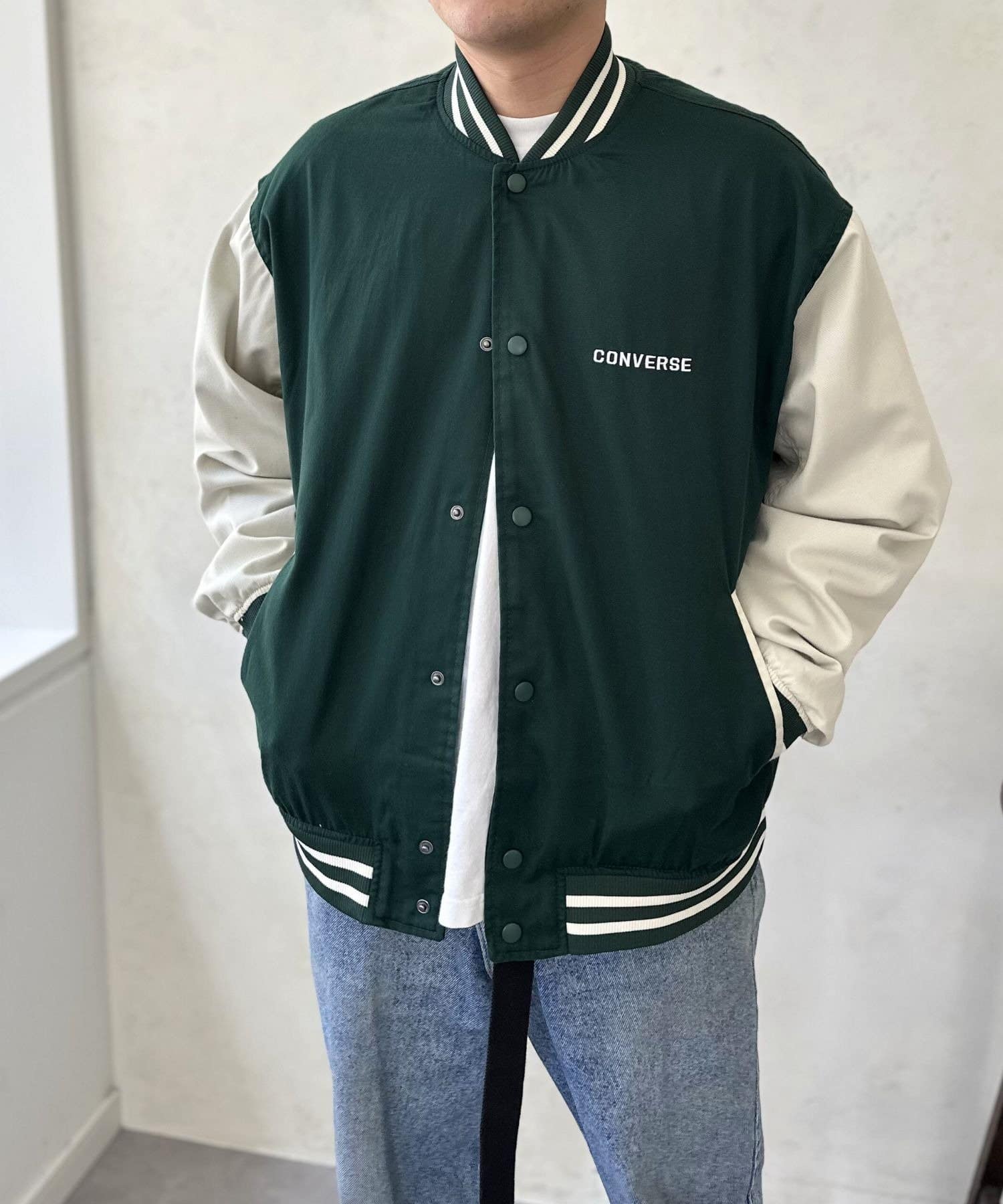 ヴィンテージライクな雰囲気がたまらない、CONVERSEの袖配色ジャケット