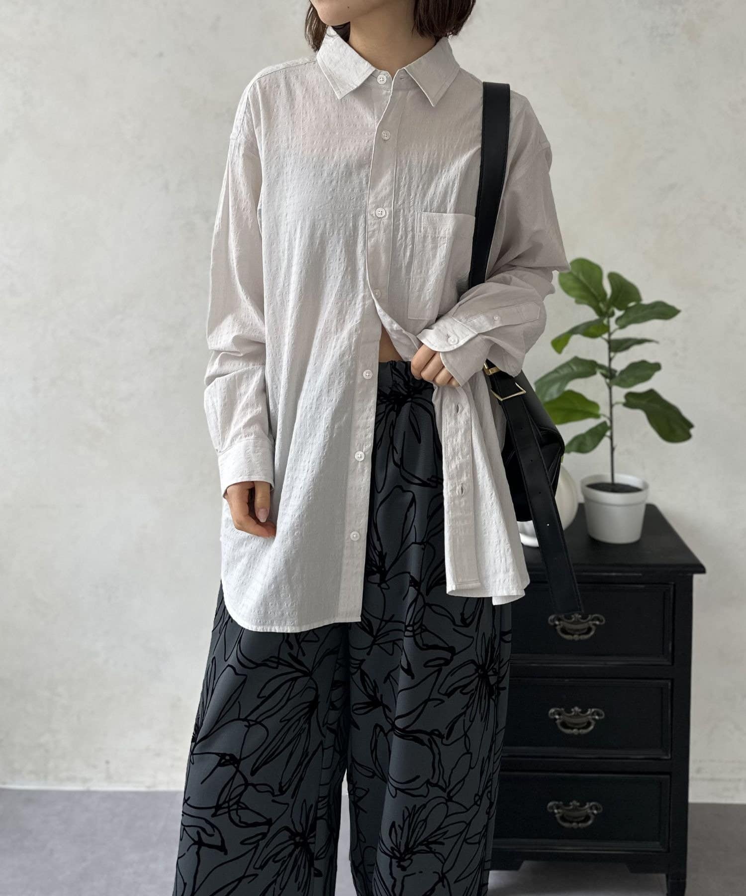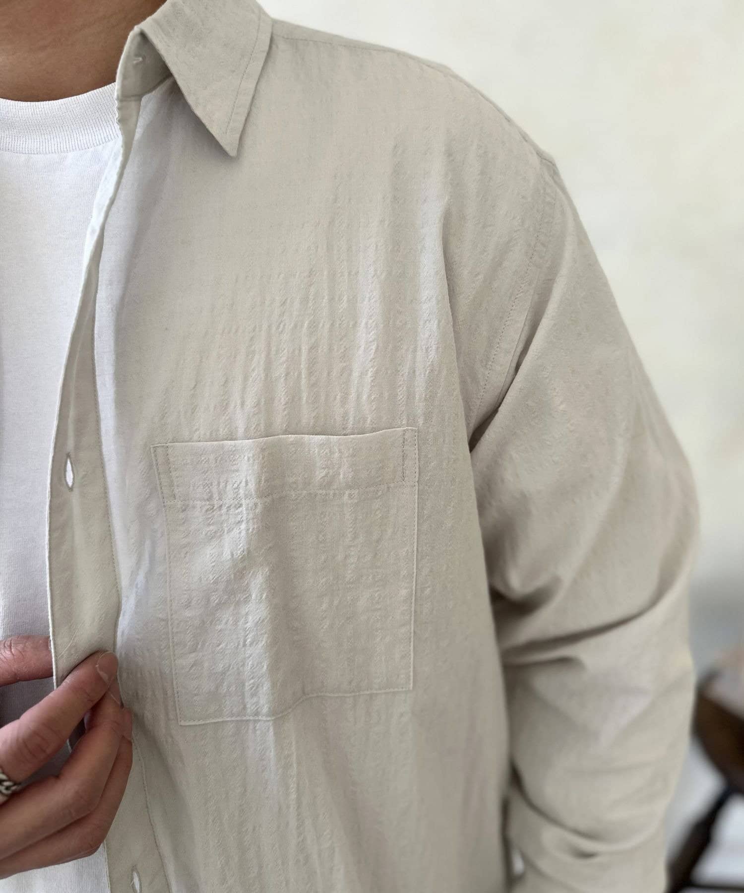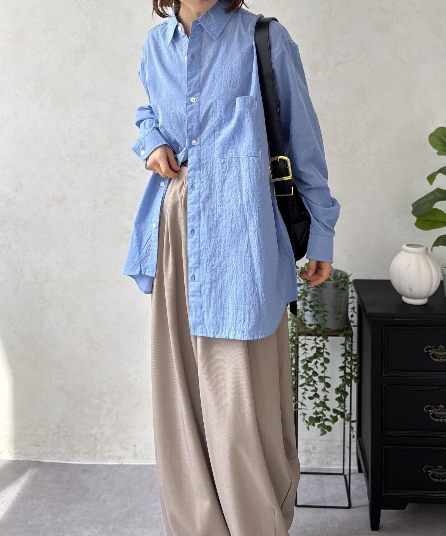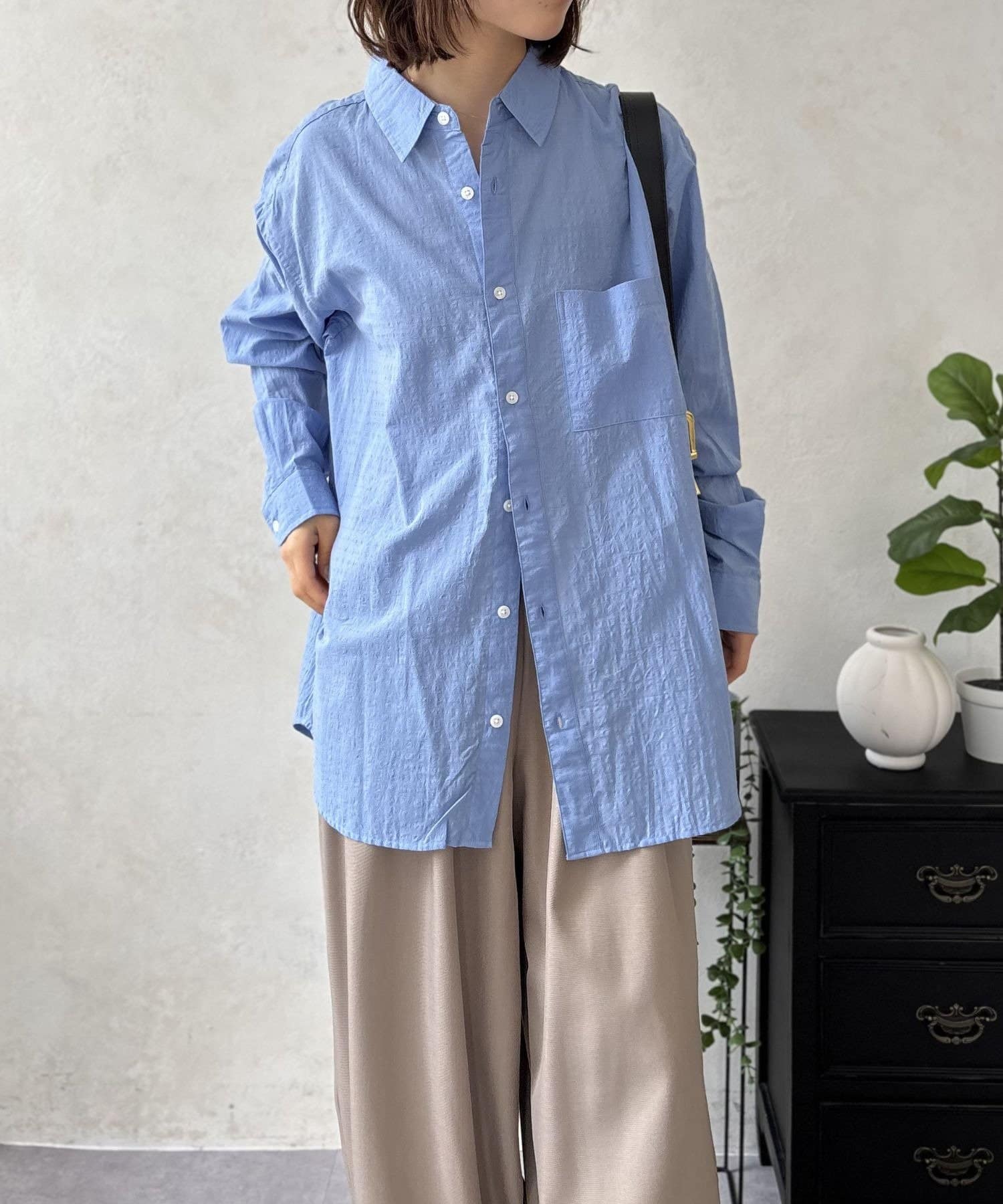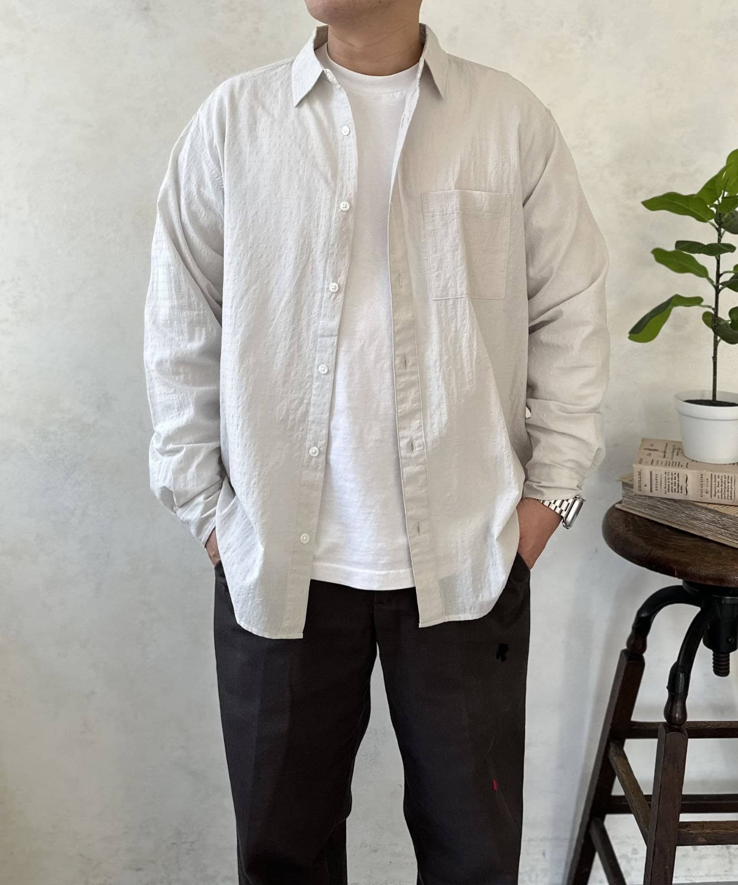 白Tにこのエアリーシャツを重ねるだけで、一気にオシャレ見えするので一枚持っていて間違いないアイテムです◎