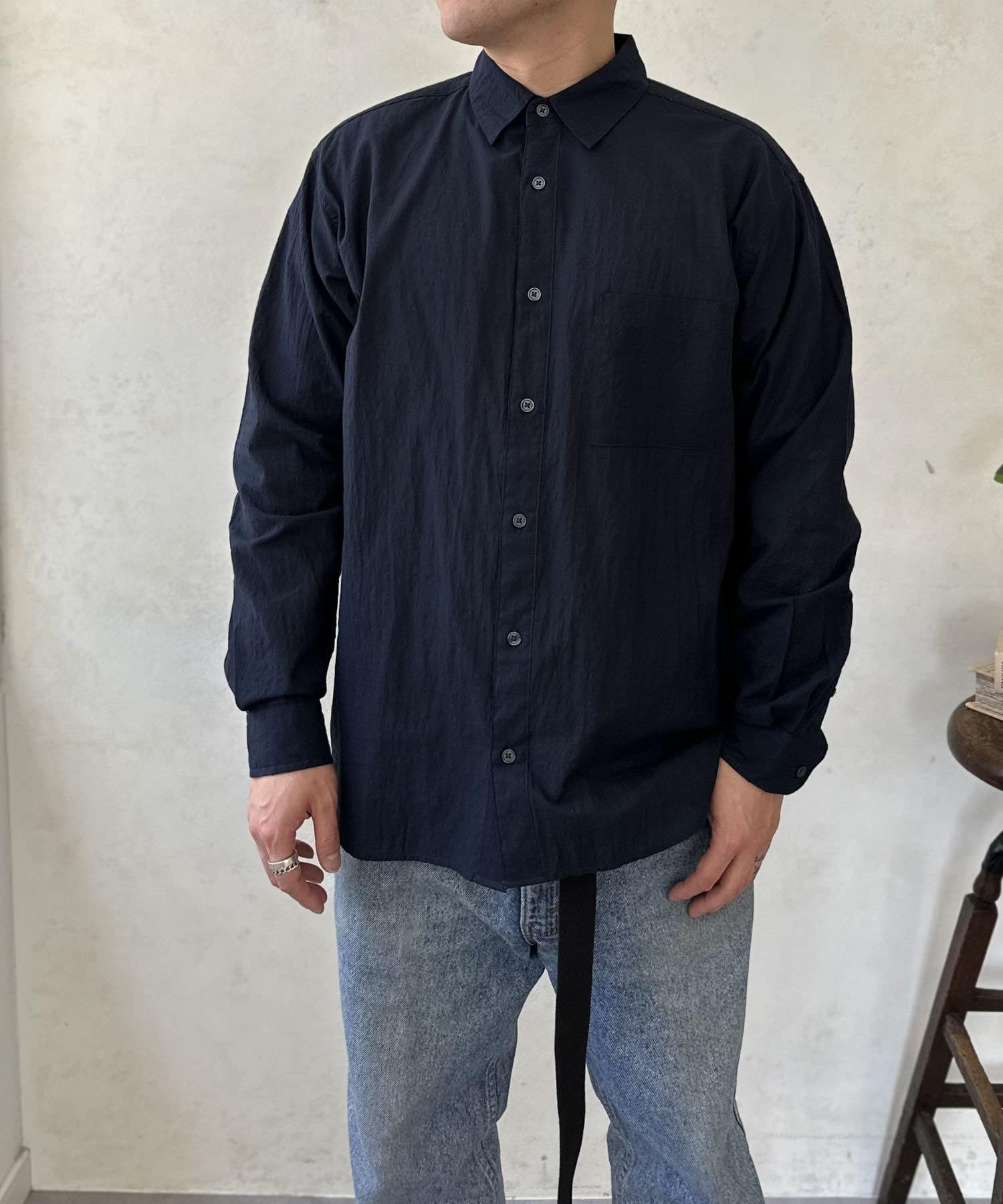 かなり軽く柔らかい生地感でさらっと着れるので、日焼け対策として真夏にも活躍しそうな一枚です!