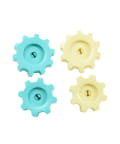 ●歯車は2つの歯車がかみ合うように壁に取り付けて手やシャワーの水圧でくるくると回して遊べます。