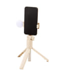 スマホをガッチリホールドしてくれる。畳めるので収納し易い。ライトは充電式、シャッターは電池式。スマホの縦横変更はいちいち外さないと駄目ですね。他の色展開も有ればな
