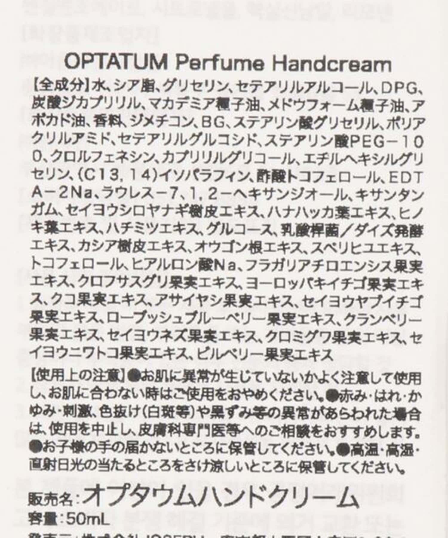 【OPTATUM】 Perfume Hand Cream ハンドクリーム