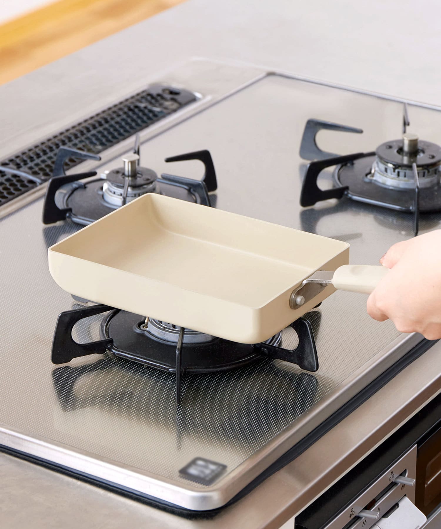 ●ガスコンロの形状や調理量により卵焼き器が転倒することがありますので、空の状態ではコンロに置かないでください。特に温度センサー付きのガスコンロで使用する際は、温度センサーが確実に沈み込んだことを確認した上でお使いください。
