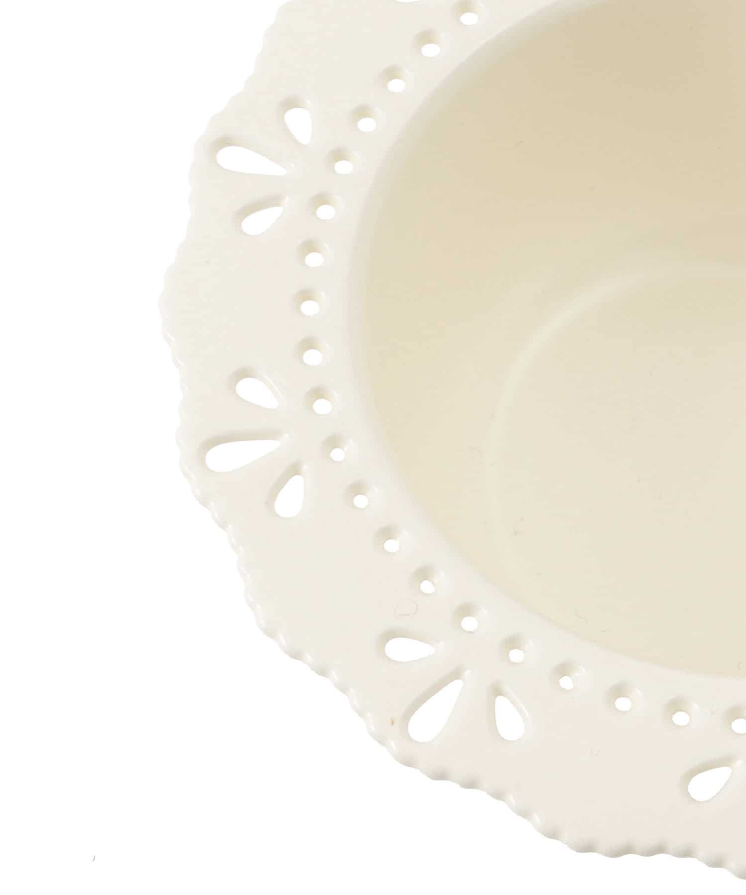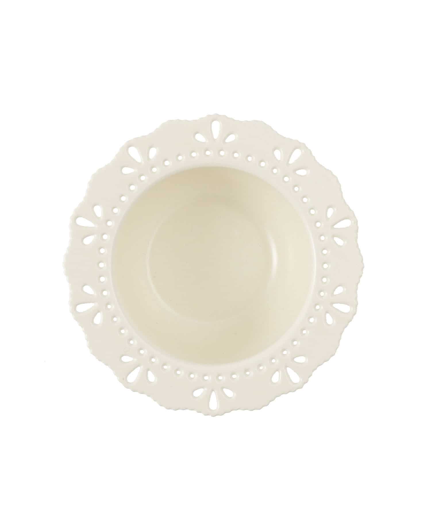 ●縁に施されたレースのような透かし掘りがお洒落なボウル。