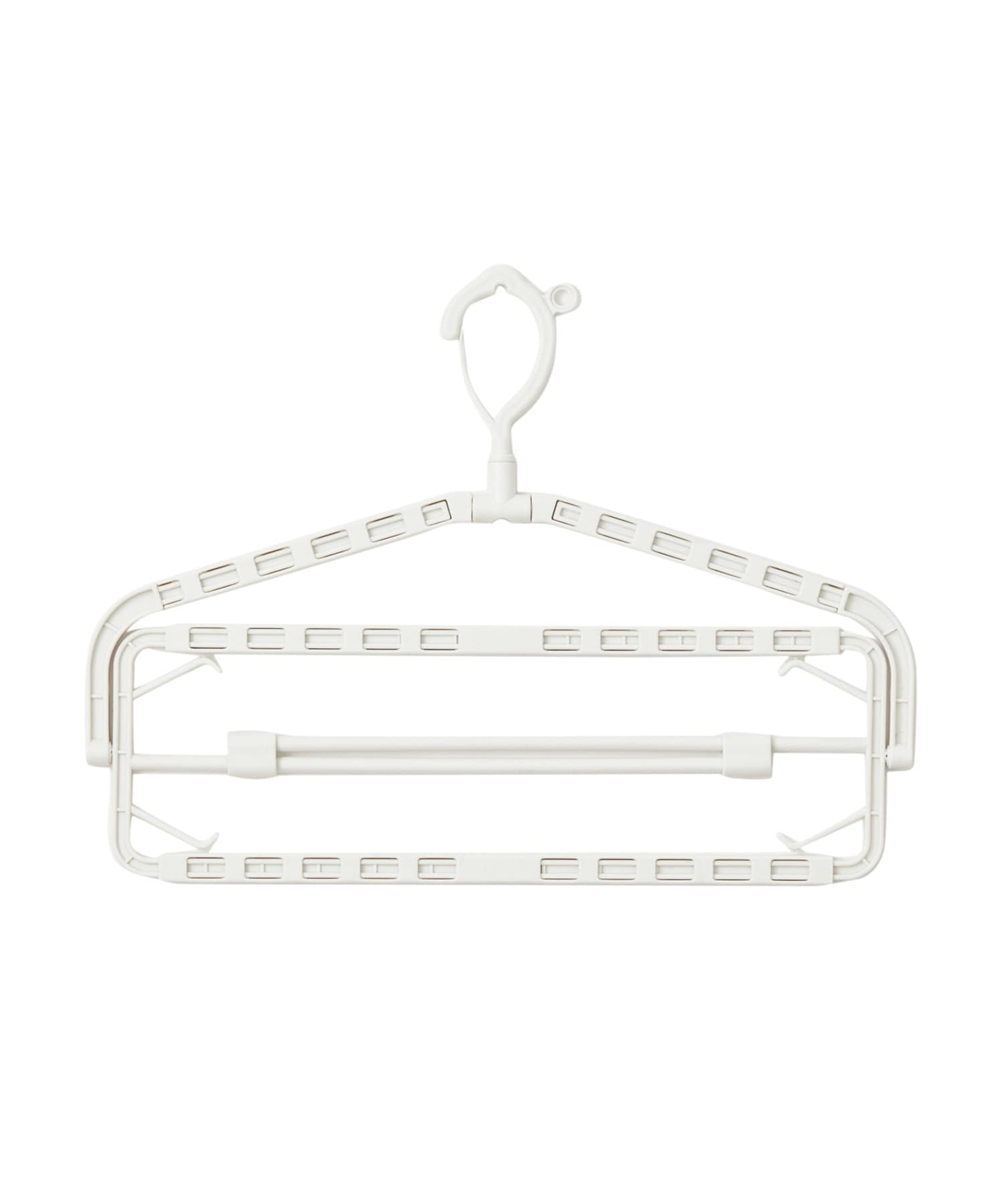 購入場所:パルクローゼット1日分のタオルだけ洗ったときにバスタオル1とフェイスタオル2掛けられてちょうど良かった。他のハンガー系にはフックに突起がないのにこれだけ落下防止のためか突起がついててそれだけジャマ。