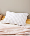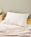 ●ギンガムチェックのデザインが可愛らしい枕カバー。
