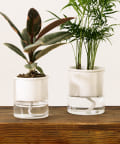 購入場所:店舗先日、スリコで壁に支えられないと倒れてしまう肉厚な葉の数が多い元気なサンセベリアを2鉢を購入 後日メールでこのポットを見てアウター部分がガラスだったのでどうしようか店で迷いましたが一つ購入しました 以前、小さなプラポットに入った水耕グリーンをスリコで買って枯れる事なく今も育っているので(それ以外にもサボテンを2種類買いましたが成長してます) この様な大きい鉢にも対応したポットが発売された事が嬉しいです