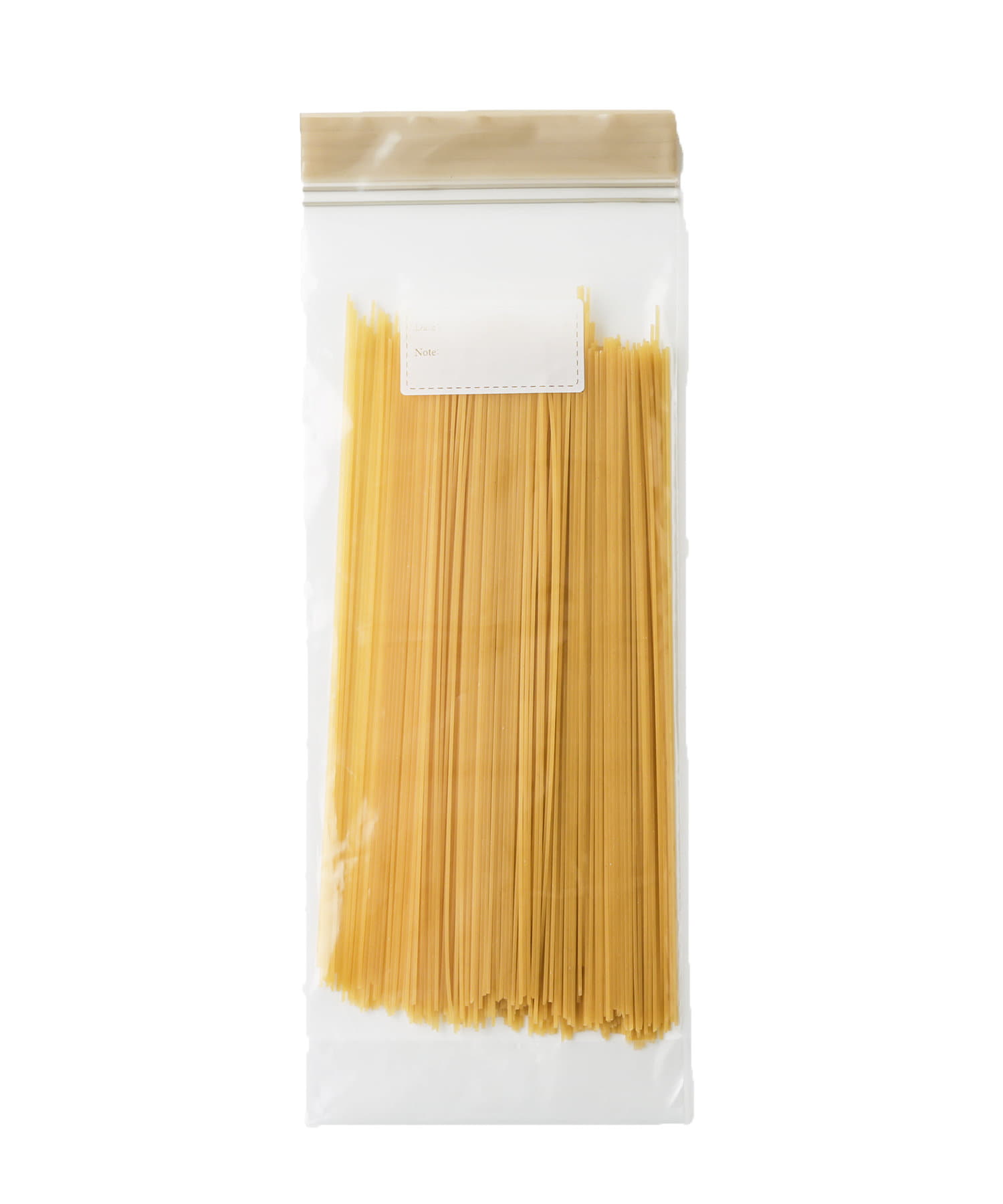 購入場所:パルクローゼットチャックつきのない市販のパスタ商品は、クリップで止めても、ちゃんとしまらないので、こちらの商品を使っています。