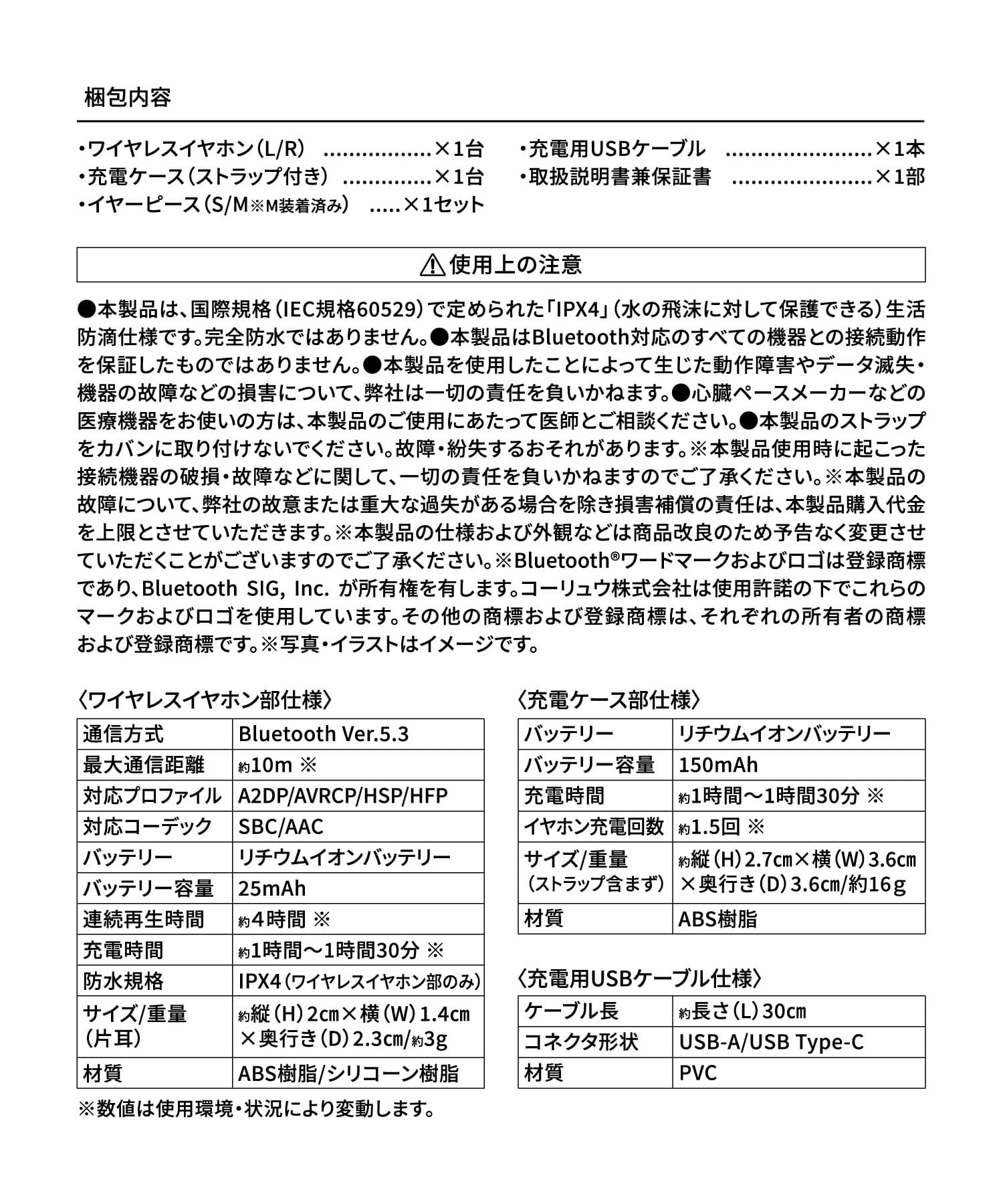 品番 2413-EC-KRU04-0 素材 ワイヤレスイヤホン:ABS樹脂、シリコーン樹脂