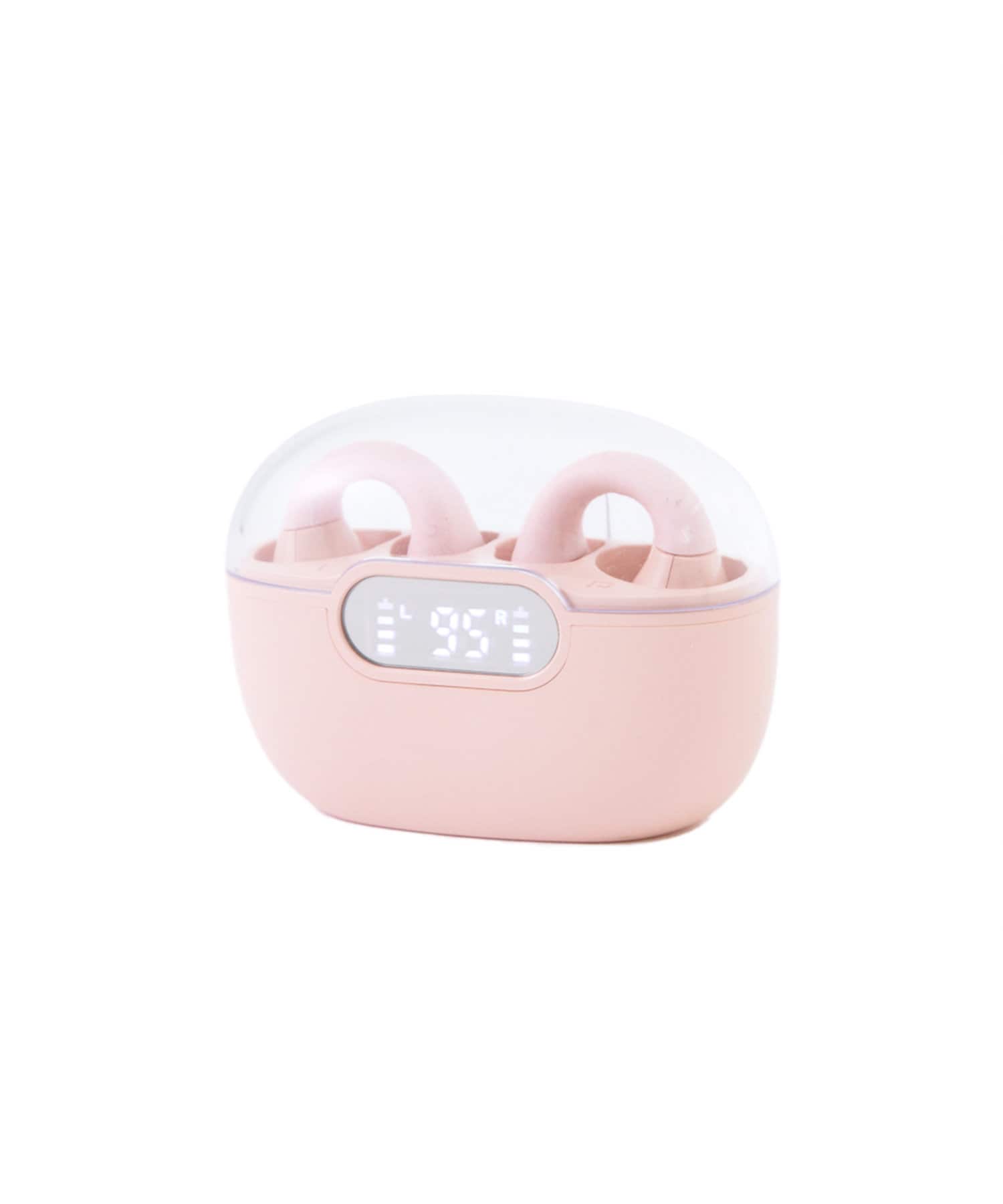 普段は高めのイヤホンを使っていてイヤカフタイプのイヤホンは初めて使います。周りの音が良く聞こえるし軽くていいです!音質は軽くて音楽向きじゃ無い気がしますが、私はラジオを散歩しながら聴くのが好きなので気になりませんでした。トラガスにピアスが空いてるのでピアスに干渉しないところもお気に入りです。蓋がクリアで液晶も付いていて見た目も可愛いです。