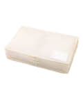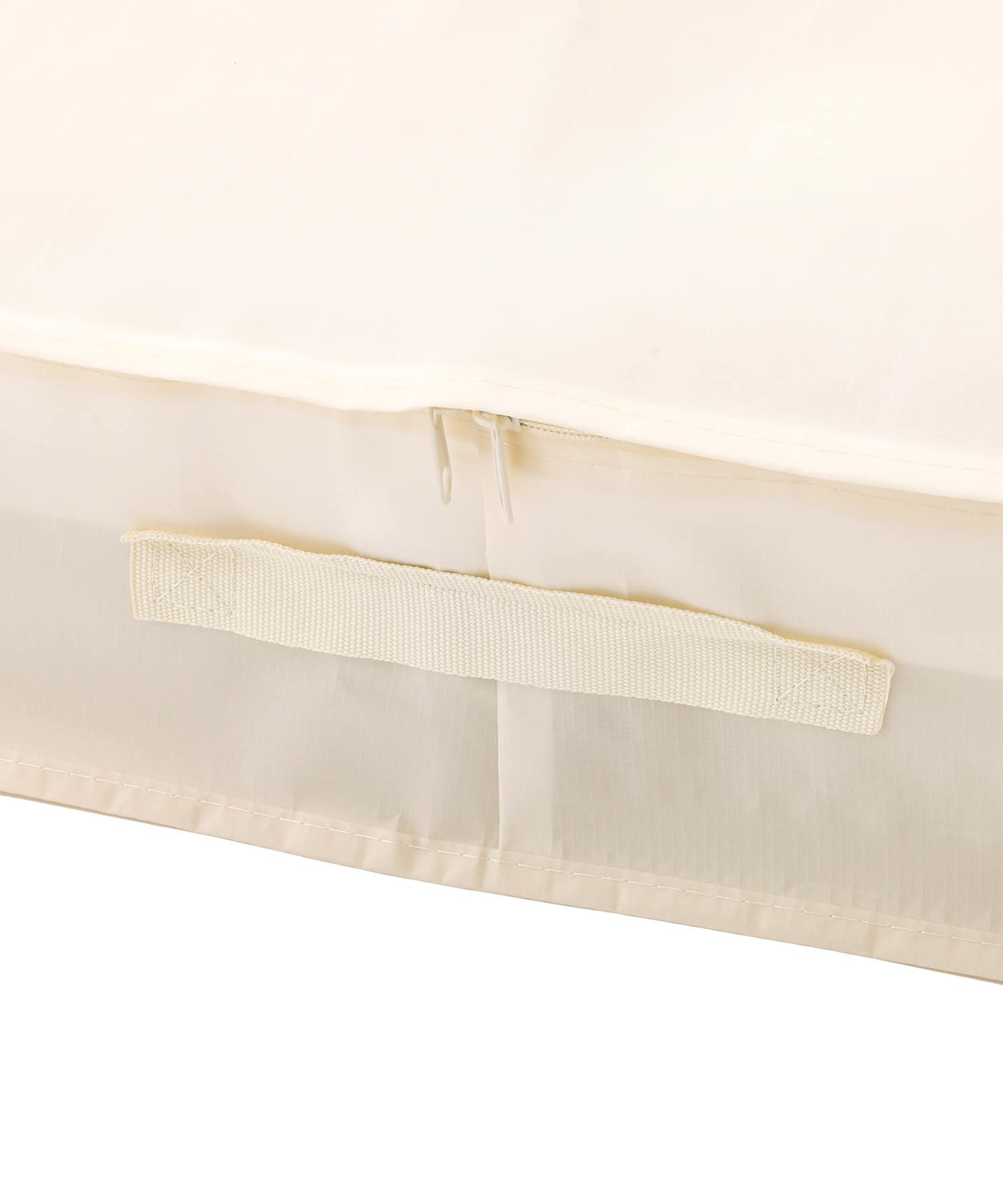 購入場所:パルクローゼットシーツの収納に購入。ベッド下だけでなく、クローゼットの少し余った細い隙間も有効活用できそうです。他ショップの上面にファスナーが付いているタイプを使っていたのですが、こちらは角にファスナーがついているので、広い面のシーツを収納するのにストレスフリーです。